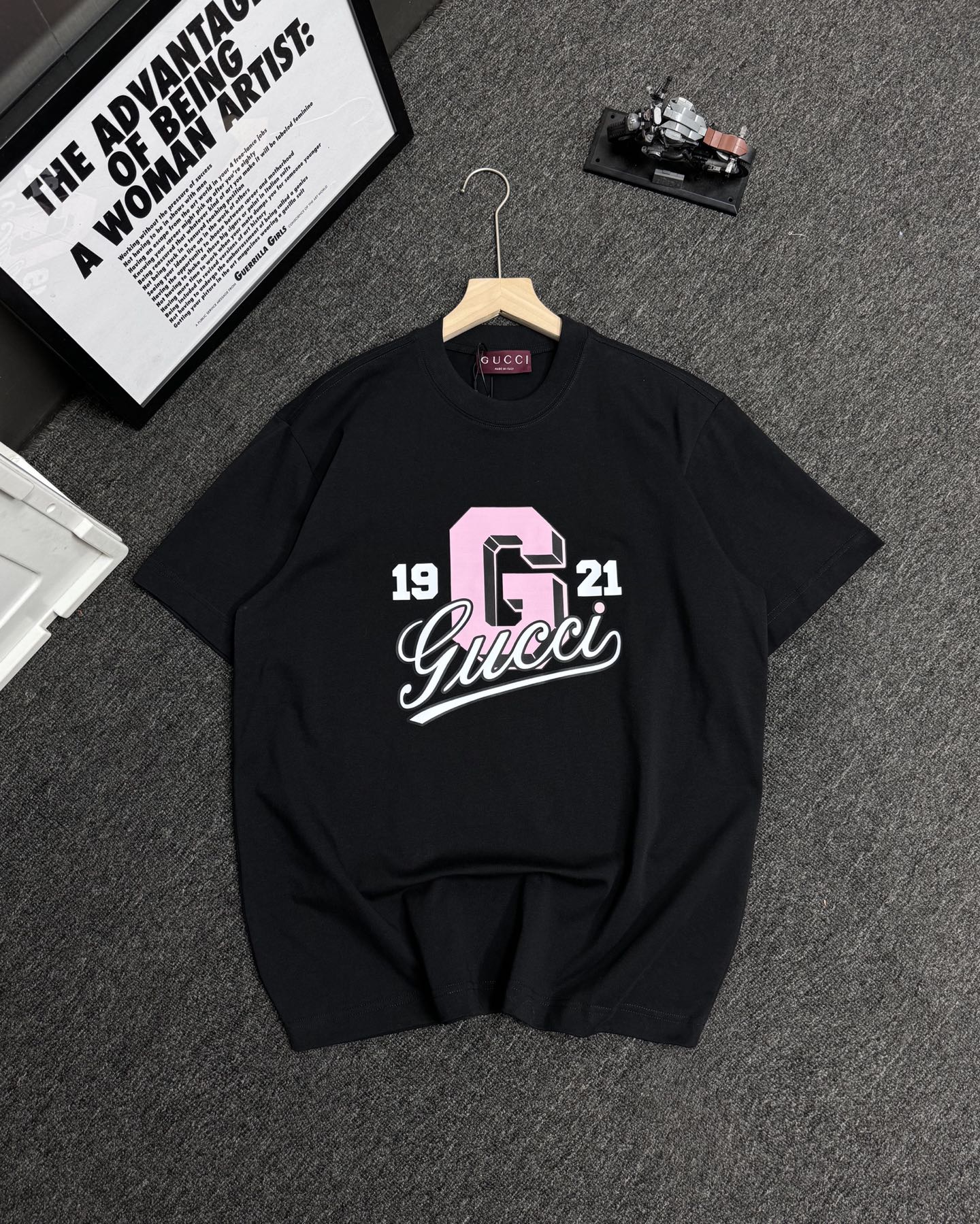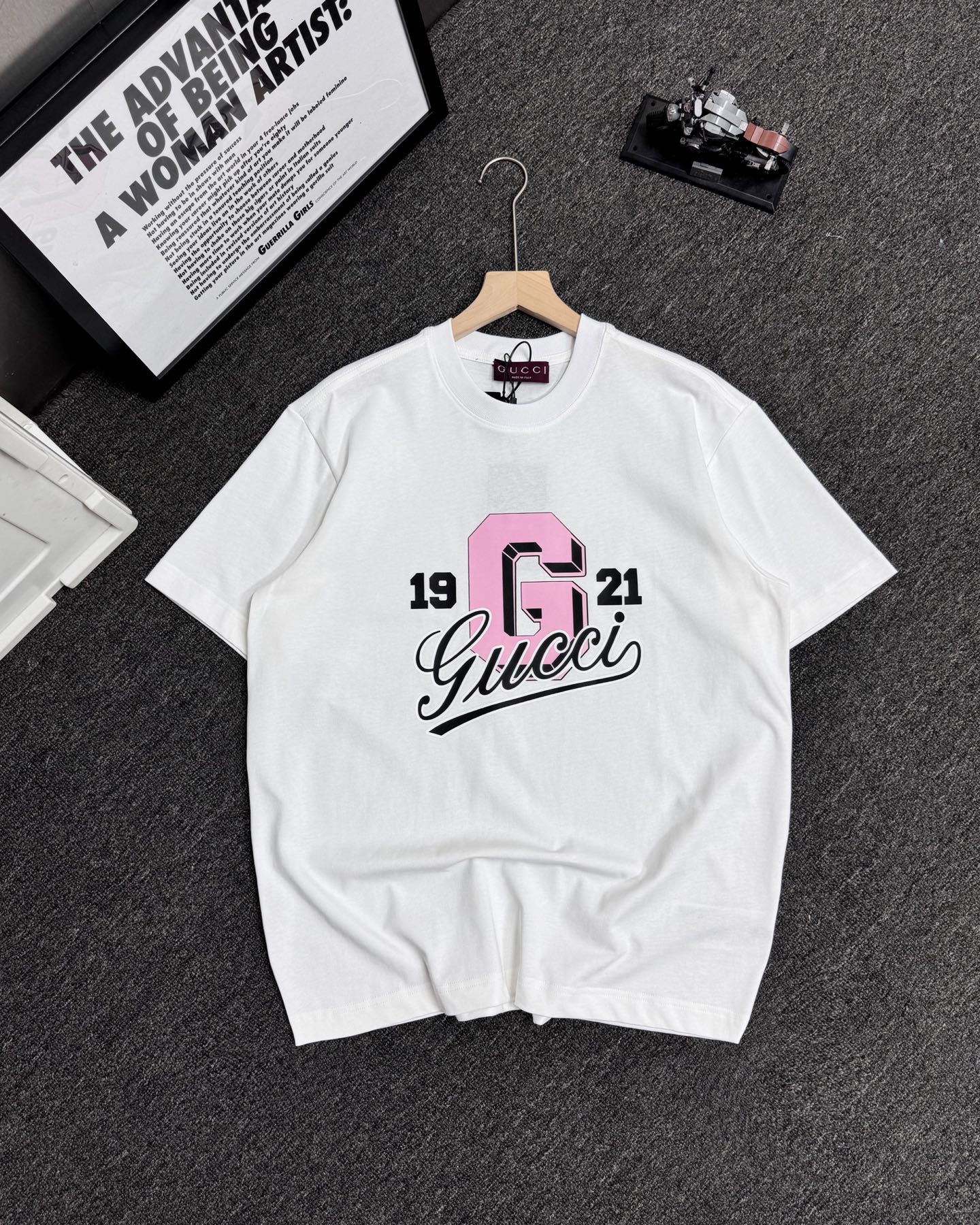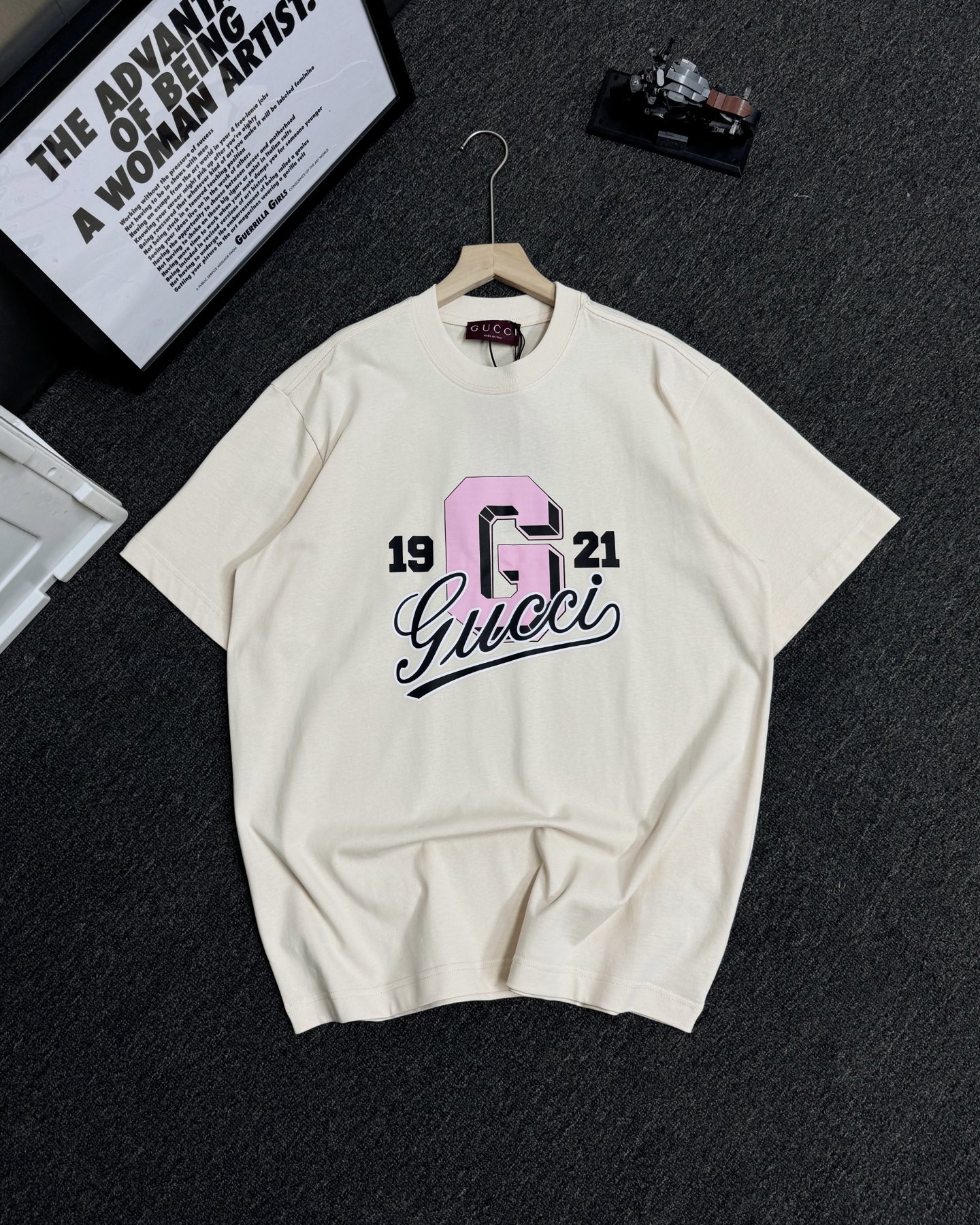 这款衣服是AAAAA 1:1 质量 (非常棒). 使用了和原版一模一样的材料. 商标部分也保持了和古奇/Gucci一样. 图片拍摄是实物衣服拍摄, 您所收到的实物保证和我们图片一模一样.