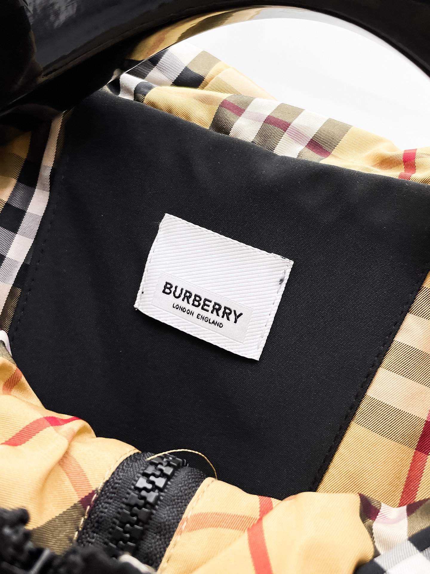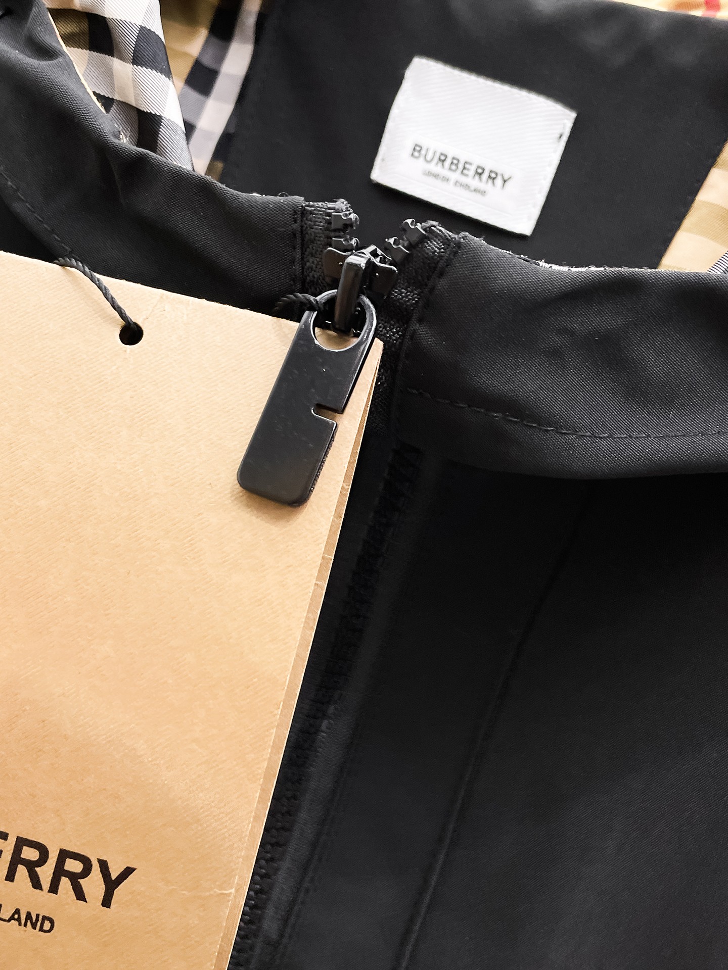 这款衣服是AAAAA 1:1 质量 (非常棒). 使用了和原版一模一样的材料. 商标部分也保持了和巴宝莉/Burberry一样. 图片拍摄是实物衣服拍摄, 您所收到的实物保证和我们图片一模一样.