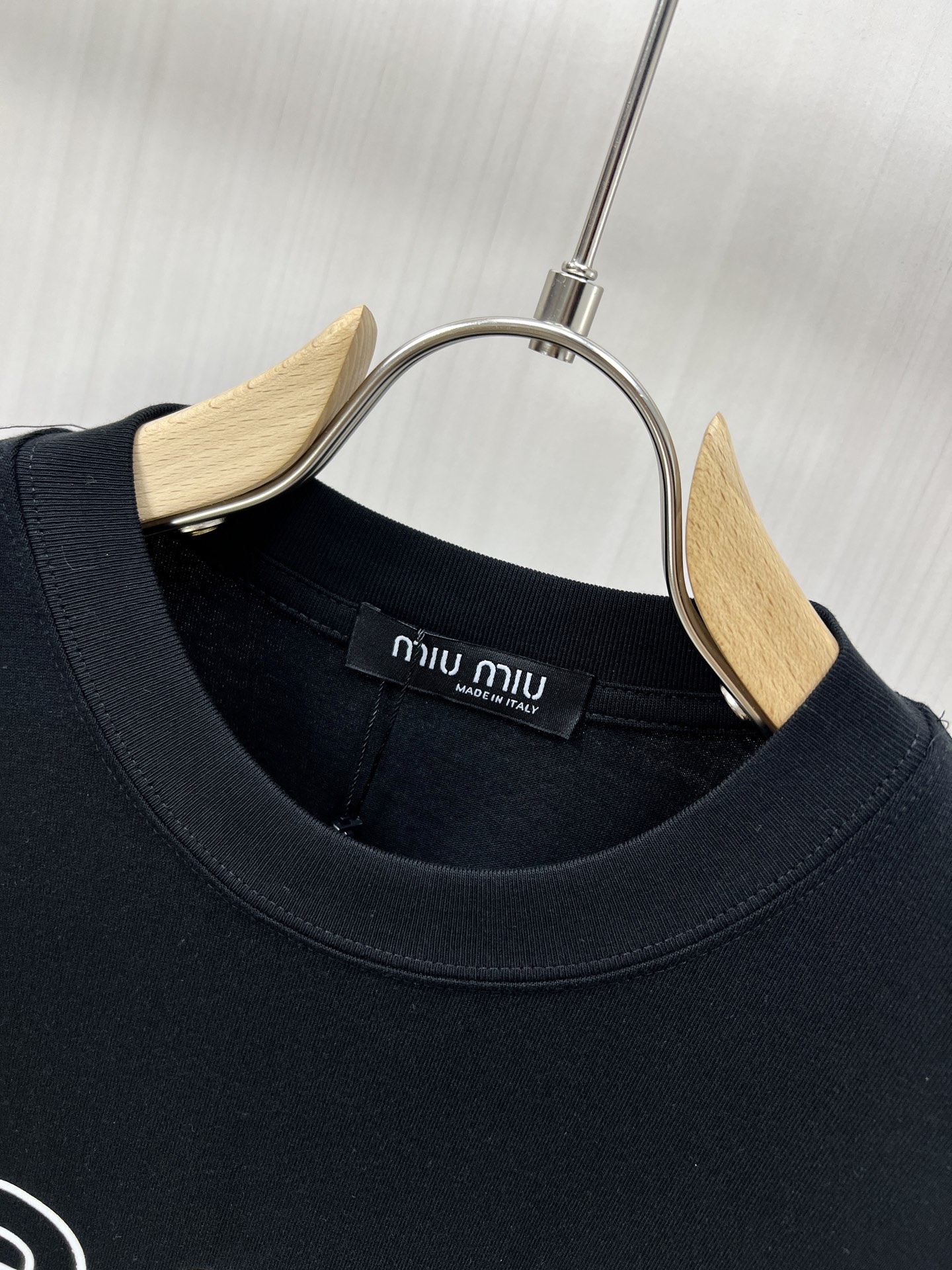 这款衣服是AAAAA 1:1 质量 (非常棒). 使用了和原版一模一样的材料. 商标部分也保持了和缪缪/Miu Miu一样. 图片拍摄是实物衣服拍摄, 您所收到的实物保证和我们图片一模一样.