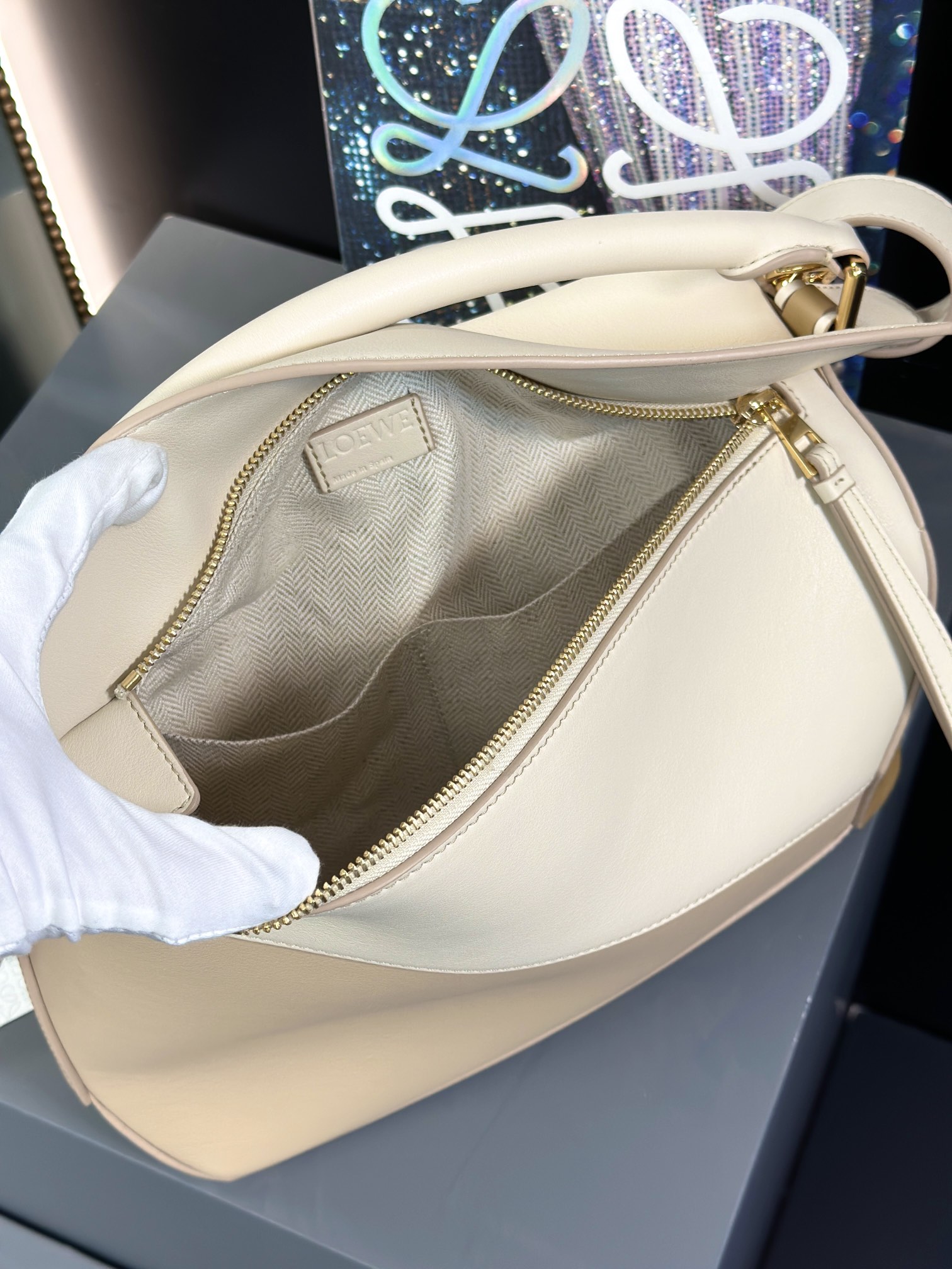 这款包包是AAAAA 1:1 质量 (非常棒). 使用了和原版一模一样的材料. 商标部分也保持了和罗意威/Loewe一样. 图片拍摄是实物包包拍摄, 您所收到的实物保证和我们图片一模一样.