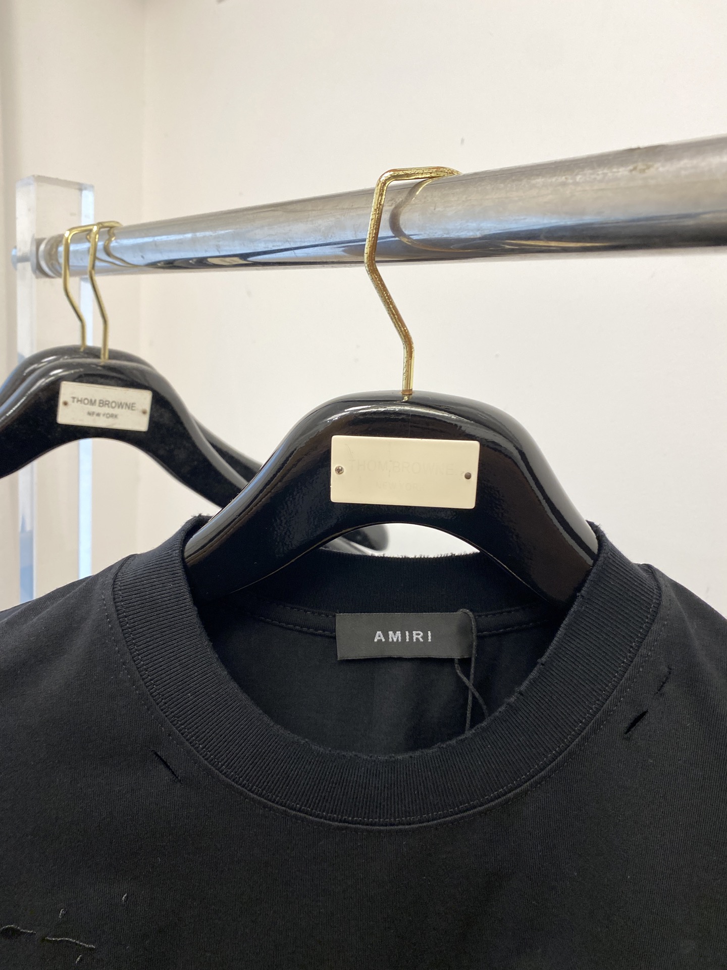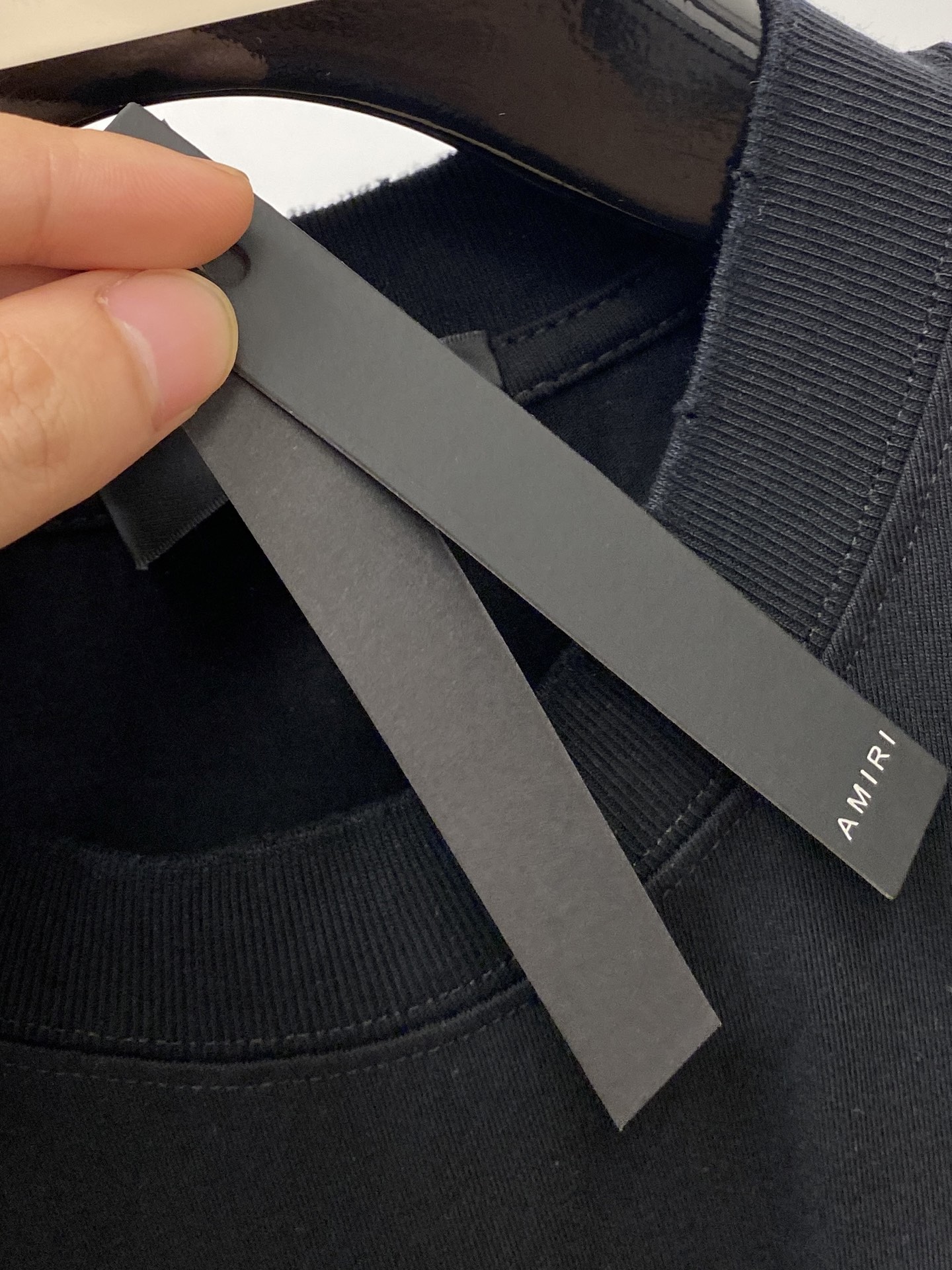 这款衣服是AAAAA 1:1 质量 (非常棒). 使用了和原版一模一样的材料. 商标部分也保持了和AMIRI一样. 图片拍摄是实物衣服拍摄, 您所收到的实物保证和我们图片一模一样.