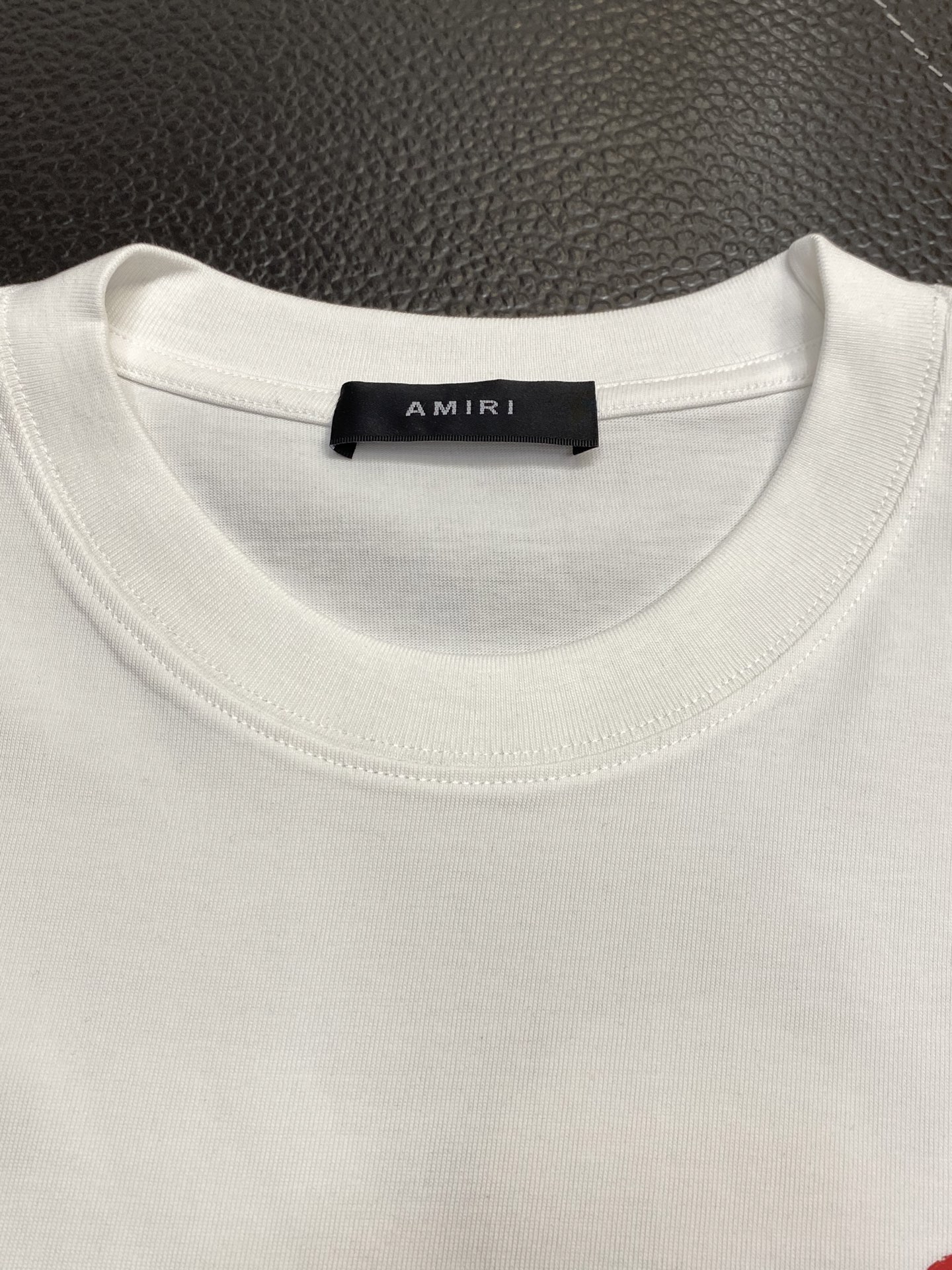 这款衣服是AAAAA 1:1 质量 (非常棒). 使用了和原版一模一样的材料. 商标部分也保持了和AMIRI一样. 图片拍摄是实物衣服拍摄, 您所收到的实物保证和我们图片一模一样.