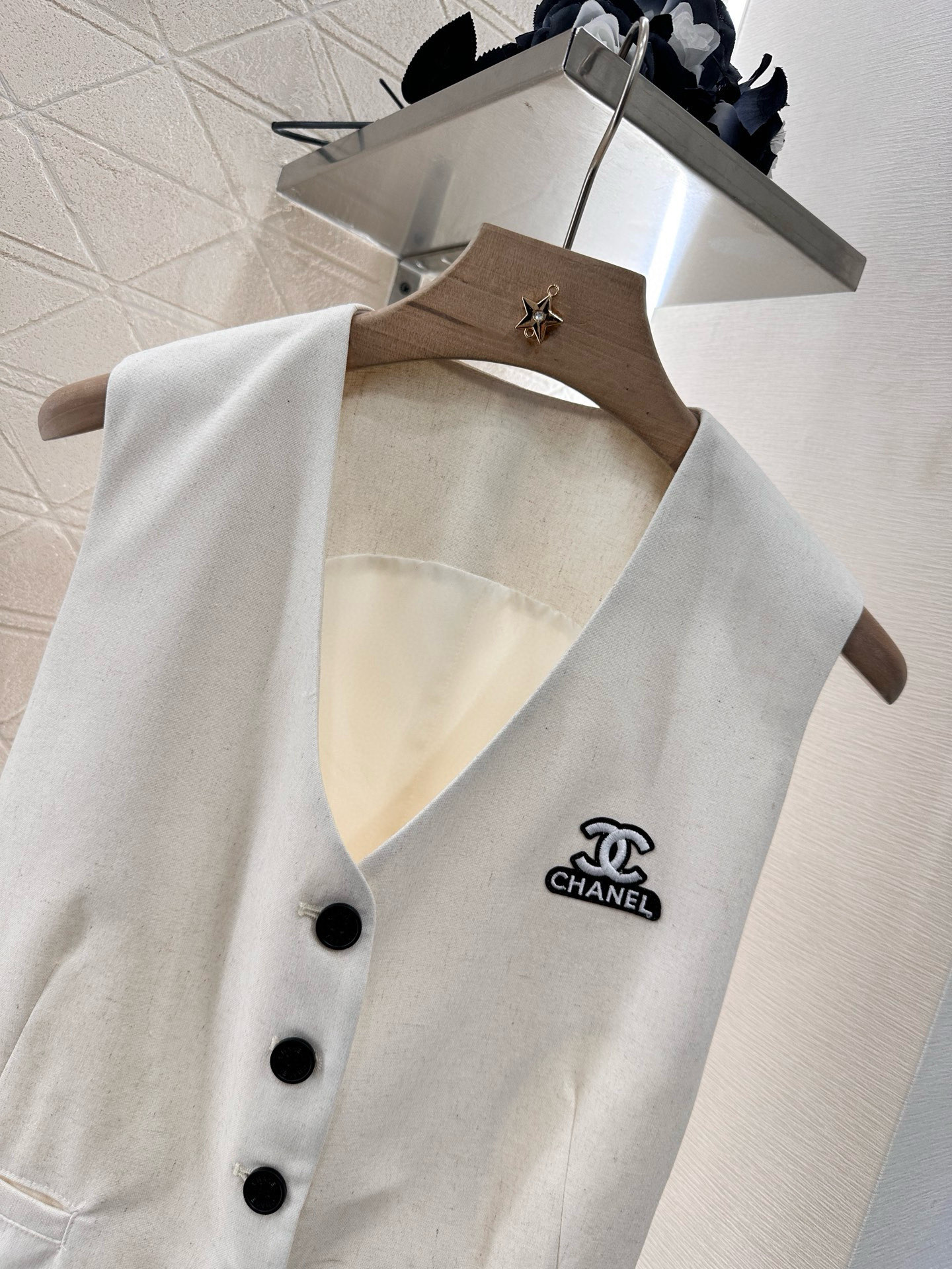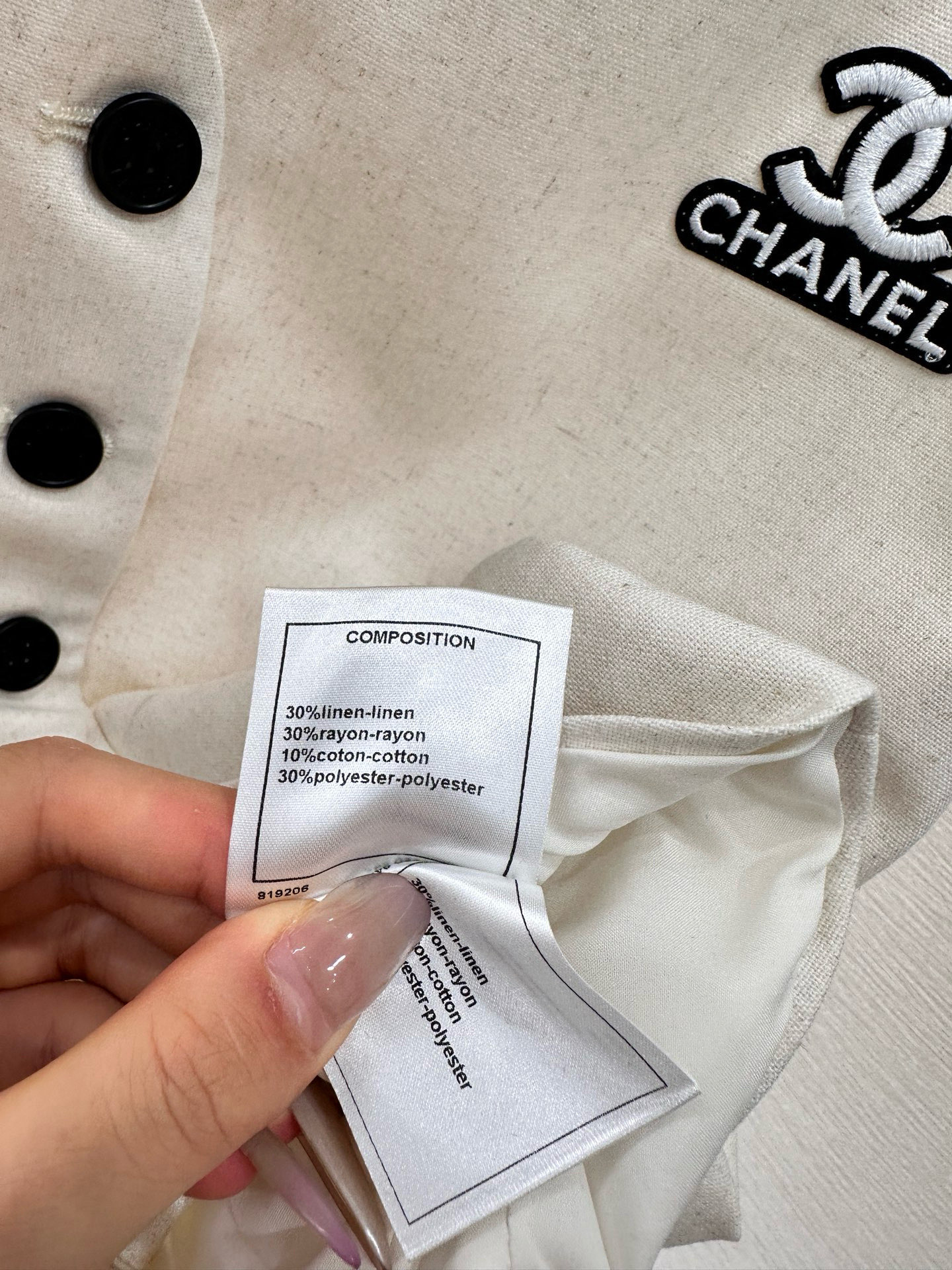 这款衣服是AAAAA 1:1 质量 (非常棒). 使用了和原版一模一样的材料. 商标部分也保持了和香奈儿/Chanel一样. 图片拍摄是实物衣服拍摄, 您所收到的实物保证和我们图片一模一样.