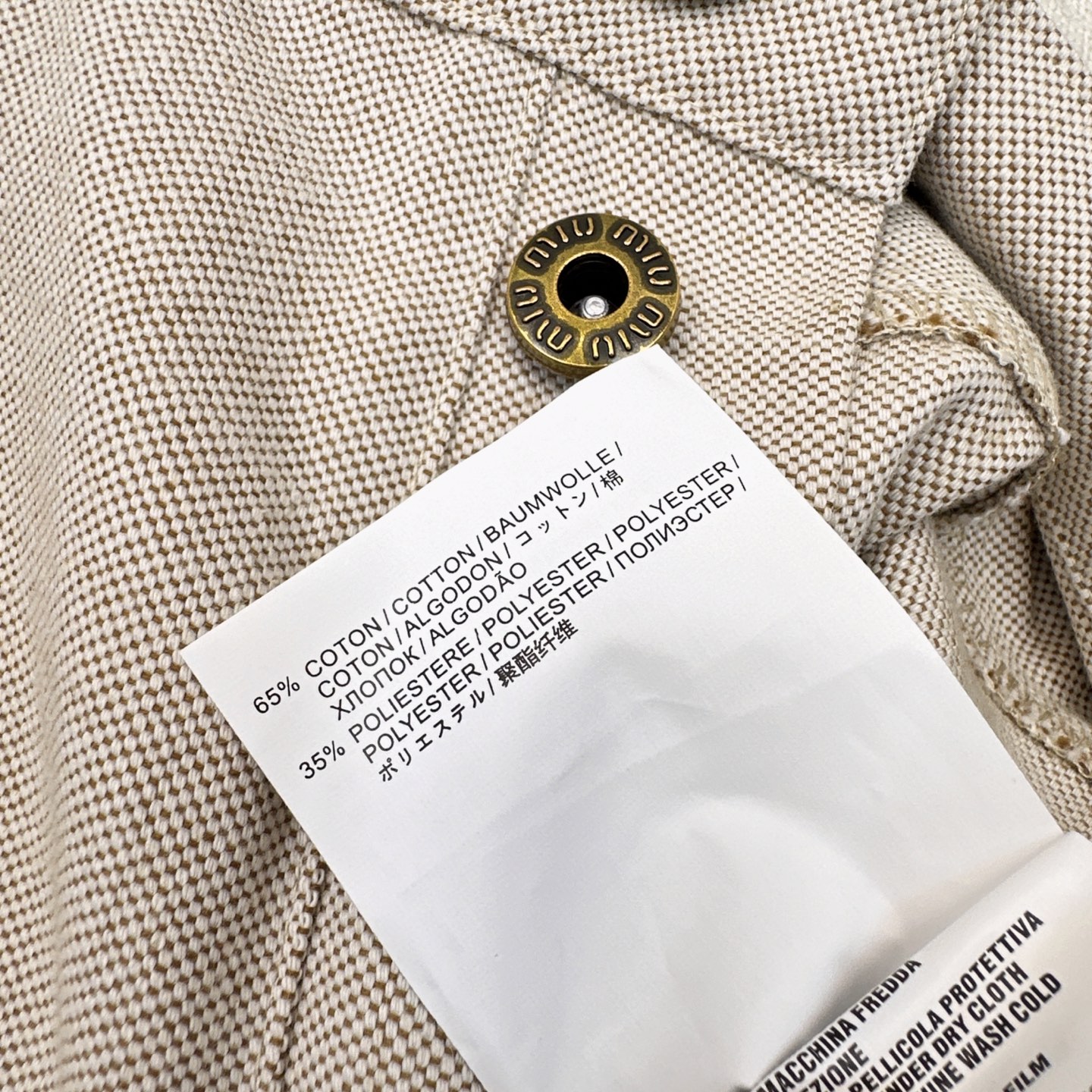这款衣服是AAAAA 1:1 质量 (非常棒). 使用了和原版一模一样的材料. 商标部分也保持了和缪缪/Miu Miu一样. 图片拍摄是实物衣服拍摄, 您所收到的实物保证和我们图片一模一样.