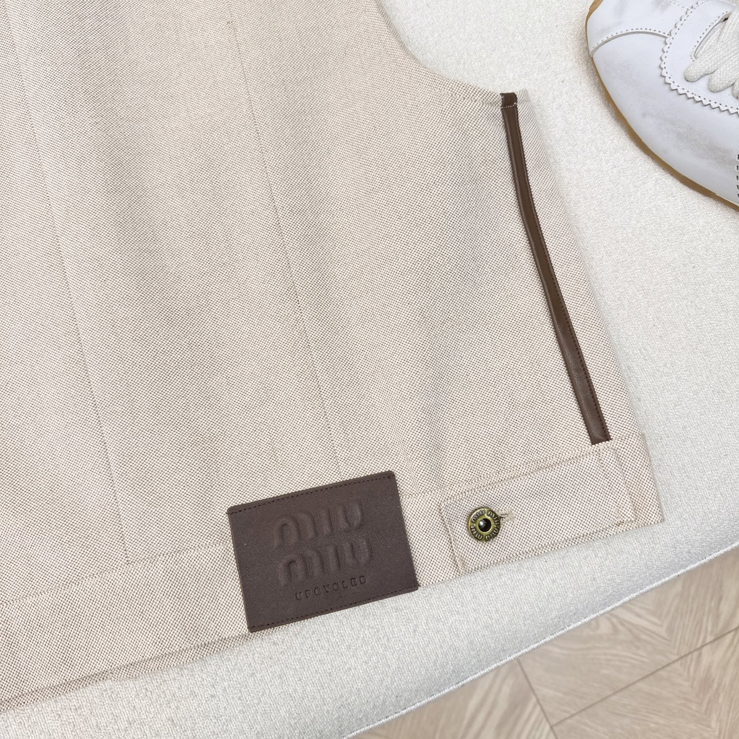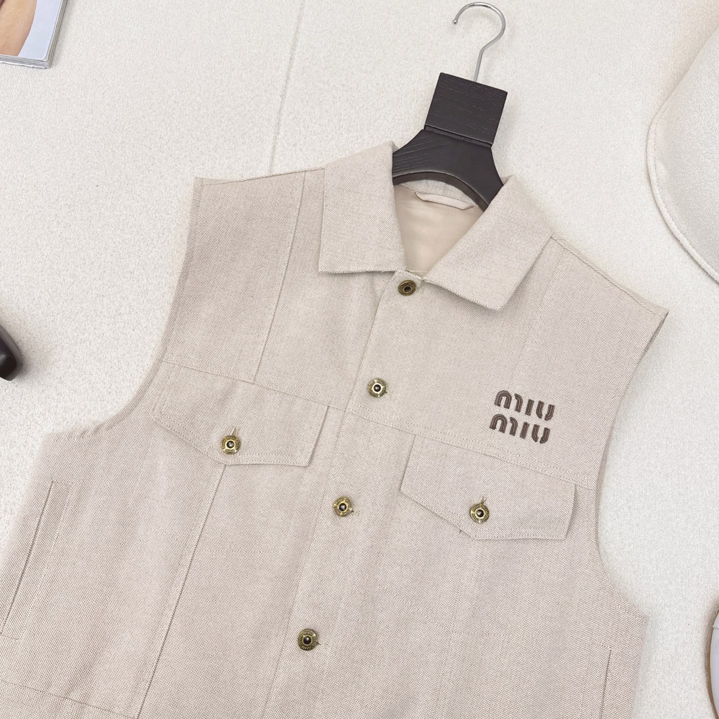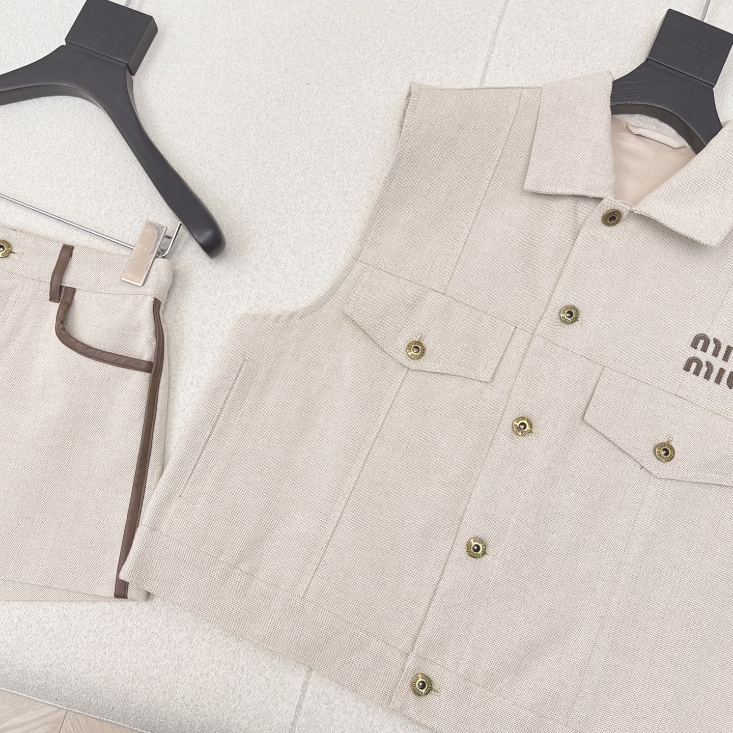 这款衣服是AAAAA 1:1 质量 (非常棒). 使用了和原版一模一样的材料. 商标部分也保持了和缪缪/Miu Miu一样. 图片拍摄是实物衣服拍摄, 您所收到的实物保证和我们图片一模一样.