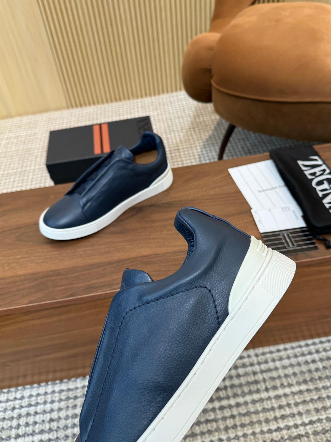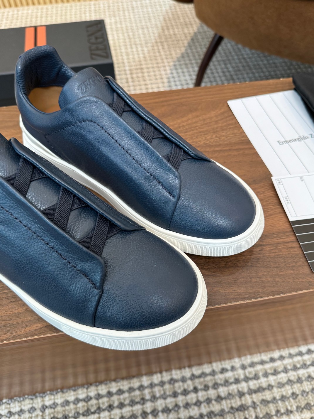 这款鞋子是AAAAA 1:1 质量 (非常棒). 使用了和原版一模一样的材料. 商标部分也保持了和杰尼亚/Zegna一样. 图片拍摄是实物鞋子拍摄, 您所收到的实物保证和我们图片一模一样.
