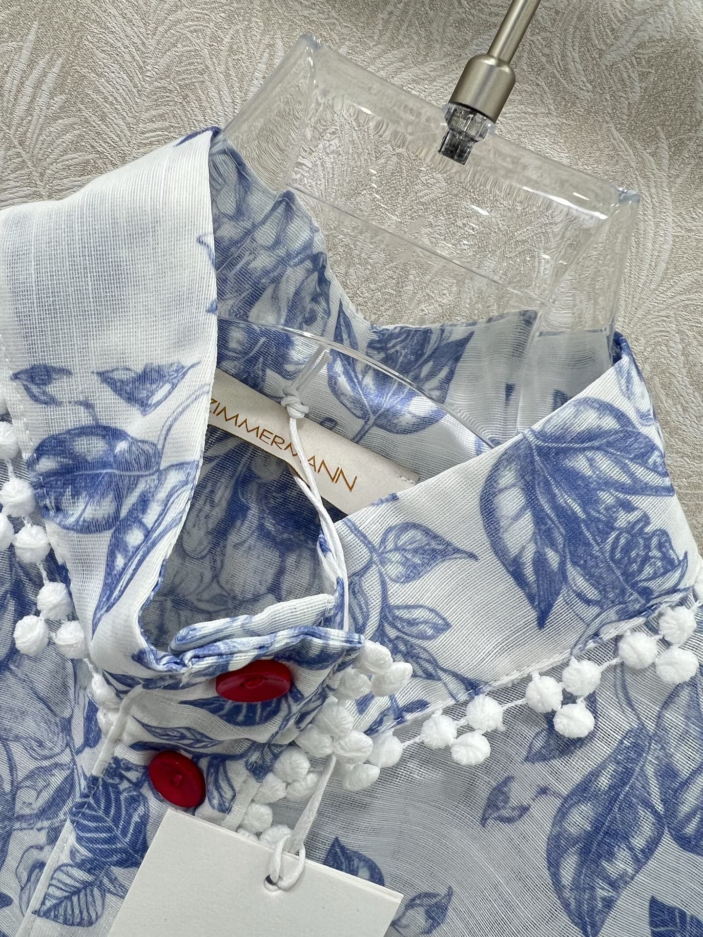这款衣服是AAAAA 1:1 质量 (非常棒). 使用了和原版一模一样的材料. 商标部分也保持了和ZIMMERMANN一样. 图片拍摄是实物衣服拍摄, 您所收到的实物保证和我们图片一模一样.