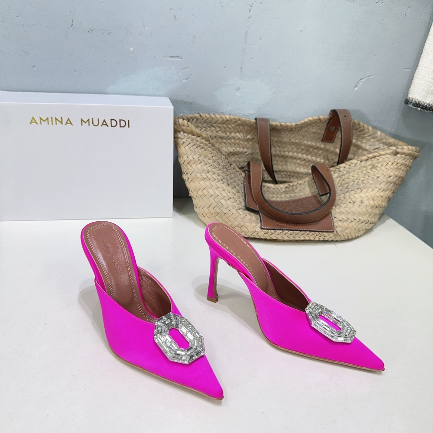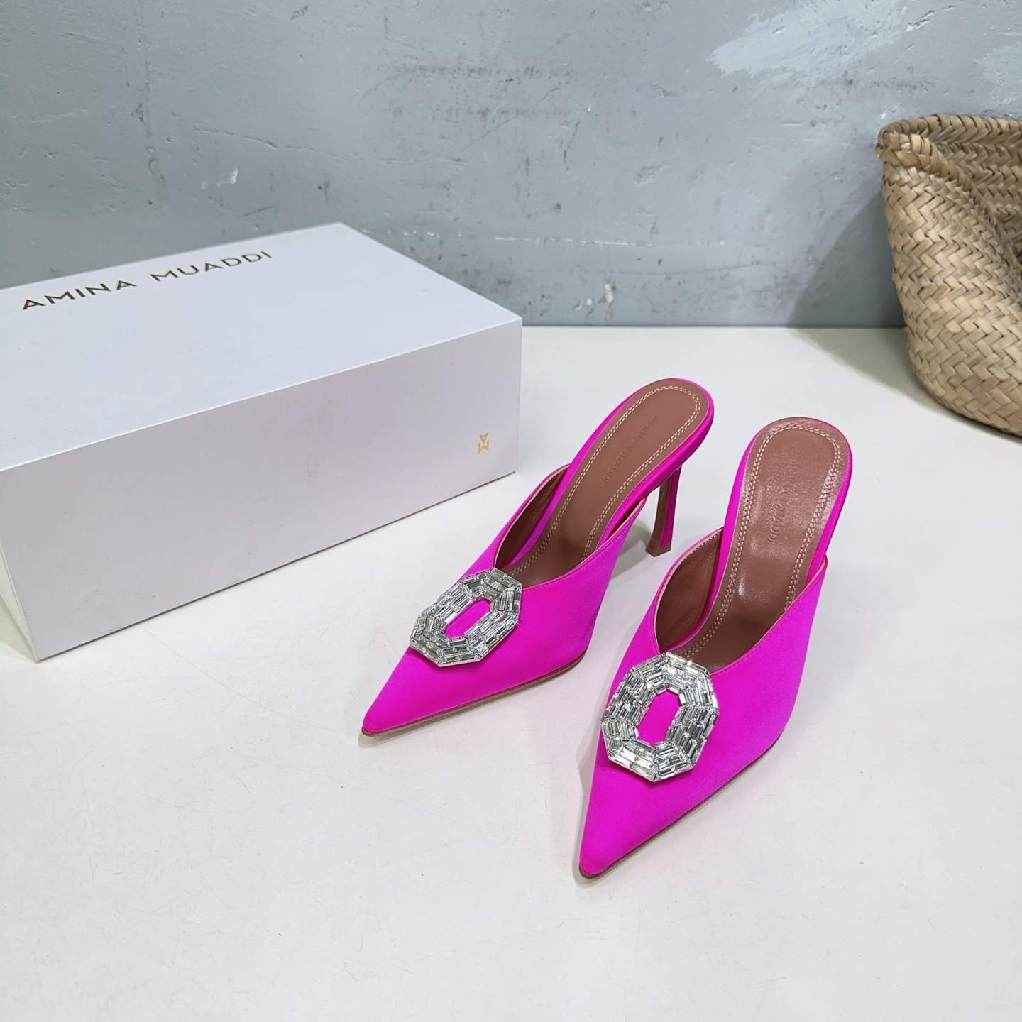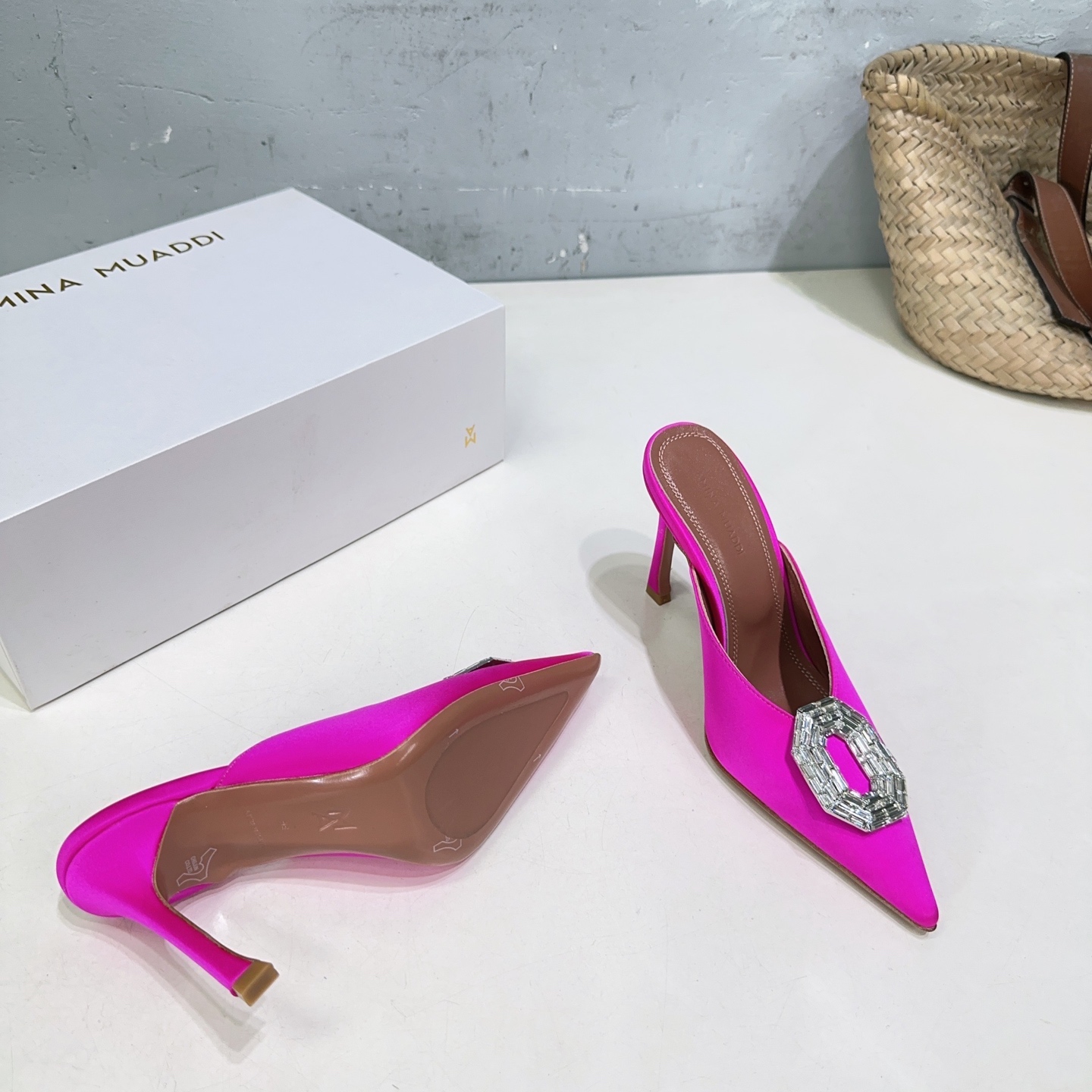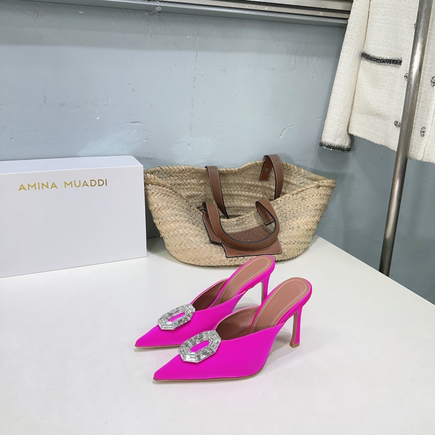 这款鞋子是AAAAA 1:1 质量 (非常棒). 使用了和原版一模一样的材料. 商标部分也保持了和Amina Muaddi一样. 图片拍摄是实物鞋子拍摄, 您所收到的实物保证和我们图片一模一样.
