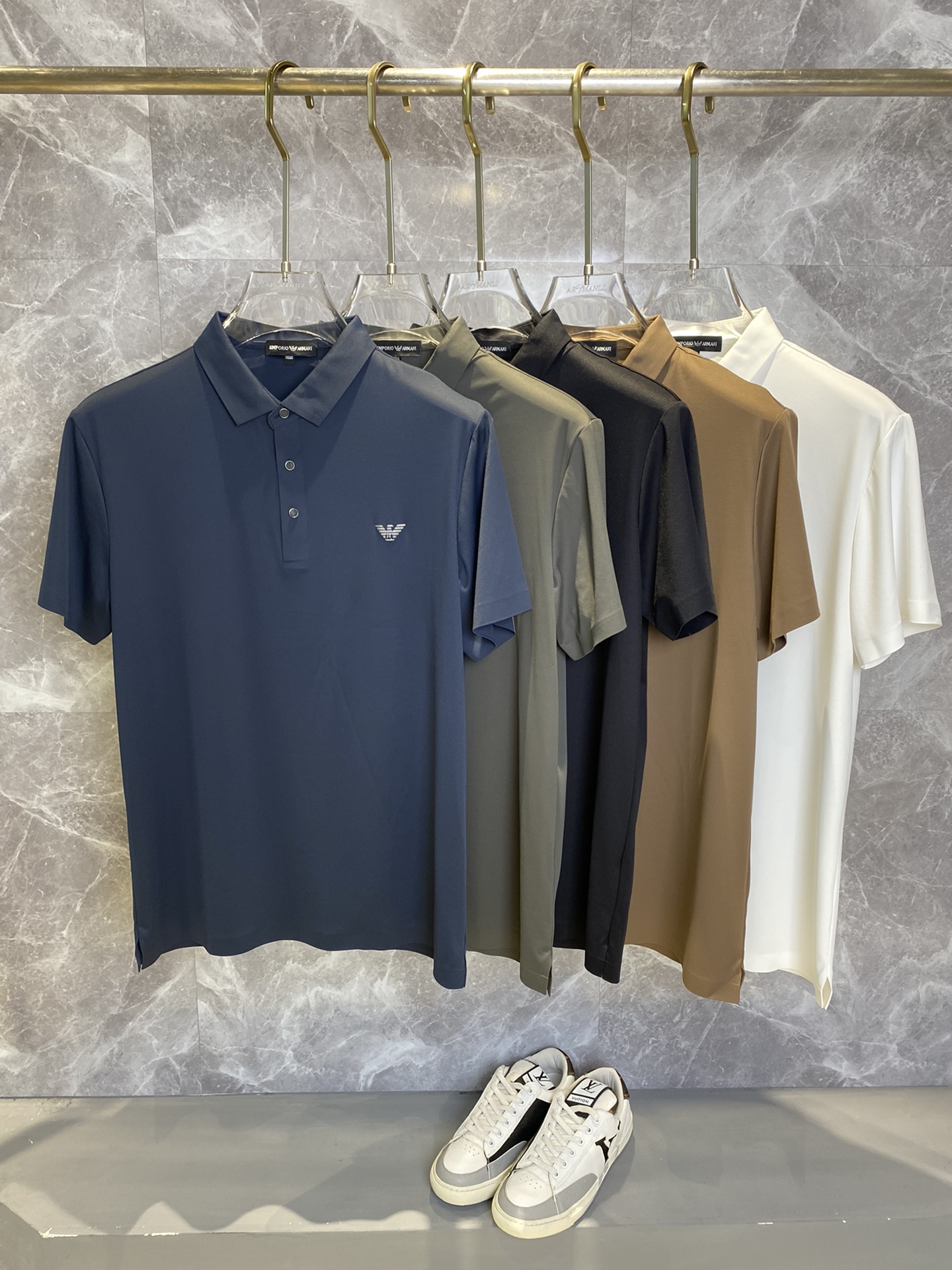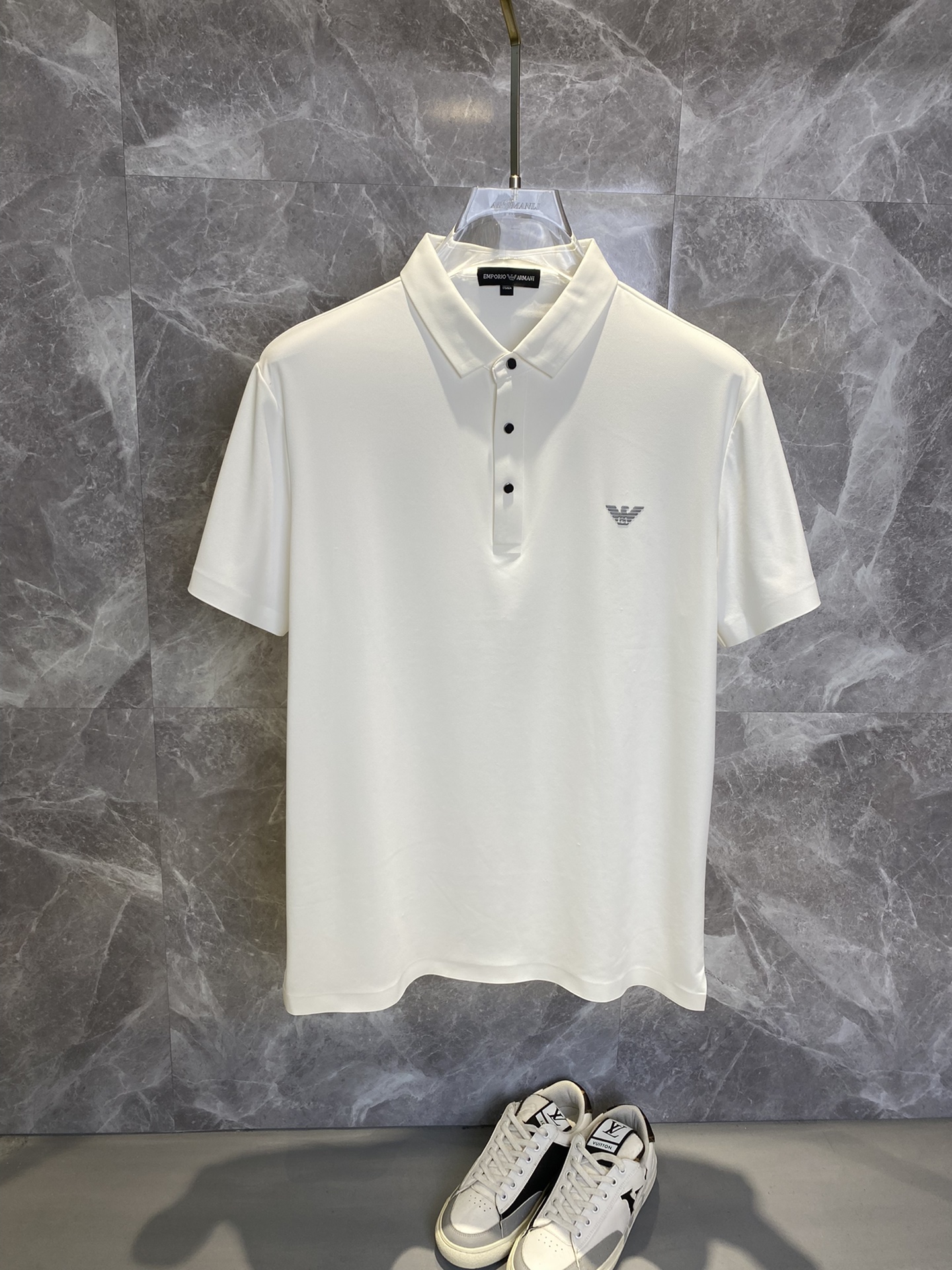 这款衣服是AAAAA 1:1 质量 (非常棒). 使用了和原版一模一样的材料. 商标部分也保持了和阿玛尼/Armani一样. 图片拍摄是实物衣服拍摄, 您所收到的实物保证和我们图片一模一样.