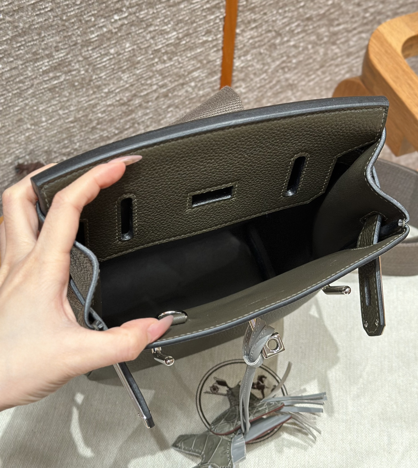 这款包包是AAAAA 1:1 质量 (非常棒). 使用了和原版一模一样的材料. 商标部分也保持了和爱马仕/Hermes一样. 图片拍摄是实物包包拍摄, 您所收到的实物保证和我们图片一模一样.