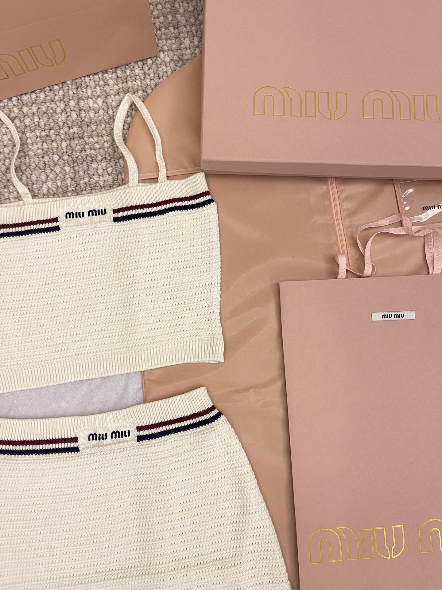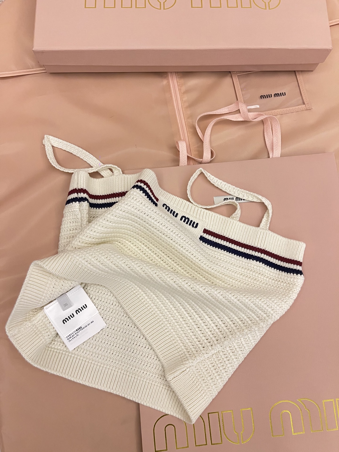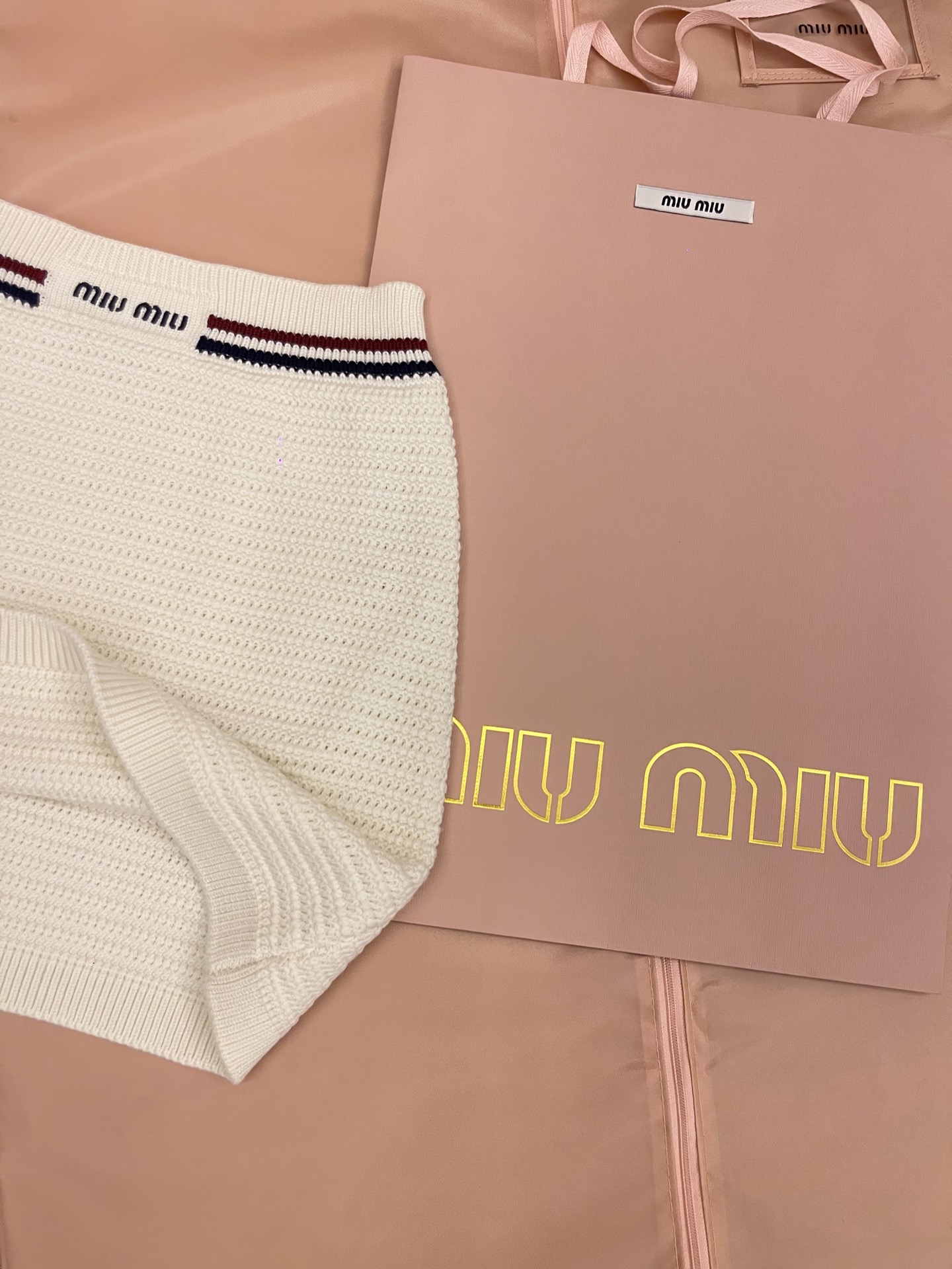 这款衣服是AAAAA 1:1 质量 (非常棒). 使用了和原版一模一样的材料. 商标部分也保持了和缪缪/Miu Miu一样. 图片拍摄是实物衣服拍摄, 您所收到的实物保证和我们图片一模一样.