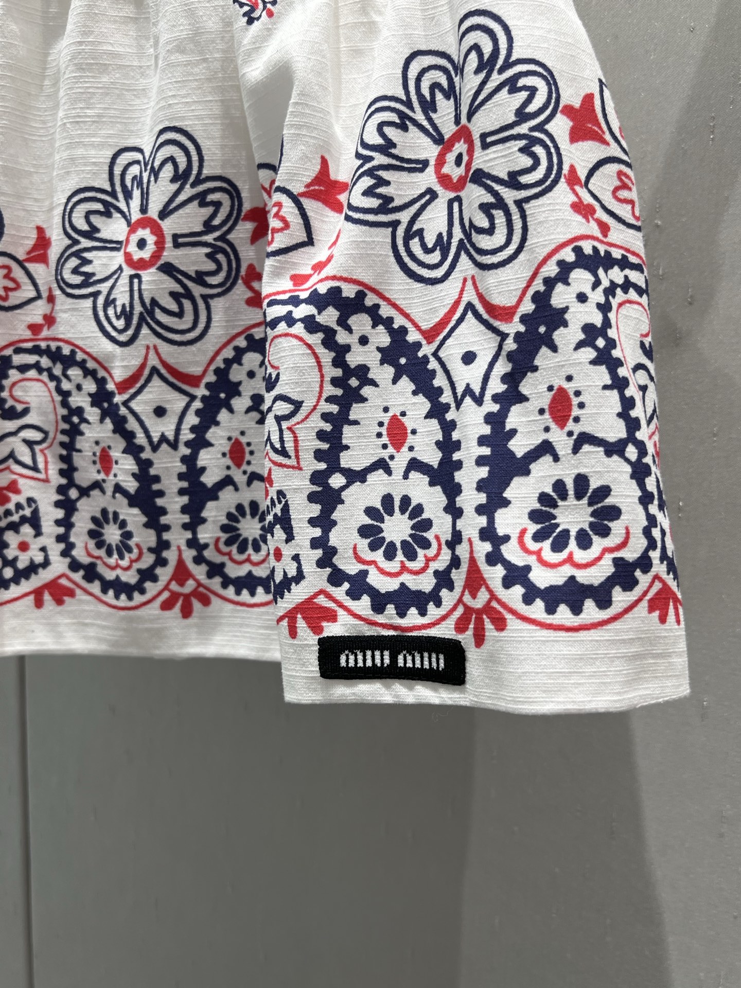 这款衣服是AAAAA 1:1 质量 (非常棒). 使用了和原版一模一样的材料. 商标部分也保持了和缪缪/Miu Miu一样. 图片拍摄是实物衣服拍摄, 您所收到的实物保证和我们图片一模一样.