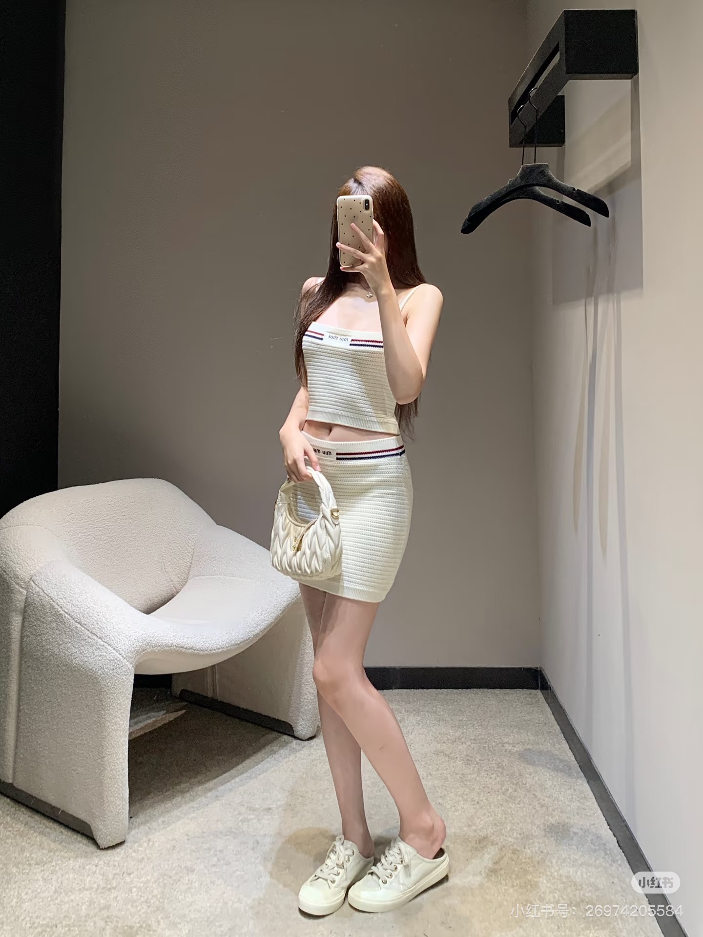 这款衣服是AAAAA 1:1 质量 (非常棒). 使用了和原版一模一样的材料. 商标部分也保持了和缪缪/Miu Miu一样. 图片拍摄是实物衣服拍摄, 您所收到的实物保证和我们图片一模一样.