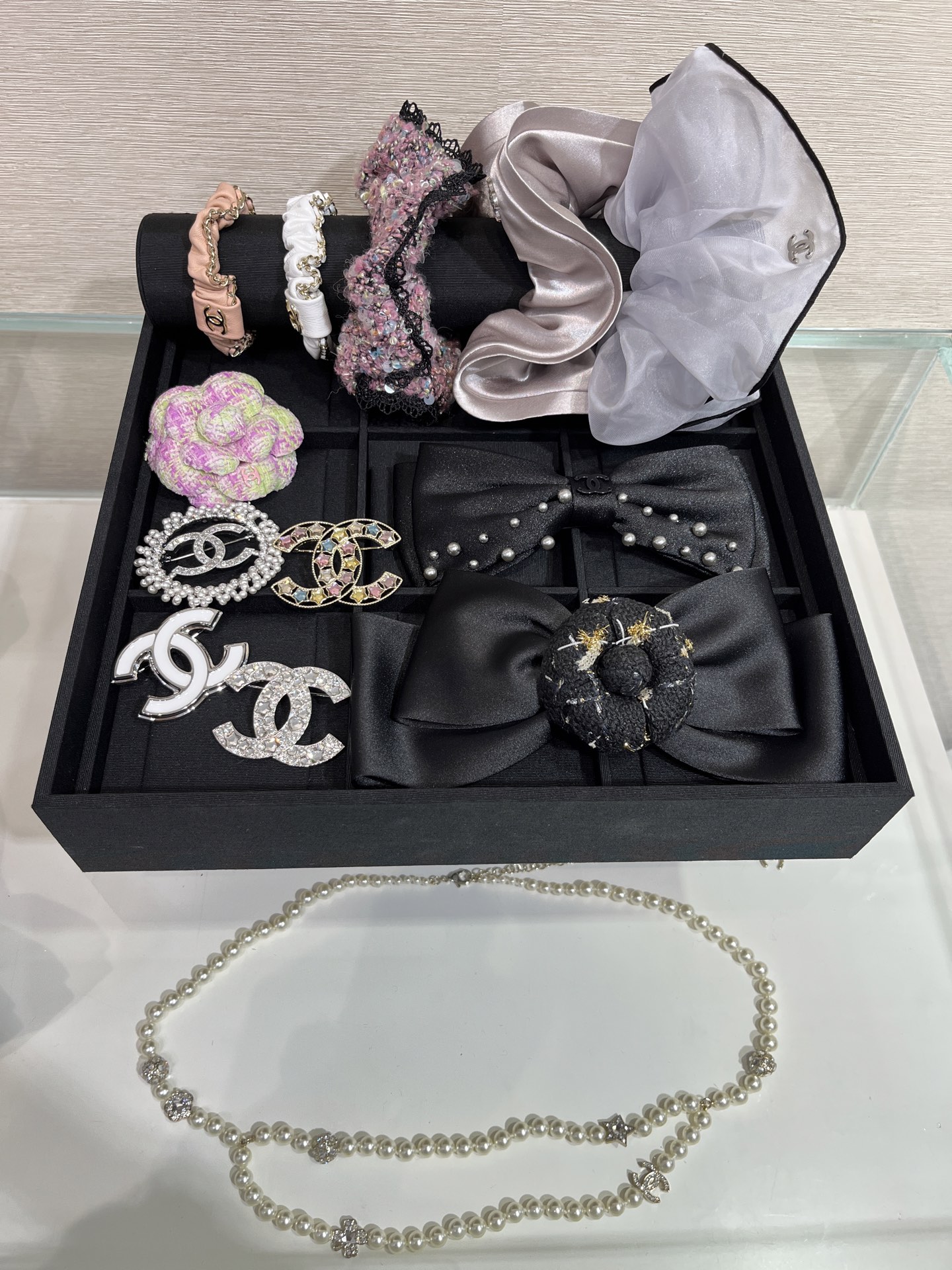 这款hair accessories是AAAAA 1:1 质量 (非常棒). 使用了和原版一模一样的材料. 商标部分也保持了和香奈儿/Chanel一样. 图片拍摄是实物hair accessories拍摄, 您所收到的实物保证和我们图片一模一样.