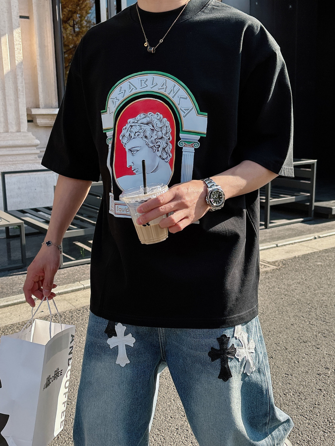 这款衣服是AAAAA 1:1 质量 (非常棒). 使用了和原版一模一样的材料. 商标部分也保持了和Casablanca 一样. 图片拍摄是实物衣服拍摄, 您所收到的实物保证和我们图片一模一样.