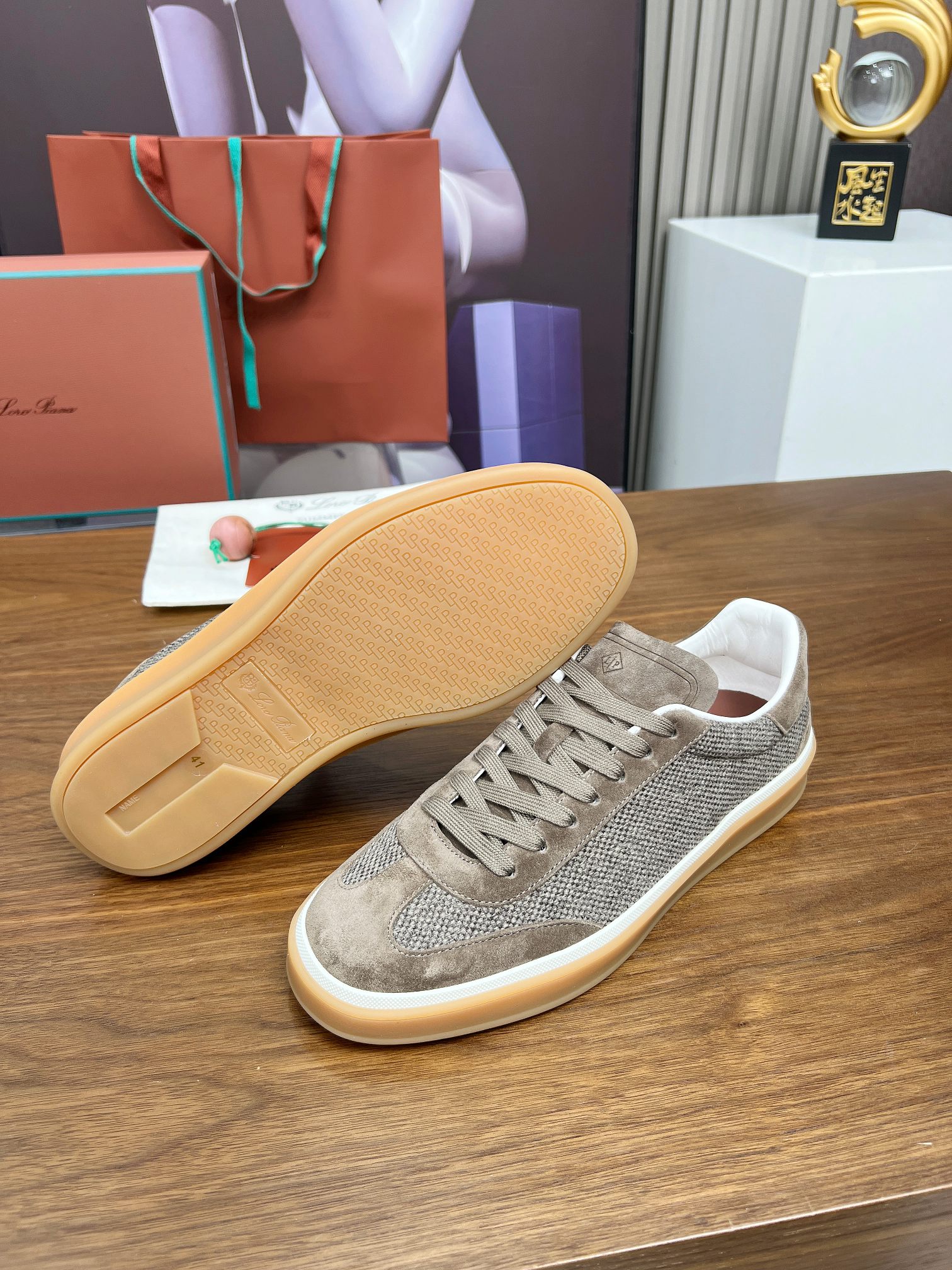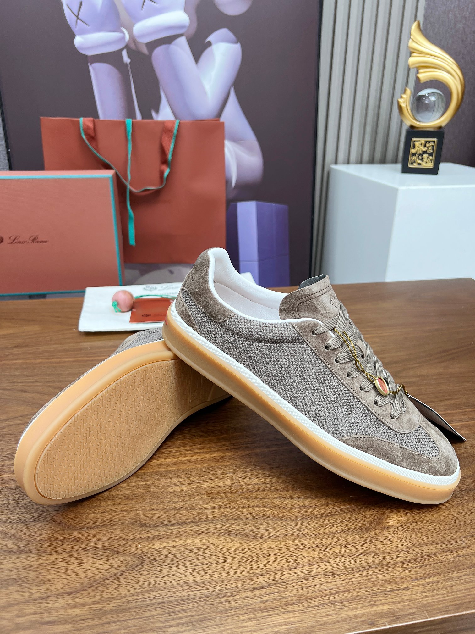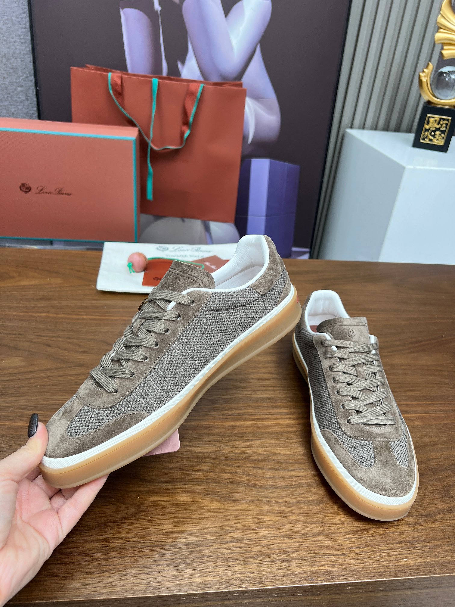 这款鞋子是AAAAA 1:1 质量 (非常棒). 使用了和原版一模一样的材料. 商标部分也保持了和洛罗皮亚纳/Loro Piana一样. 图片拍摄是实物鞋子拍摄, 您所收到的实物保证和我们图片一模一样.