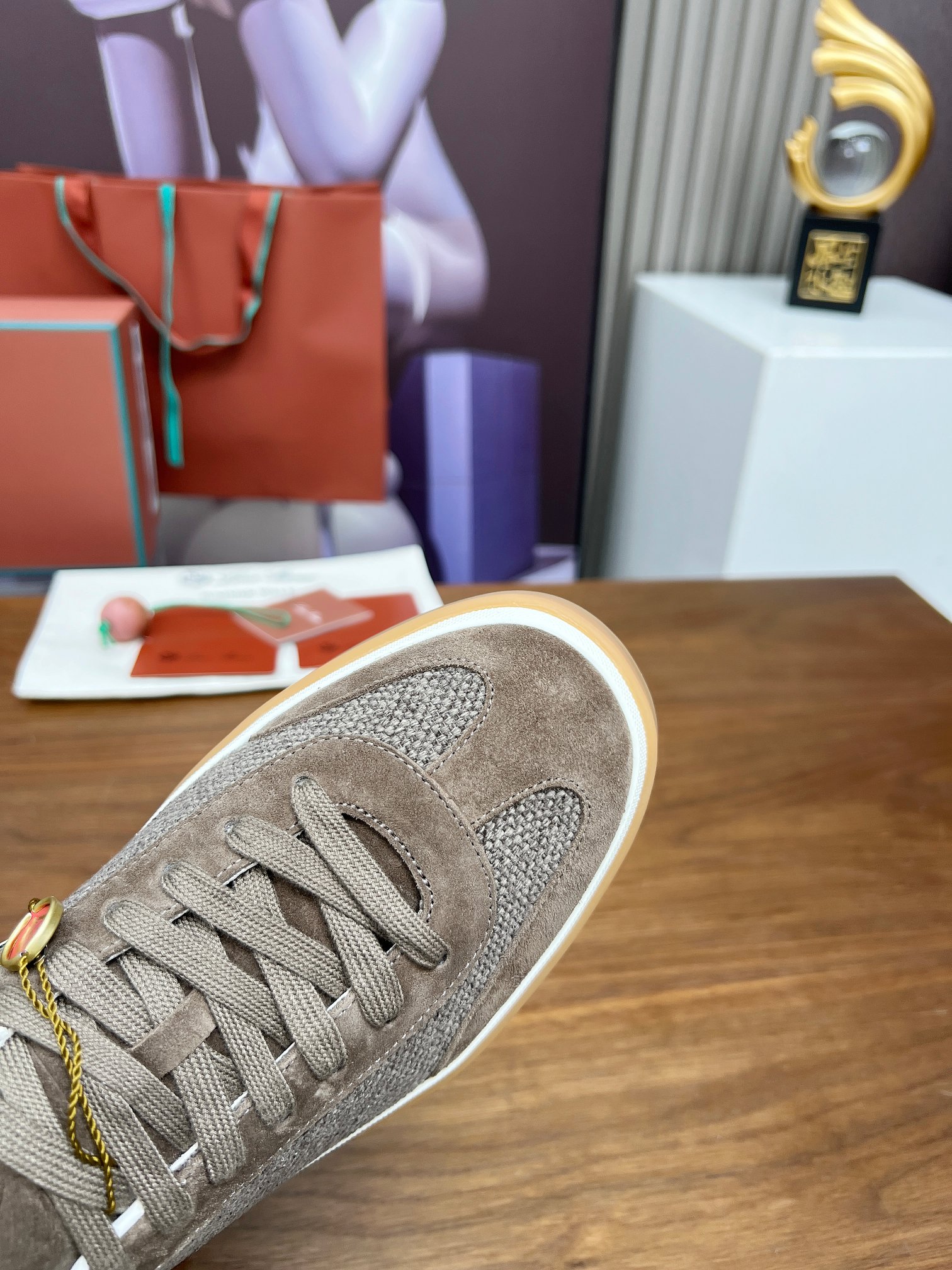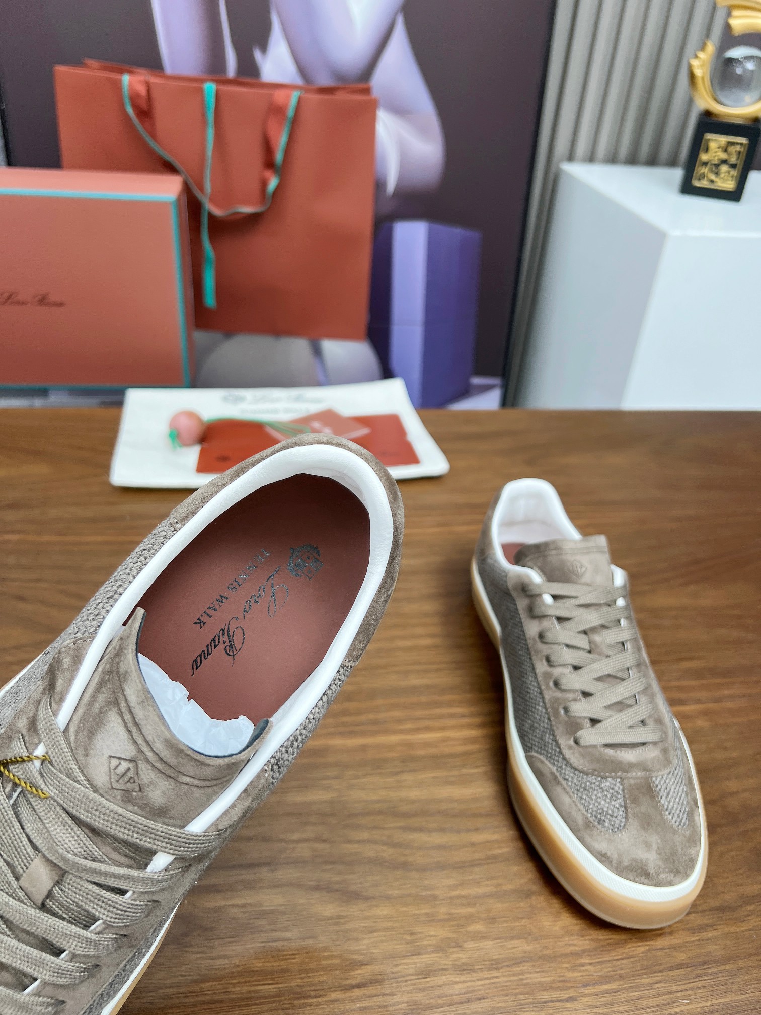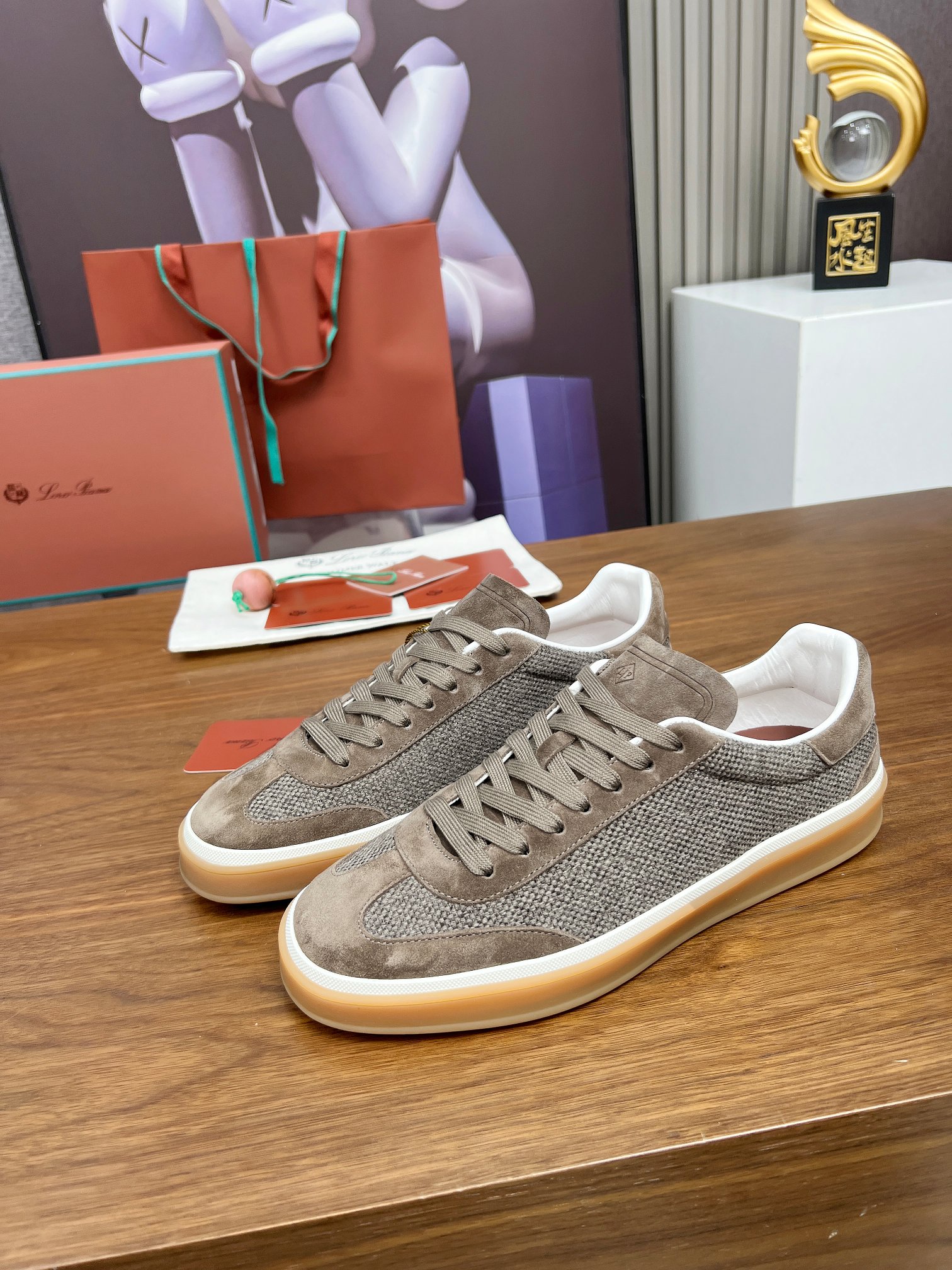 这款鞋子是AAAAA 1:1 质量 (非常棒). 使用了和原版一模一样的材料. 商标部分也保持了和洛罗皮亚纳/Loro Piana一样. 图片拍摄是实物鞋子拍摄, 您所收到的实物保证和我们图片一模一样.