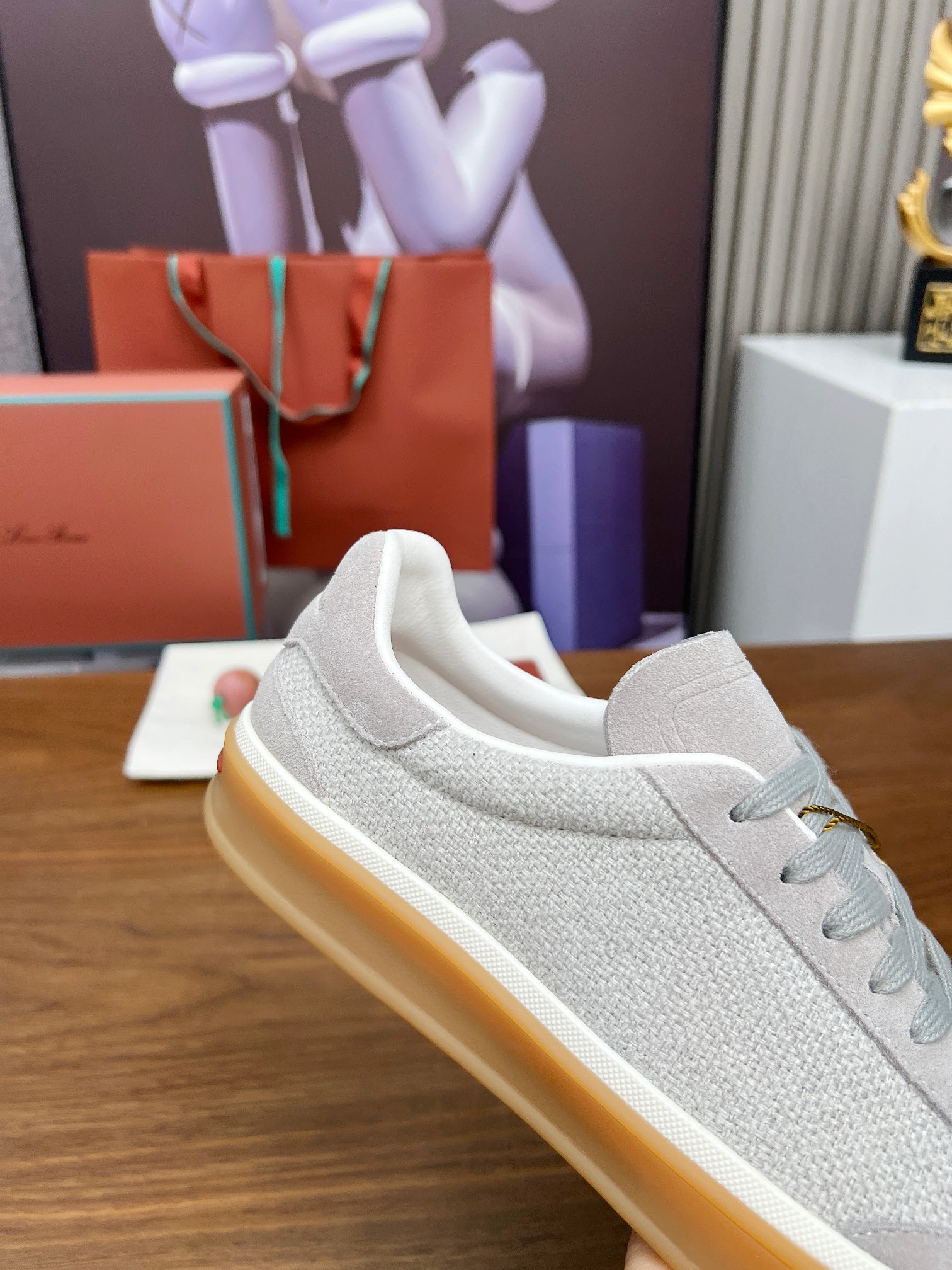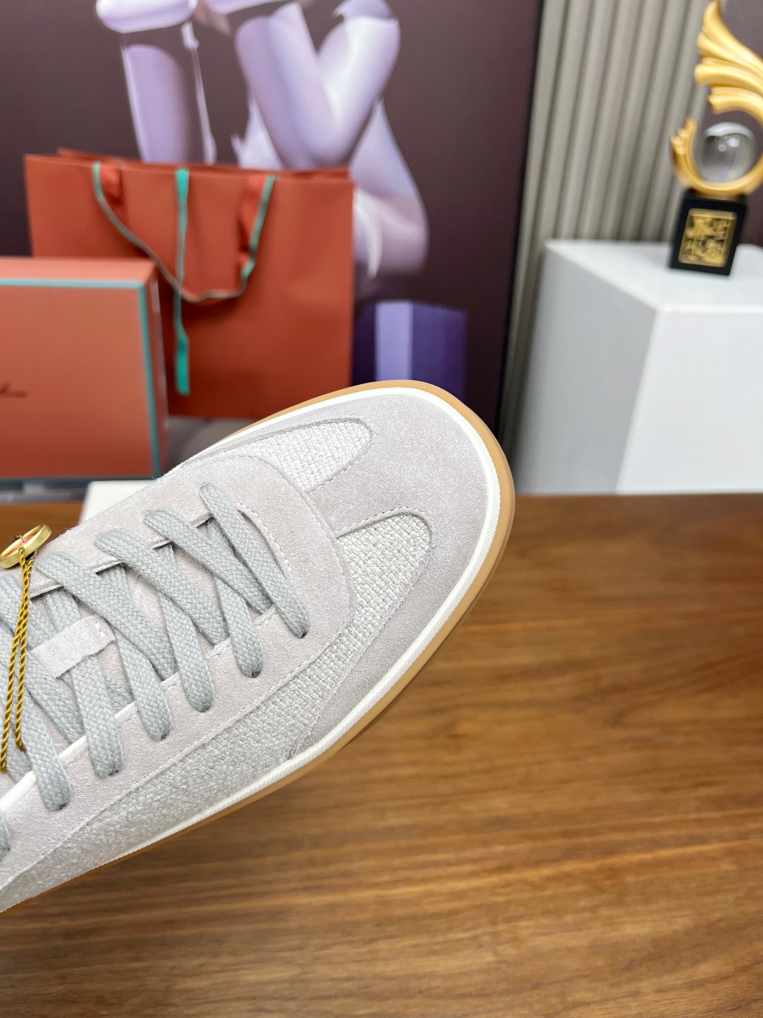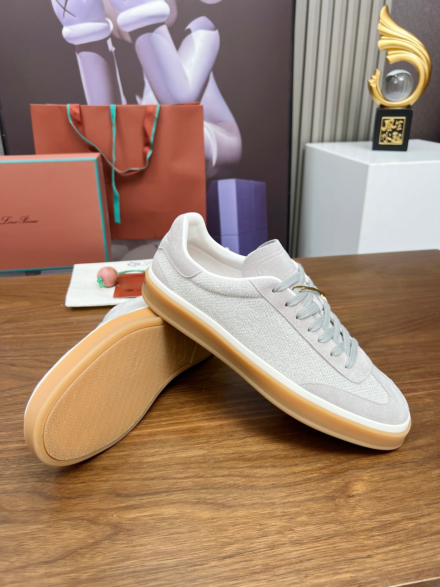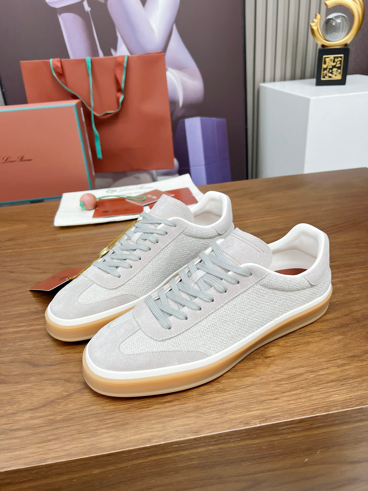 这款鞋子是AAAAA 1:1 质量 (非常棒). 使用了和原版一模一样的材料. 商标部分也保持了和洛罗皮亚纳/Loro Piana一样. 图片拍摄是实物鞋子拍摄, 您所收到的实物保证和我们图片一模一样.