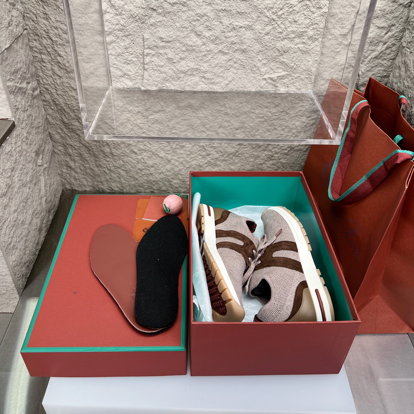 这款鞋子是AAAAA 1:1 质量 (非常棒). 使用了和原版一模一样的材料. 商标部分也保持了和洛罗皮亚纳/Loro Piana一样. 图片拍摄是实物鞋子拍摄, 您所收到的实物保证和我们图片一模一样.