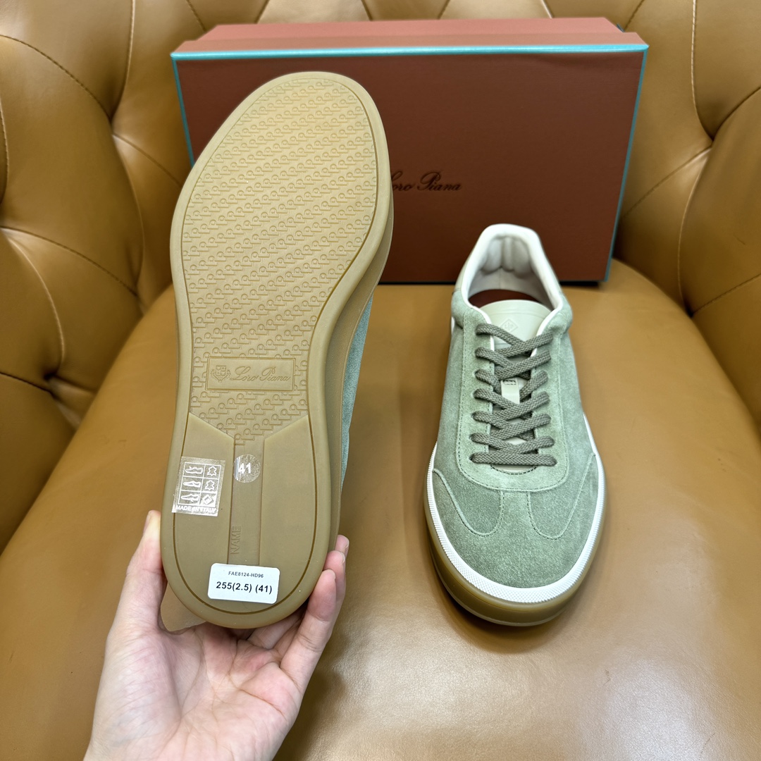 这款鞋子是AAAAA 1:1 质量 (非常棒). 使用了和原版一模一样的材料. 商标部分也保持了和洛罗皮亚纳/Loro Piana一样. 图片拍摄是实物鞋子拍摄, 您所收到的实物保证和我们图片一模一样.