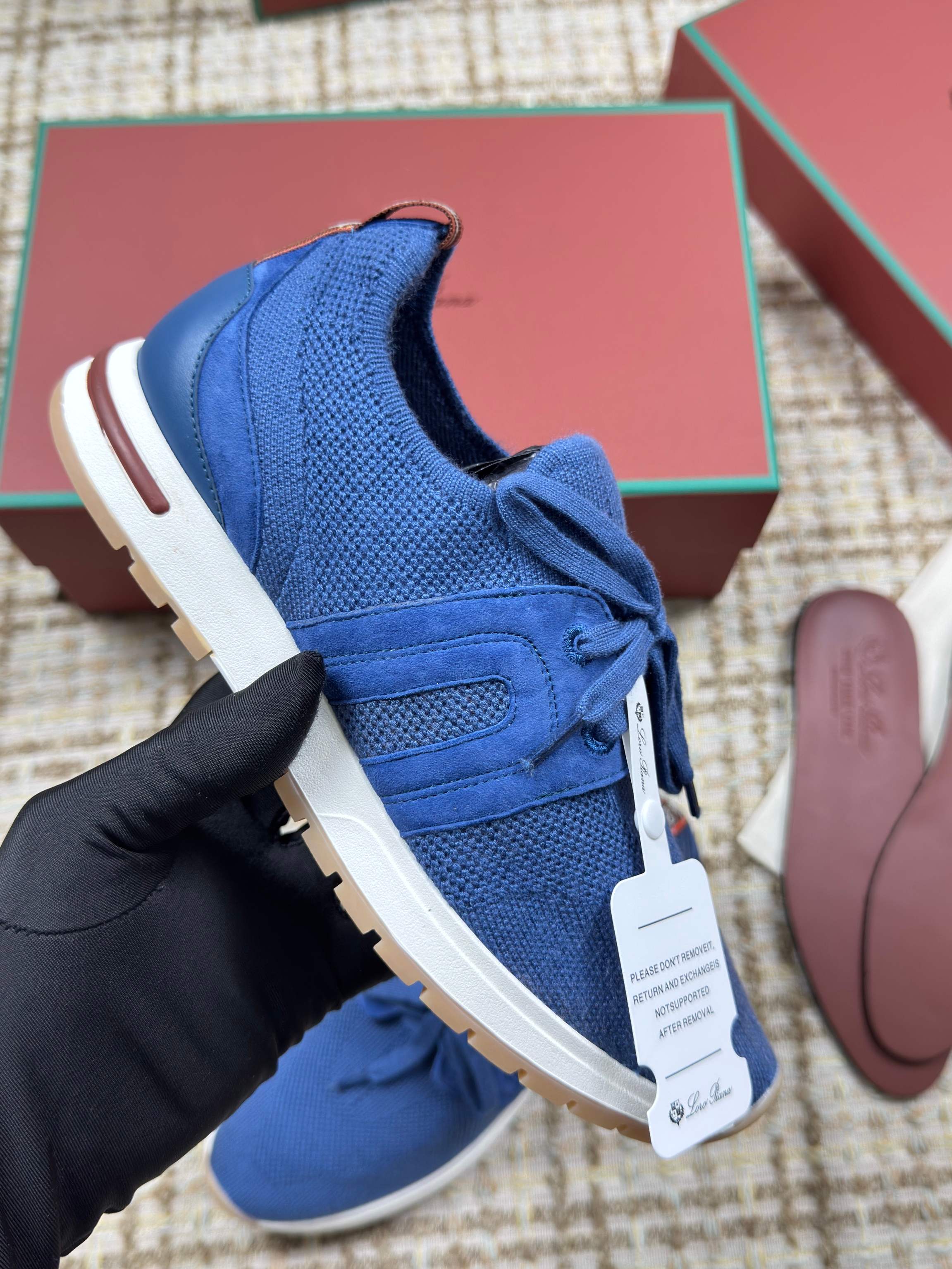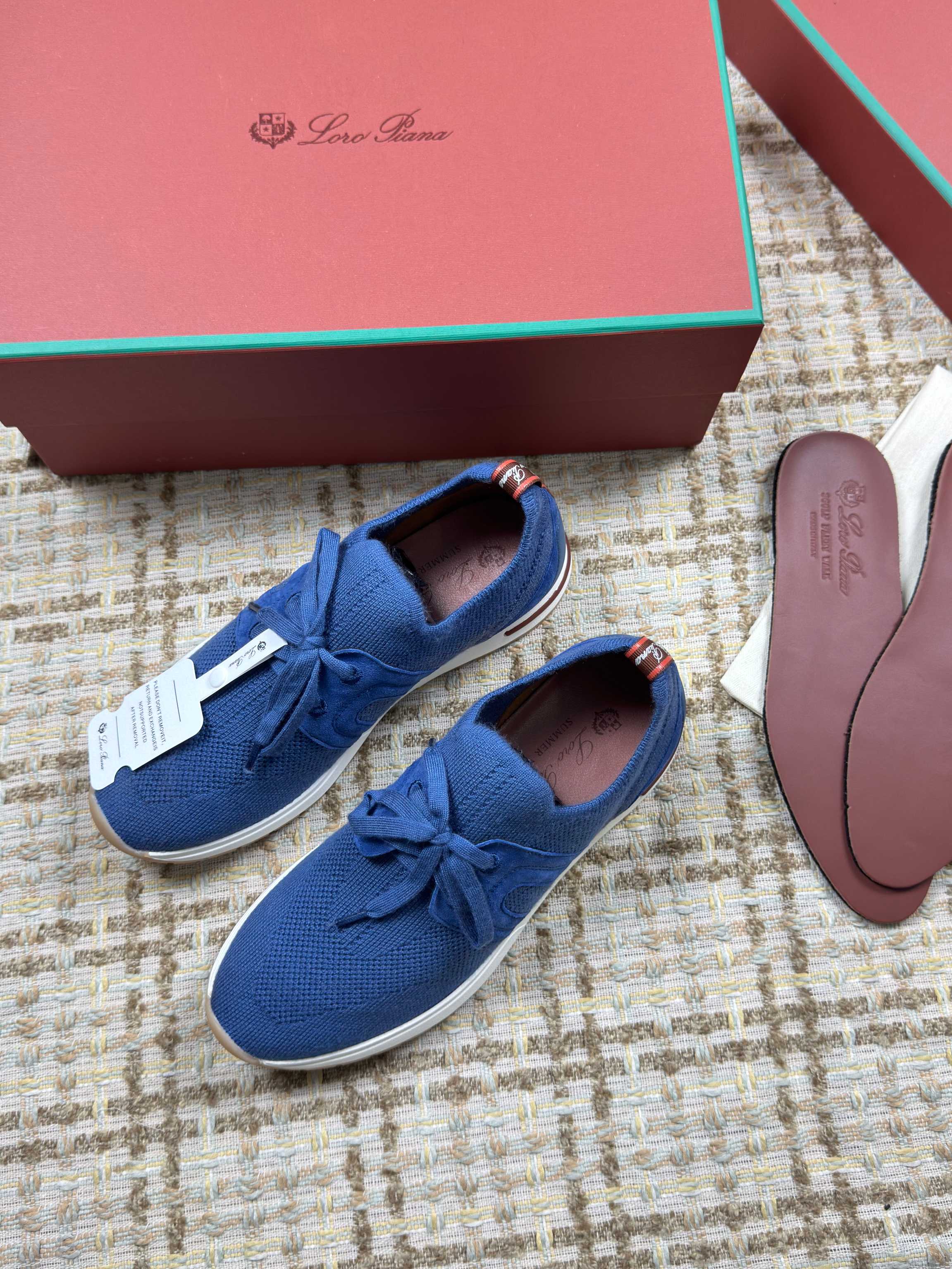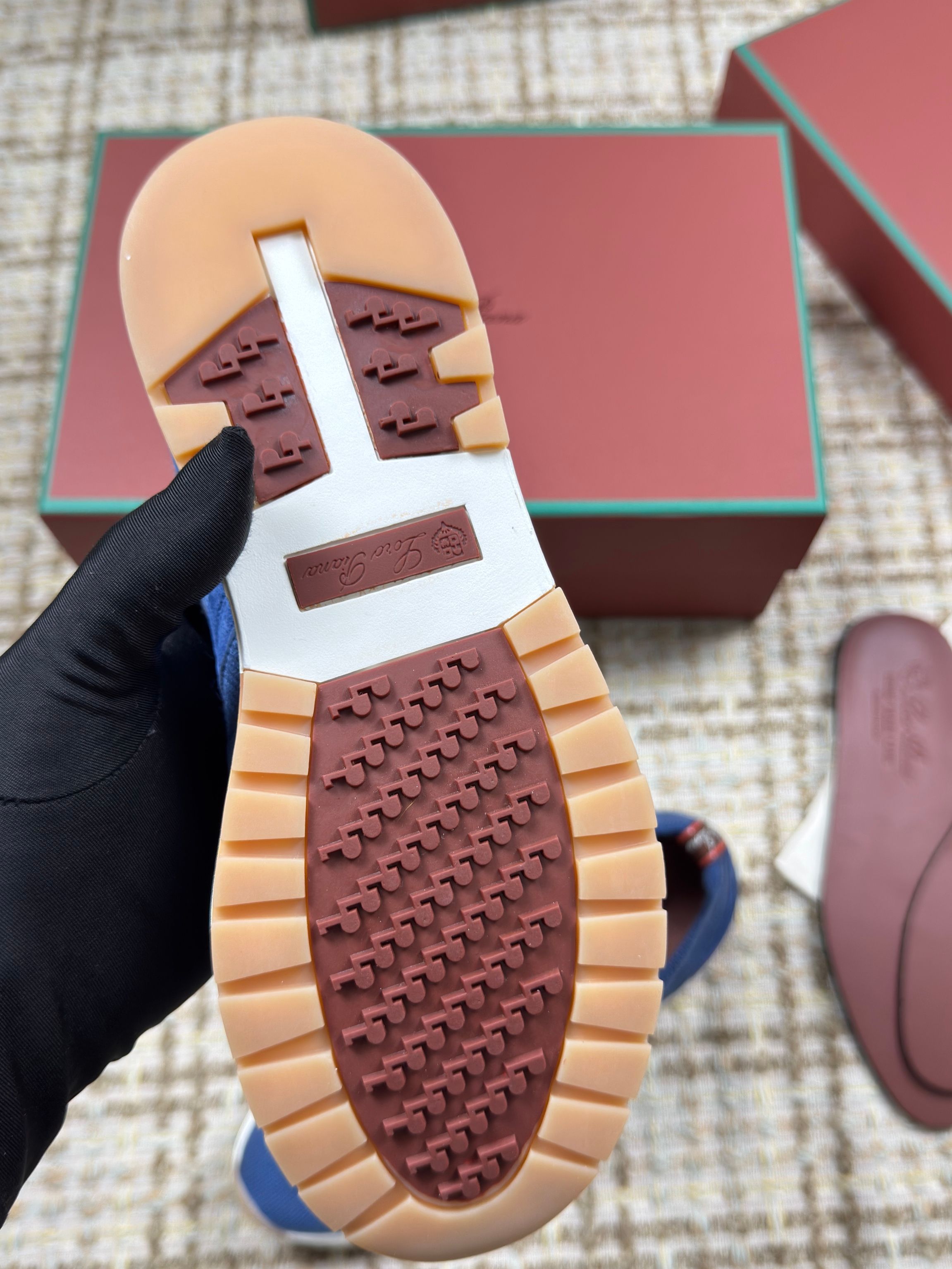 这款鞋子是AAAAA 1:1 质量 (非常棒). 使用了和原版一模一样的材料. 商标部分也保持了和洛罗皮亚纳/Loro Piana一样. 图片拍摄是实物鞋子拍摄, 您所收到的实物保证和我们图片一模一样.