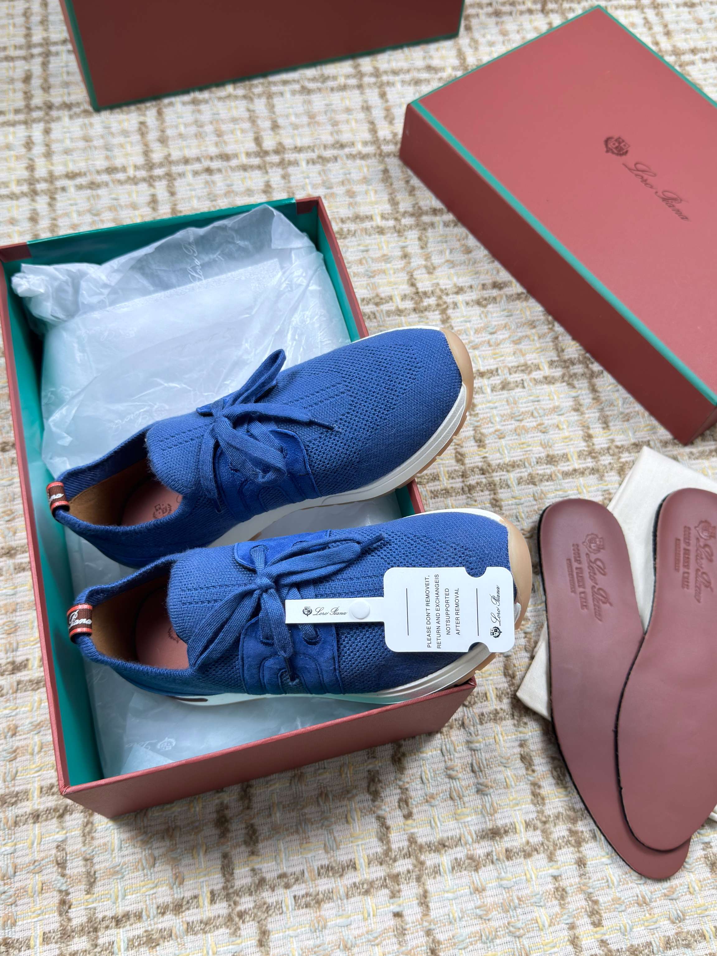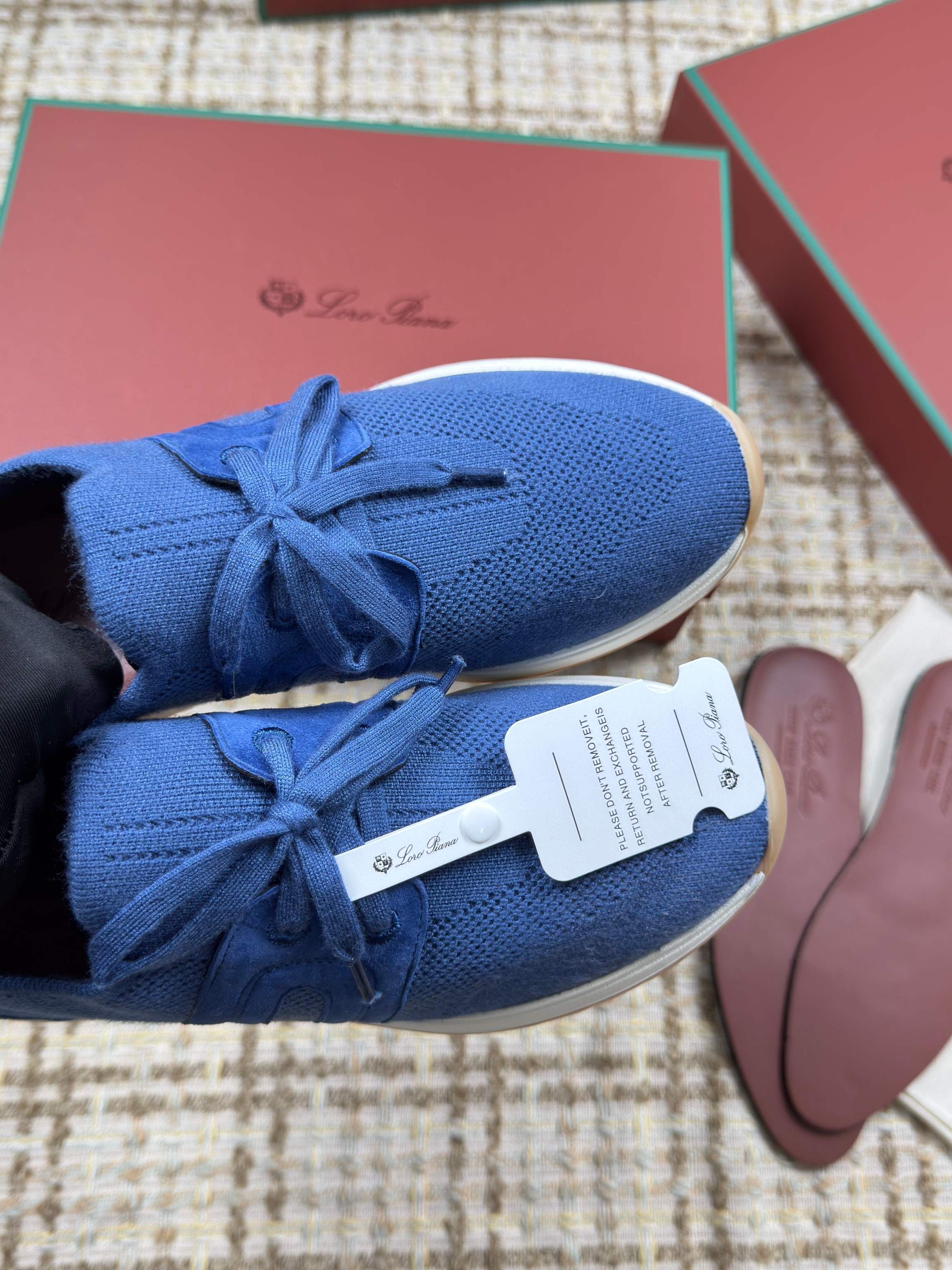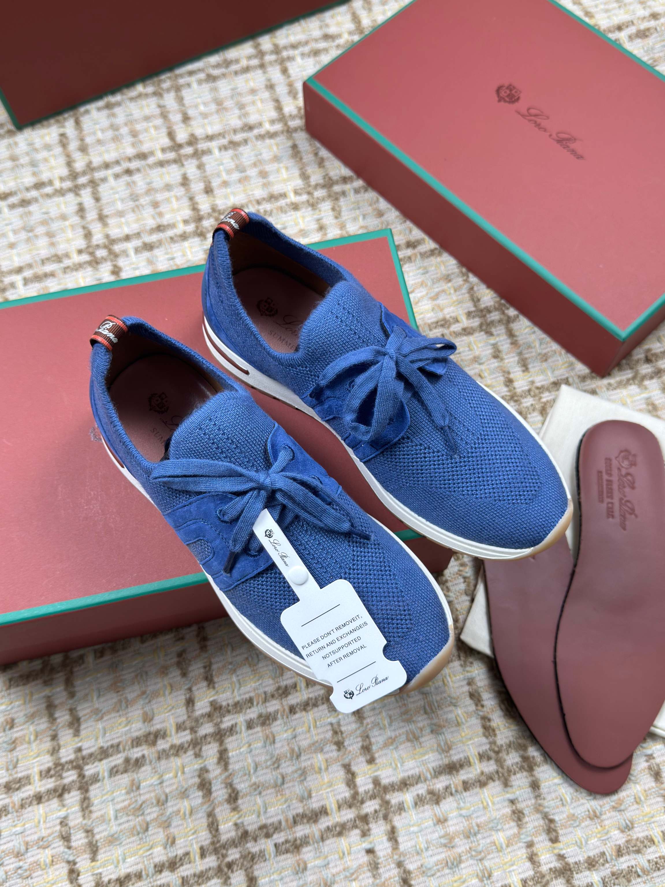 这款鞋子是AAAAA 1:1 质量 (非常棒). 使用了和原版一模一样的材料. 商标部分也保持了和洛罗皮亚纳/Loro Piana一样. 图片拍摄是实物鞋子拍摄, 您所收到的实物保证和我们图片一模一样.