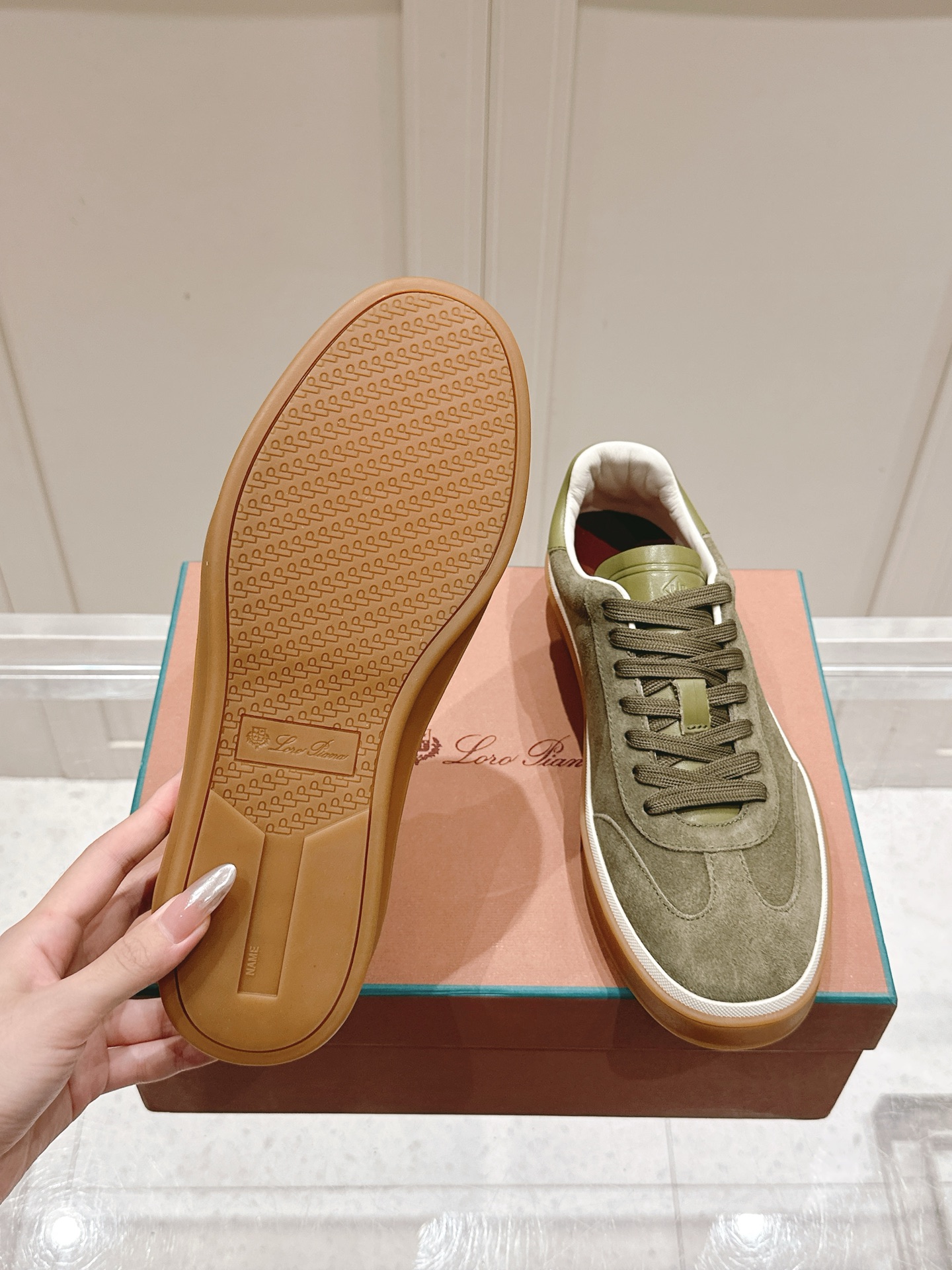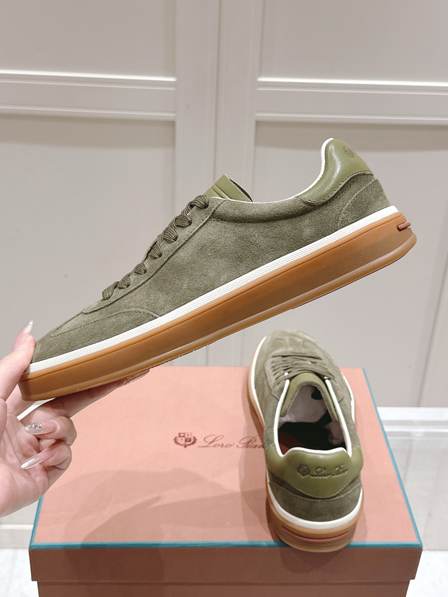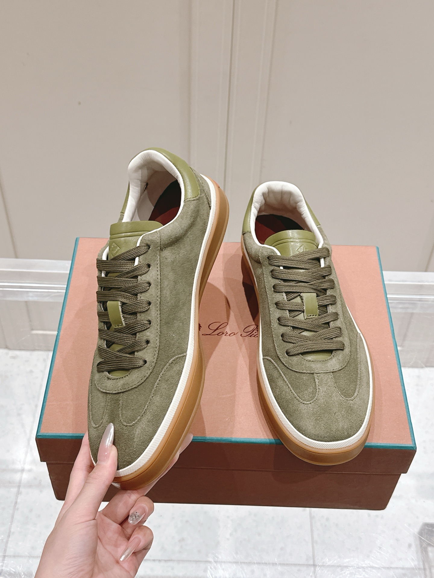 这款鞋子是AAAAA 1:1 质量 (非常棒). 使用了和原版一模一样的材料. 商标部分也保持了和洛罗皮亚纳/Loro Piana一样. 图片拍摄是实物鞋子拍摄, 您所收到的实物保证和我们图片一模一样.
