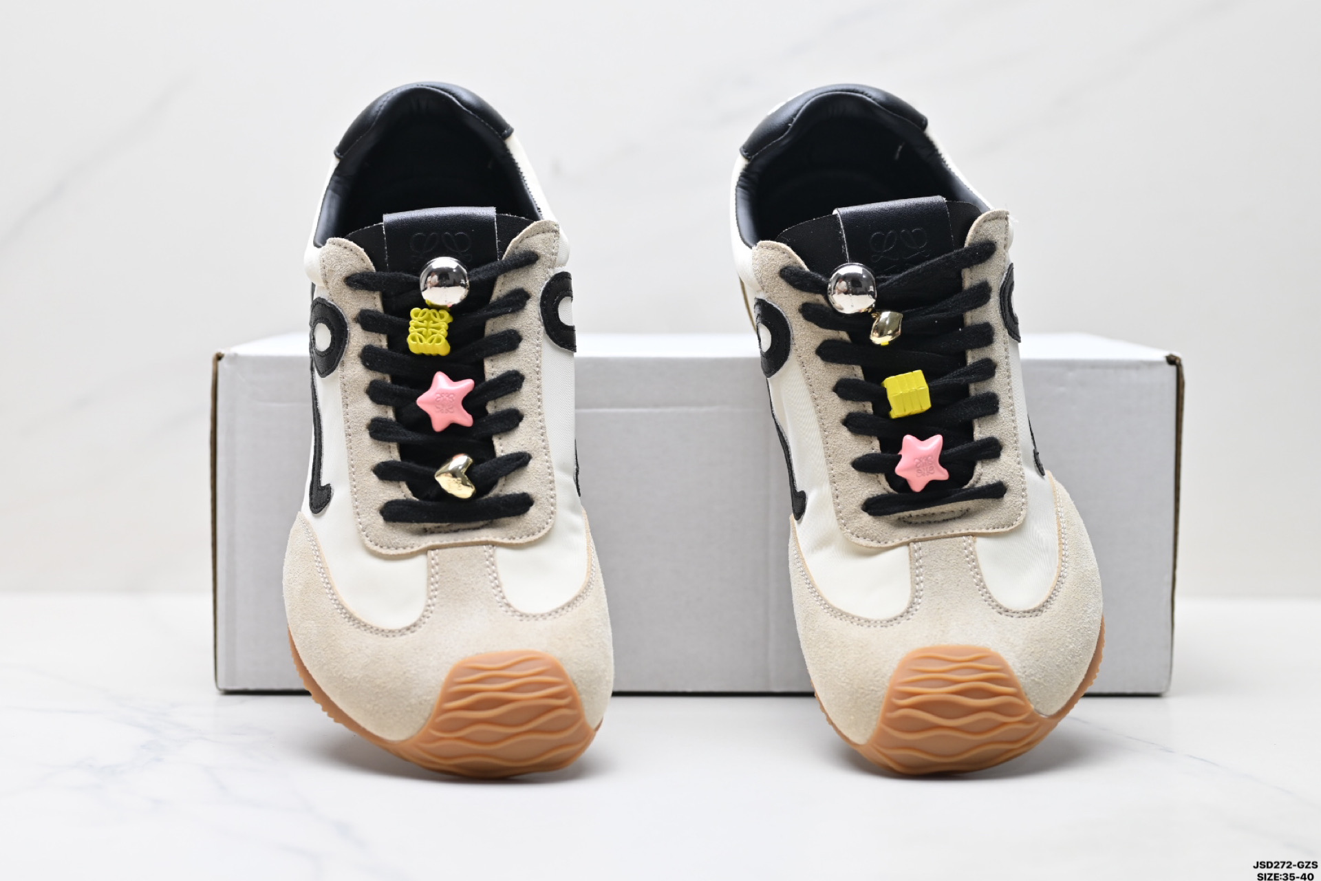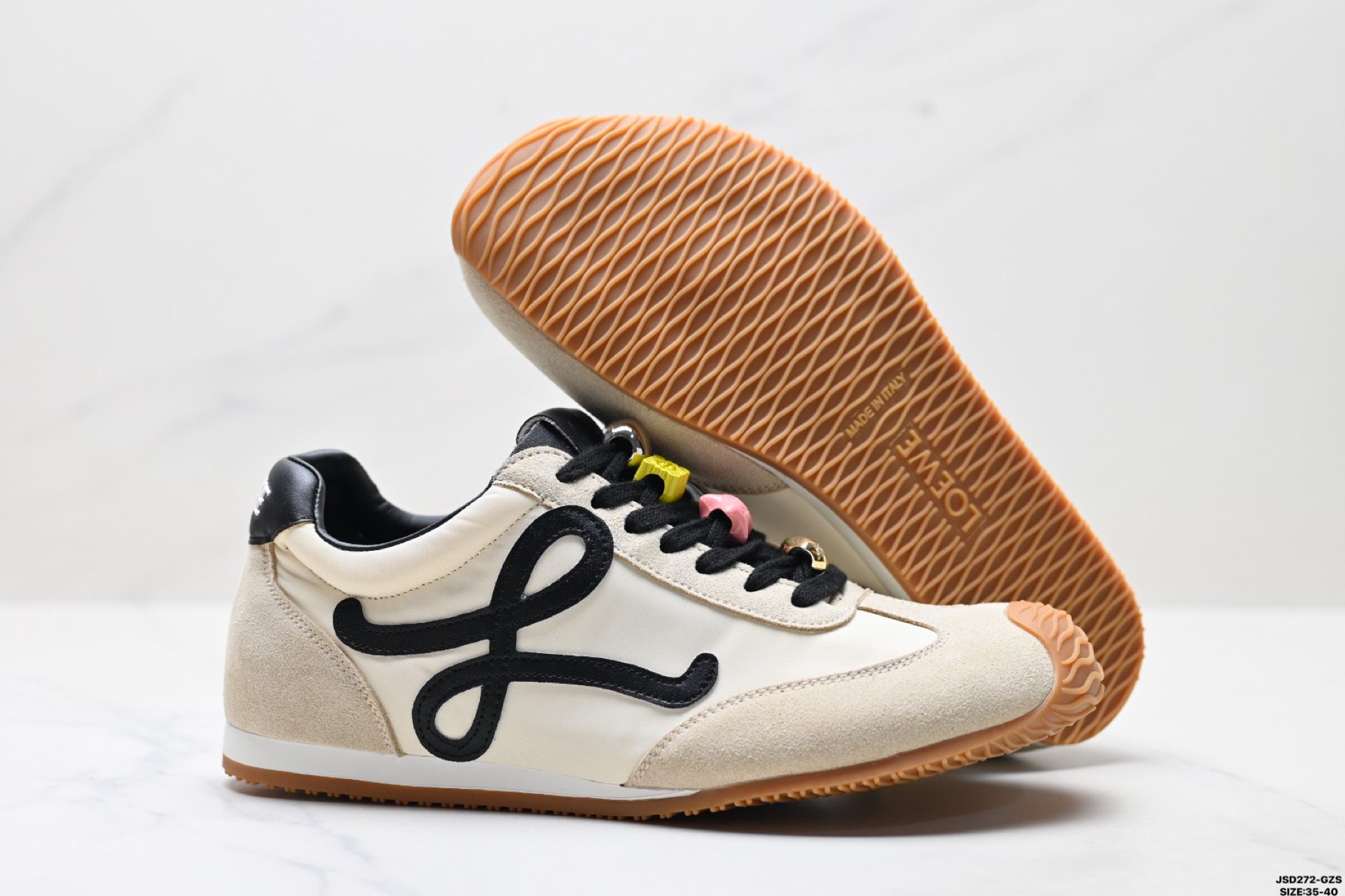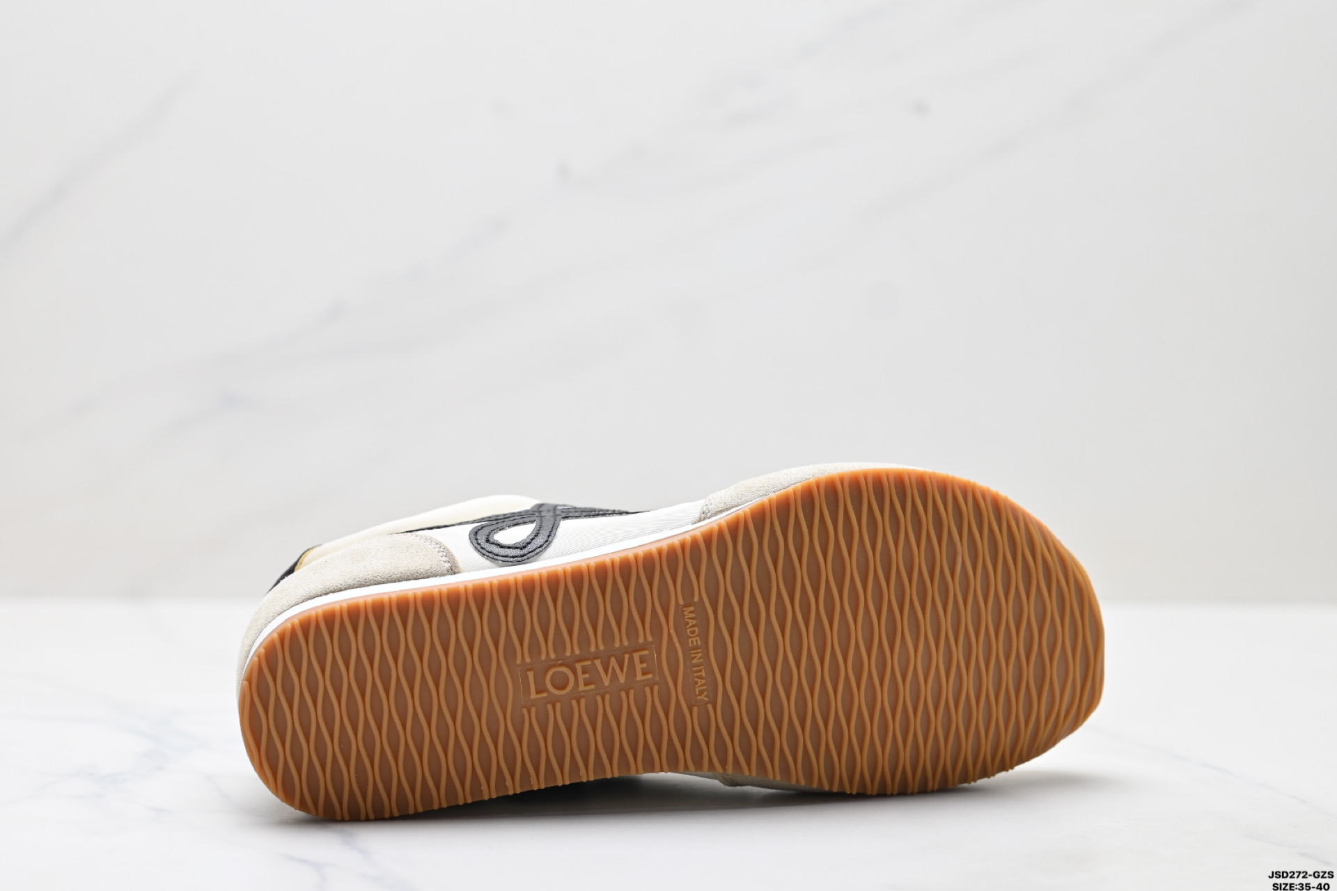 这款鞋子是AAAAA 1:1 质量 (非常棒). 使用了和原版一模一样的材料. 商标部分也保持了和罗意威/Loewe一样. 图片拍摄是实物鞋子拍摄, 您所收到的实物保证和我们图片一模一样.