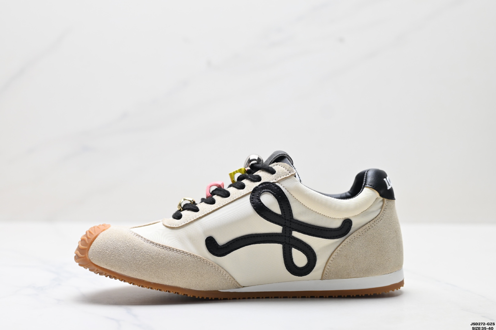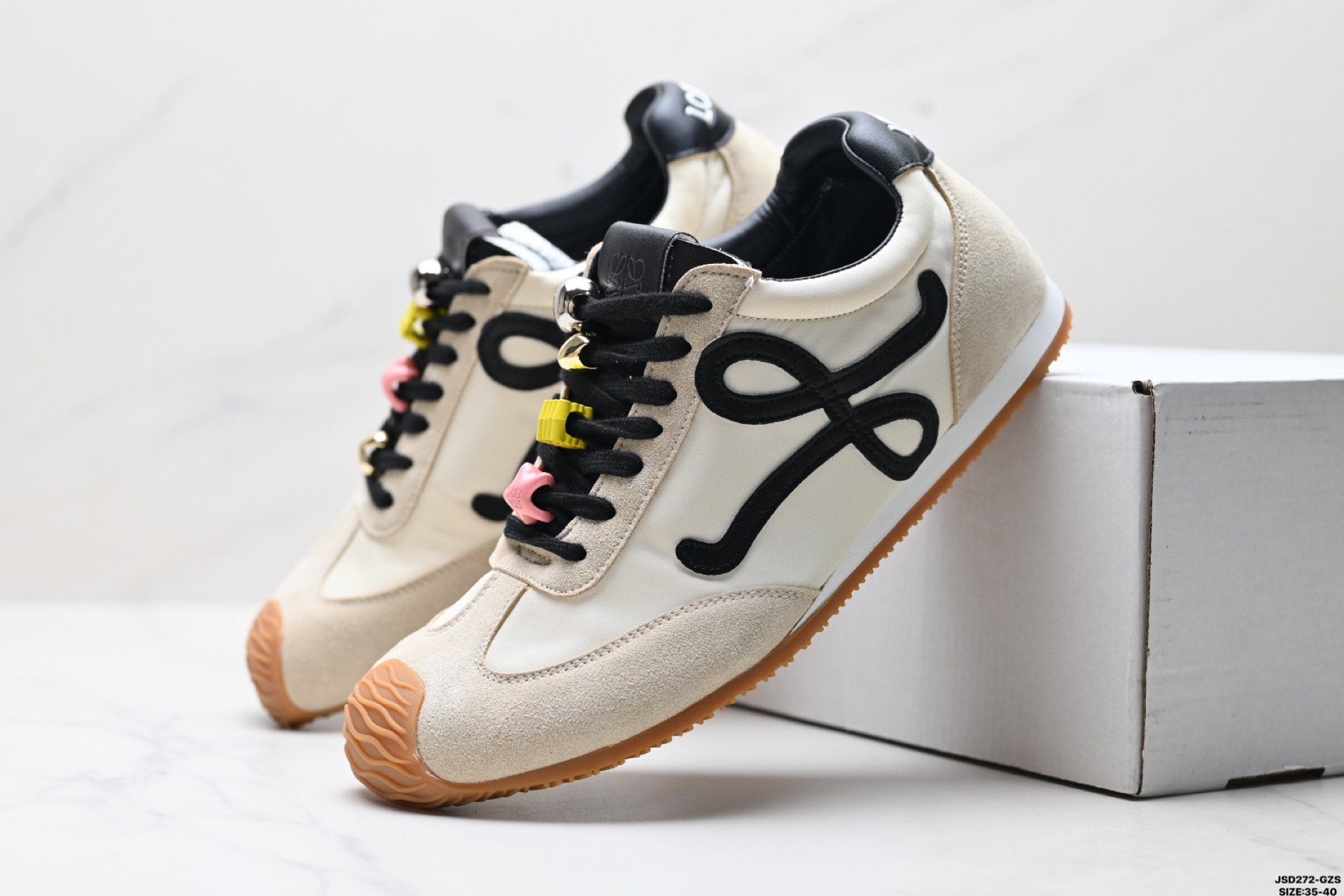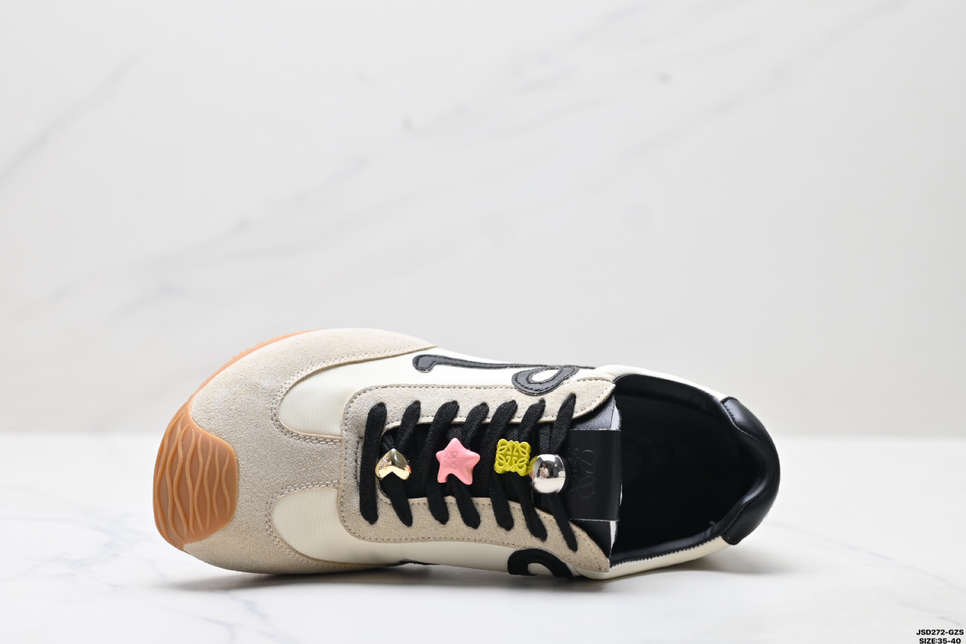 这款鞋子是AAAAA 1:1 质量 (非常棒). 使用了和原版一模一样的材料. 商标部分也保持了和罗意威/Loewe一样. 图片拍摄是实物鞋子拍摄, 您所收到的实物保证和我们图片一模一样.