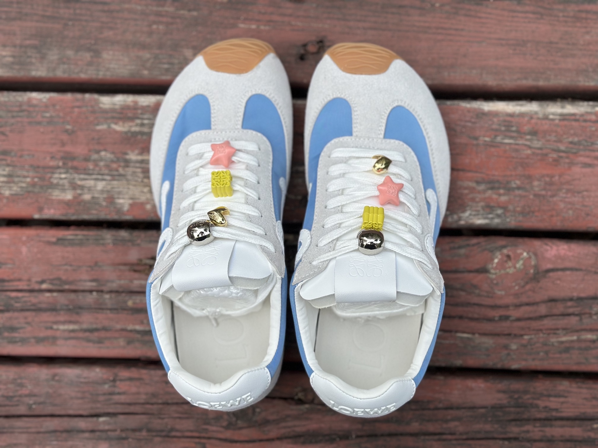 这款鞋子是AAAAA 1:1 质量 (非常棒). 使用了和原版一模一样的材料. 商标部分也保持了和罗意威/Loewe一样. 图片拍摄是实物鞋子拍摄, 您所收到的实物保证和我们图片一模一样.