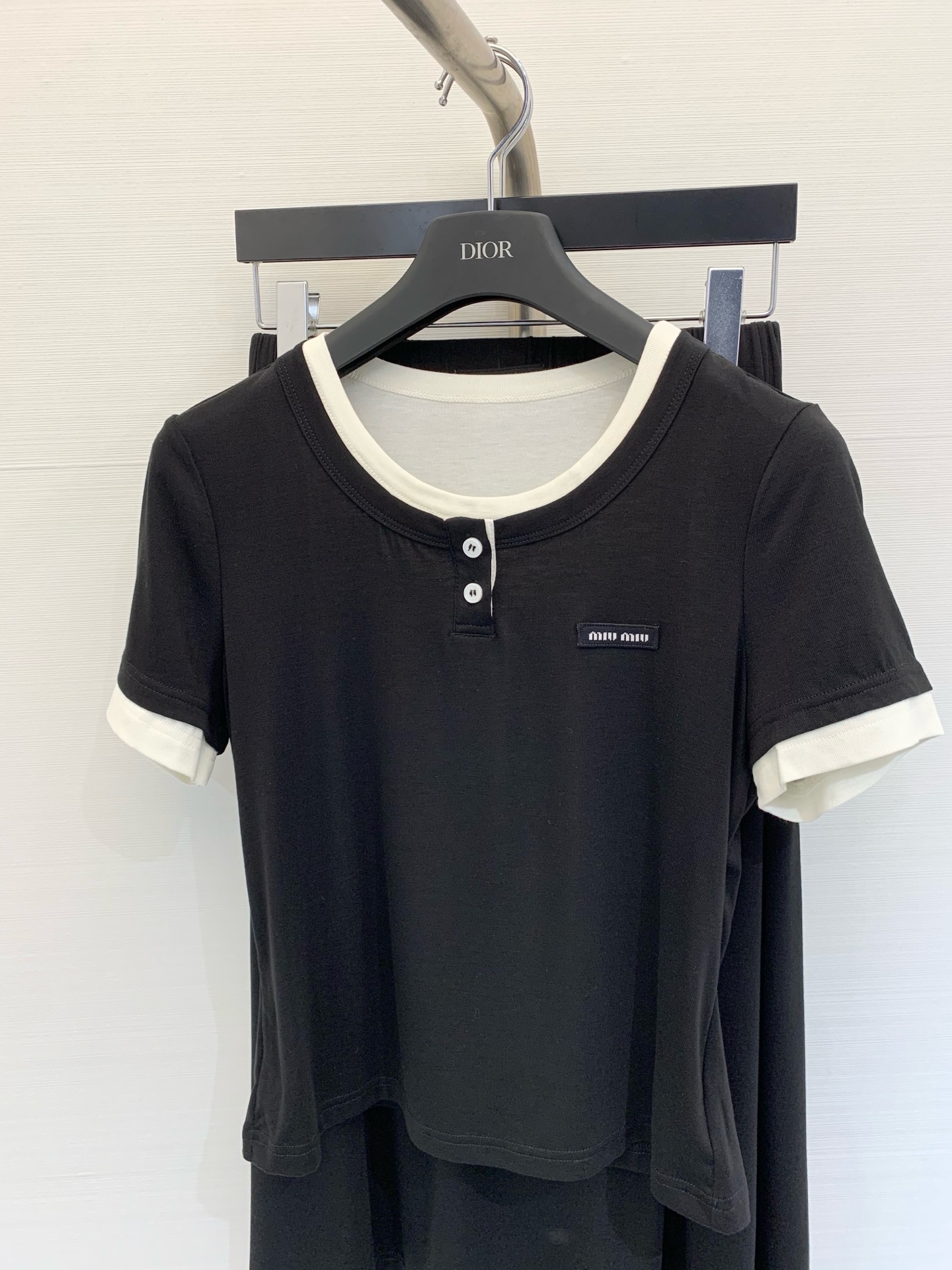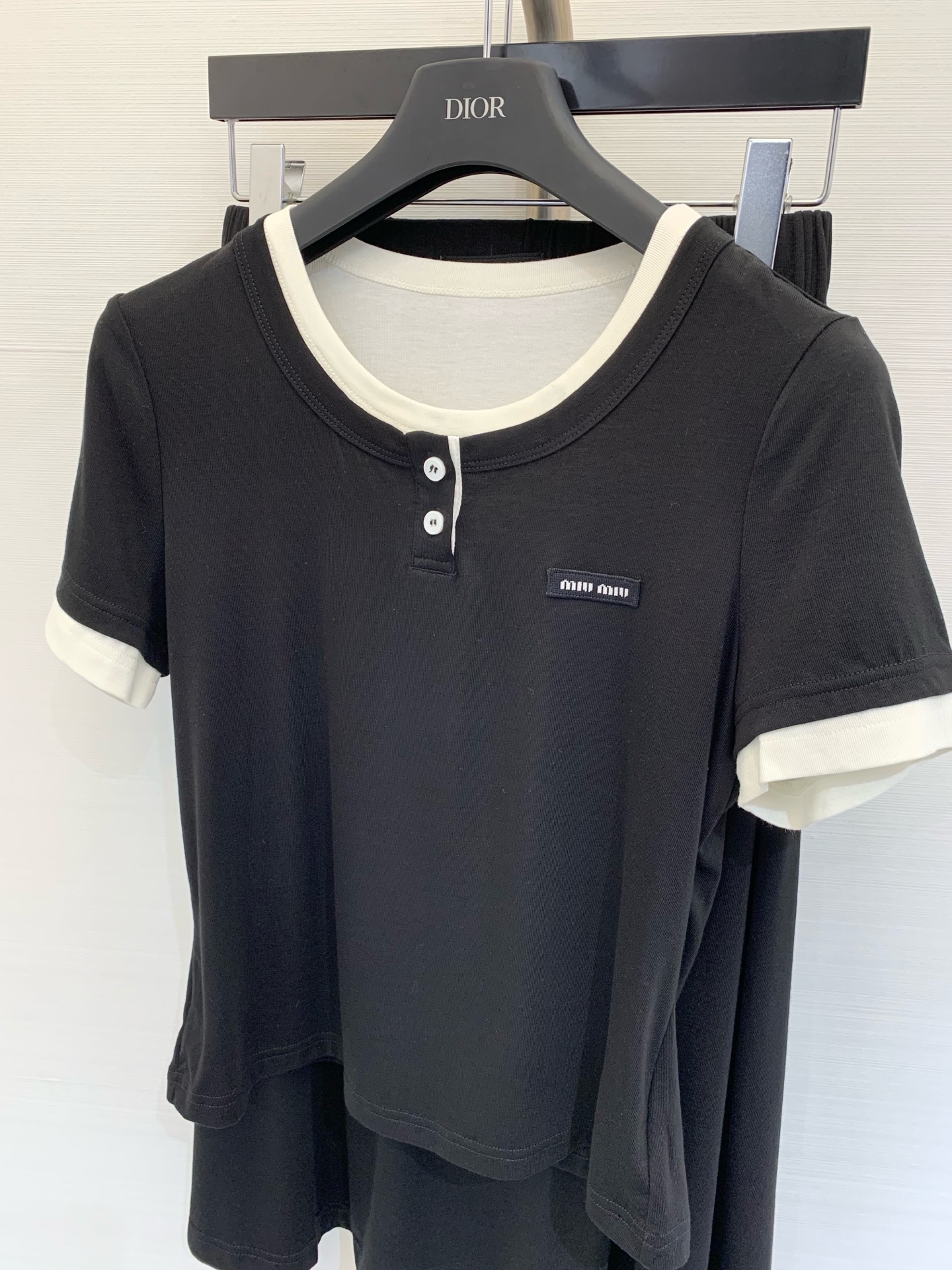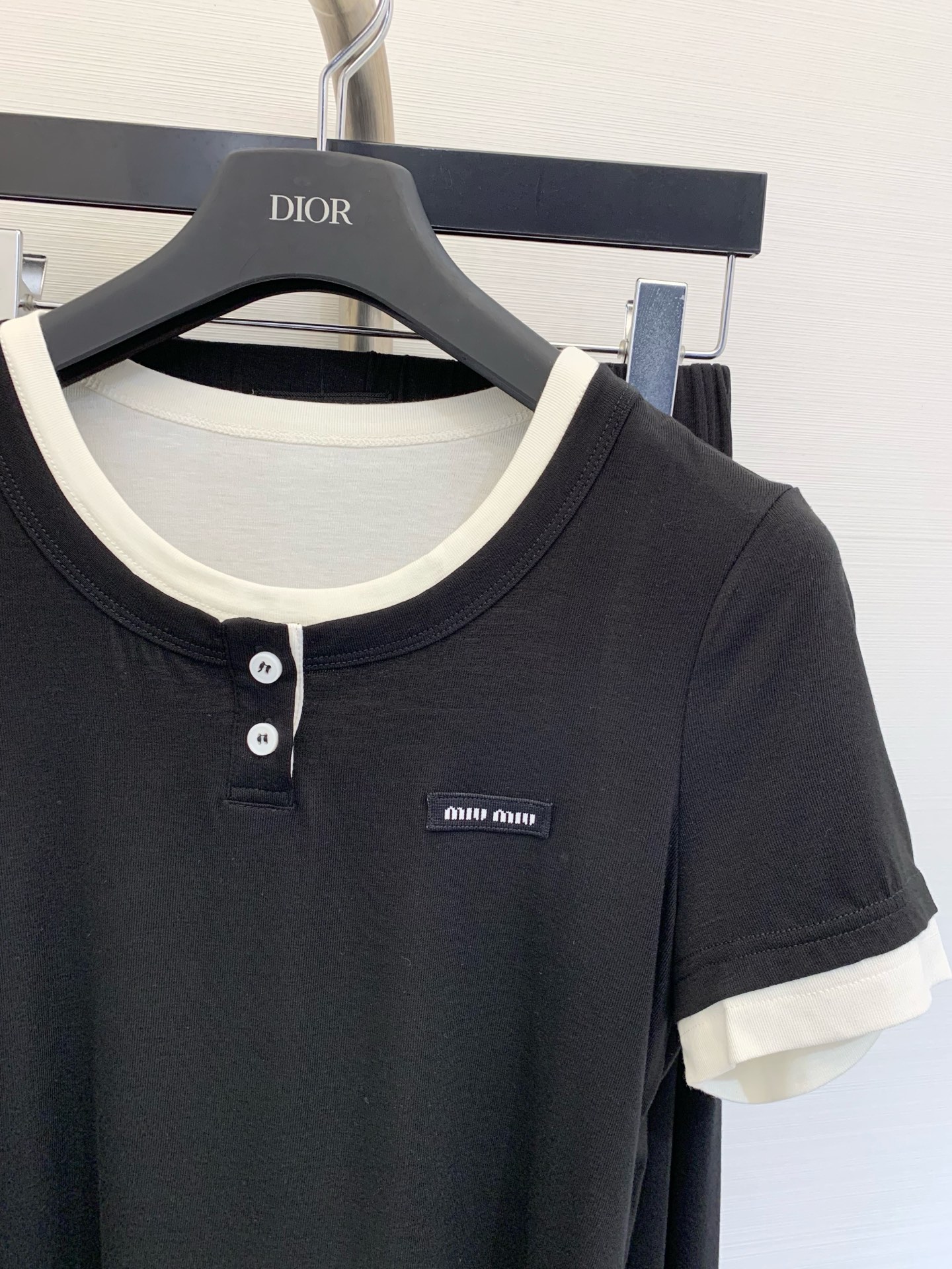 这款衣服是AAAAA 1:1 质量 (非常棒). 使用了和原版一模一样的材料. 商标部分也保持了和缪缪/Miu Miu一样. 图片拍摄是实物衣服拍摄, 您所收到的实物保证和我们图片一模一样.