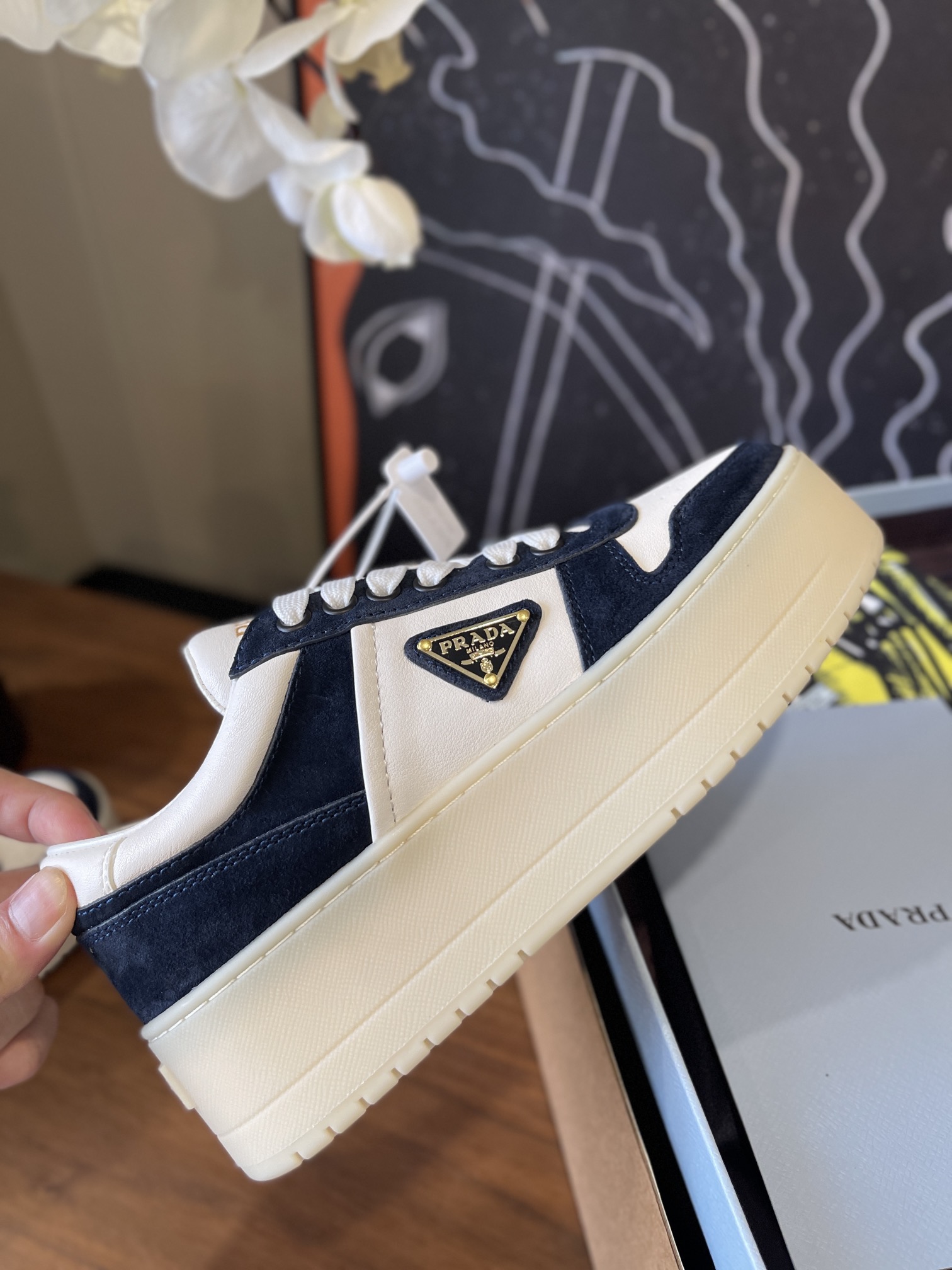 这款鞋子是AAAAA 1:1 质量 (非常棒). 使用了和原版一模一样的材料. 商标部分也保持了和普拉达/Prada一样. 图片拍摄是实物鞋子拍摄, 您所收到的实物保证和我们图片一模一样.