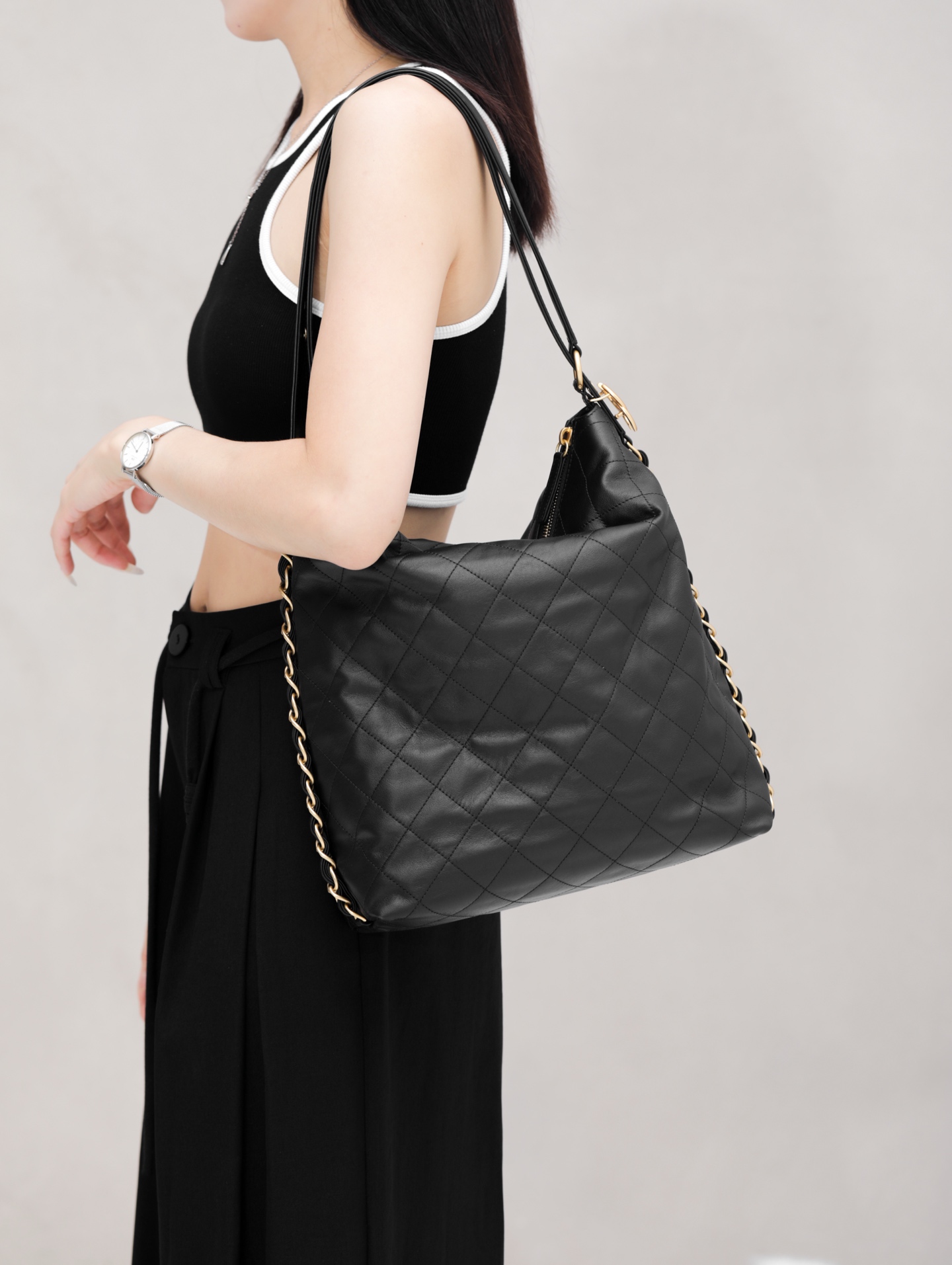 这款包包是AAAAA 1:1 质量 (非常棒). 使用了和原版一模一样的材料. 商标部分也保持了和香奈儿/Chanel一样. 图片拍摄是实物包包拍摄, 您所收到的实物保证和我们图片一模一样.