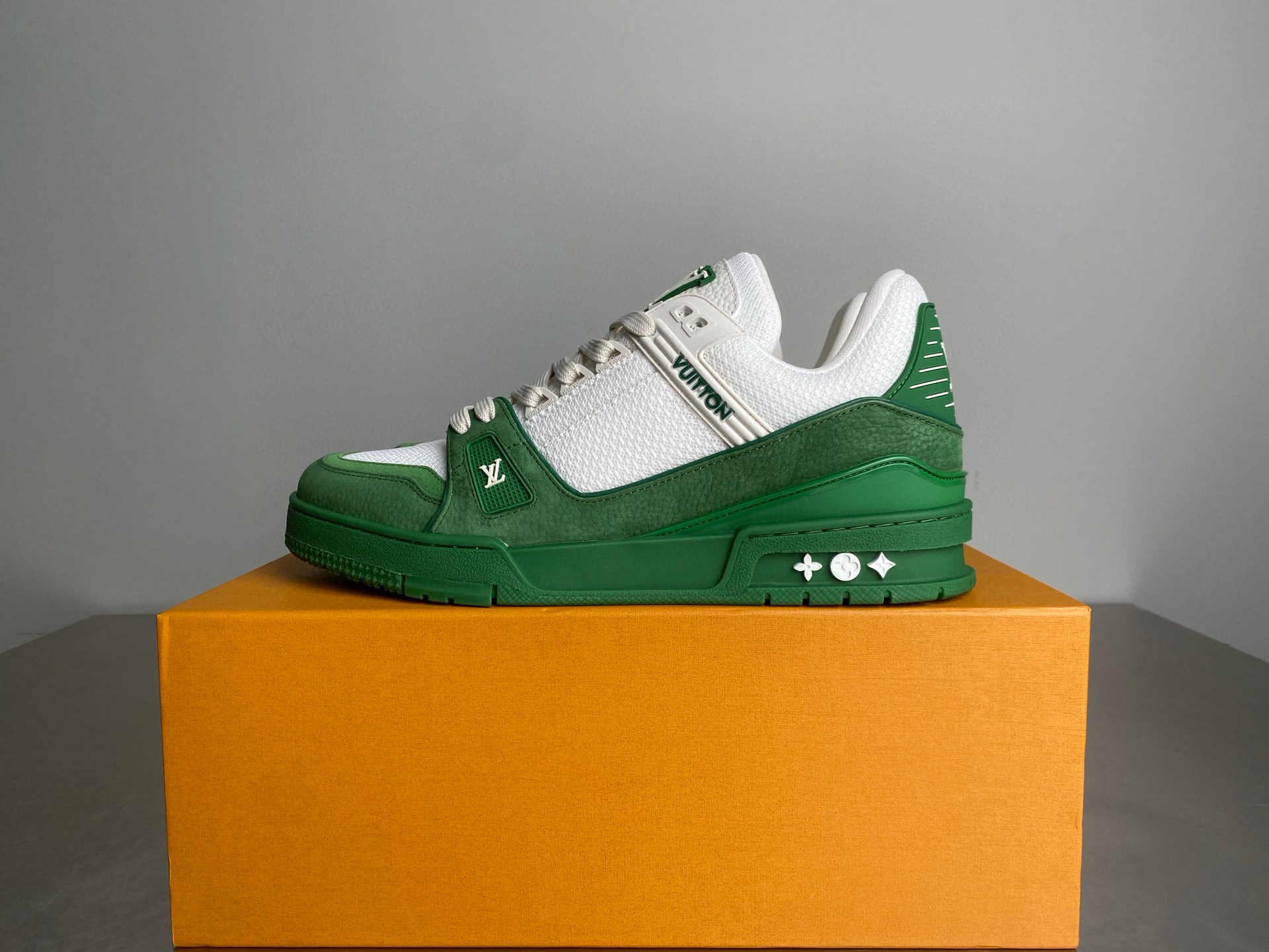 这款鞋子是AAAAA 1:1 质量 (非常棒). 使用了和原版一模一样的材料. 商标部分也保持了和路易威登/Louis Vuitton一样. 图片拍摄是实物鞋子拍摄, 您所收到的实物保证和我们图片一模一样.