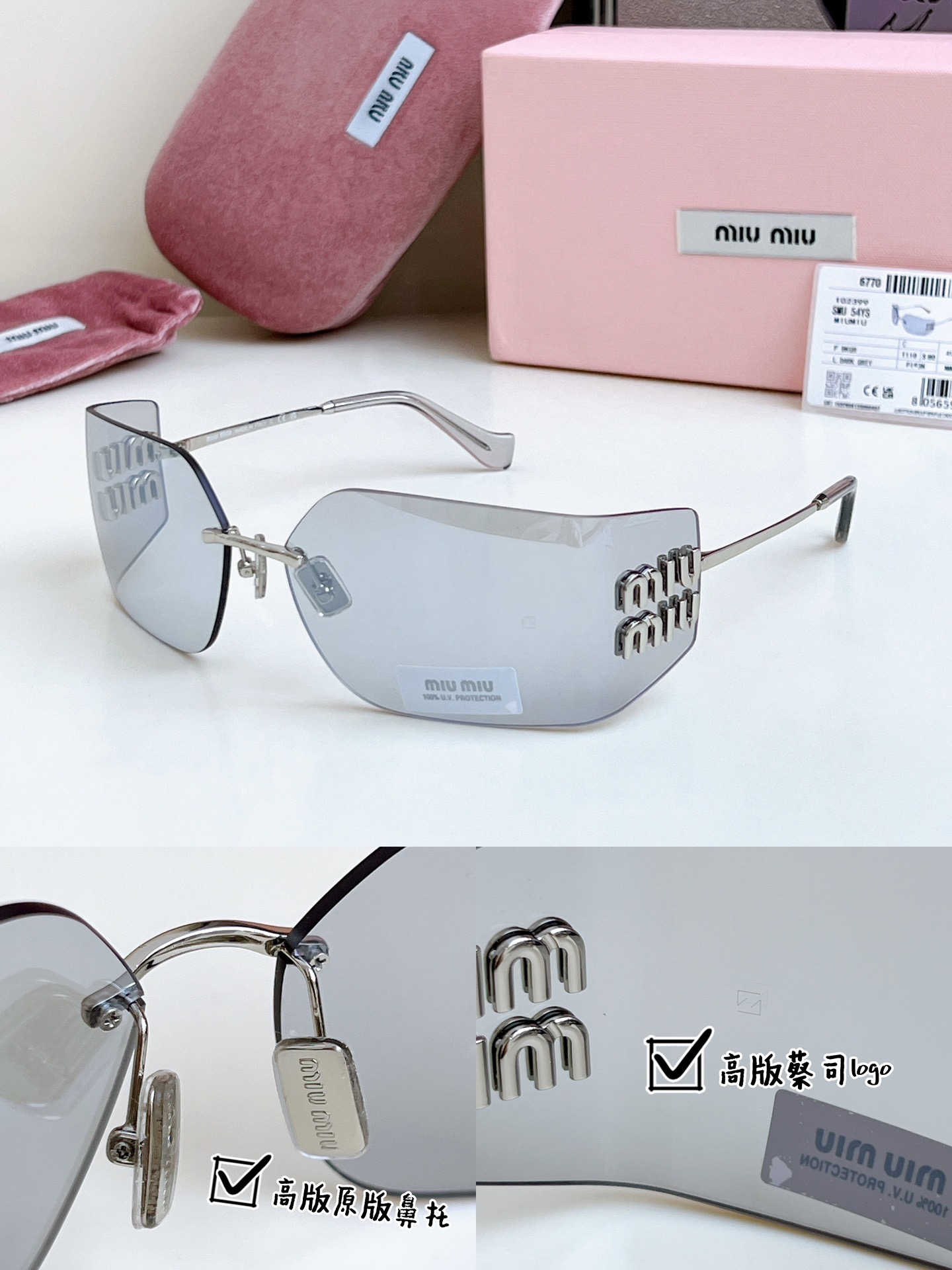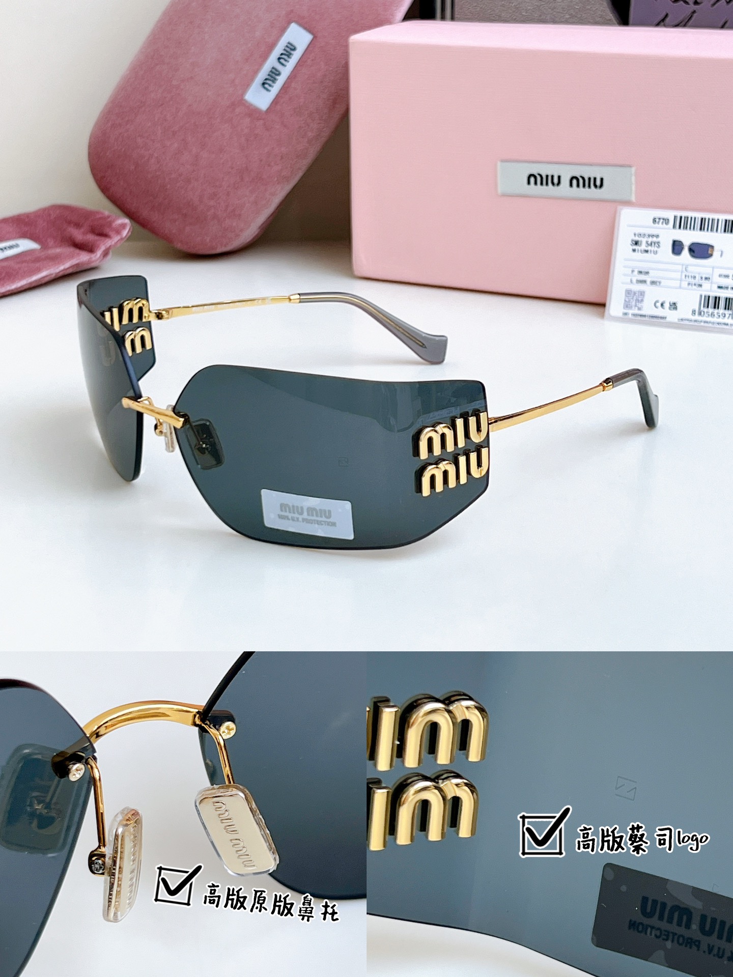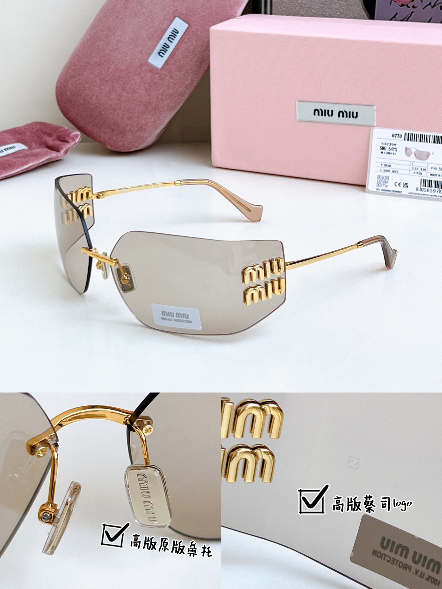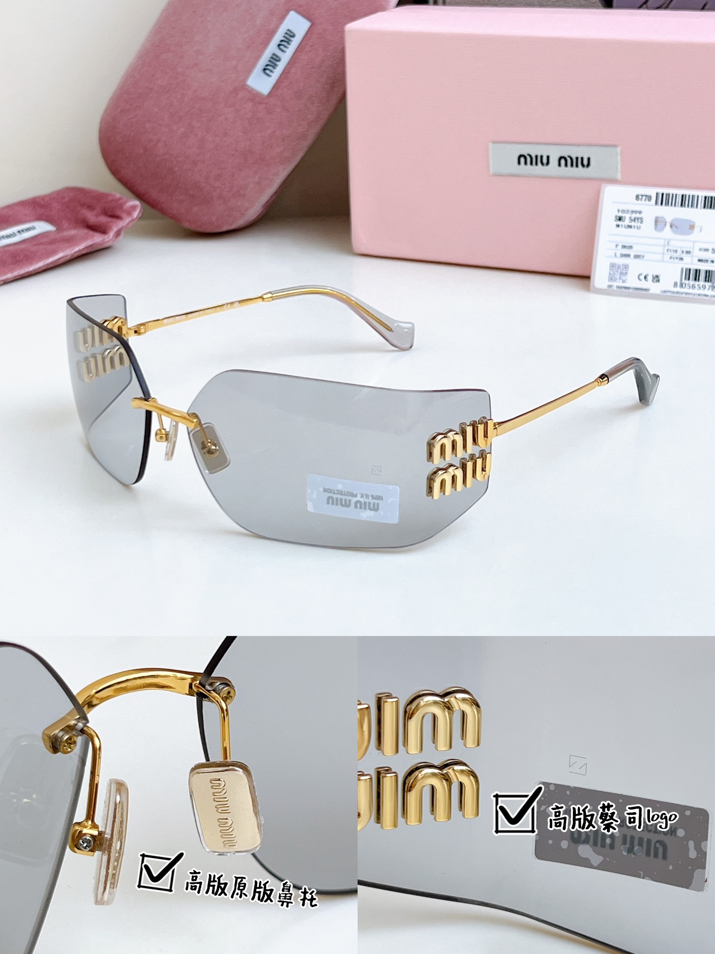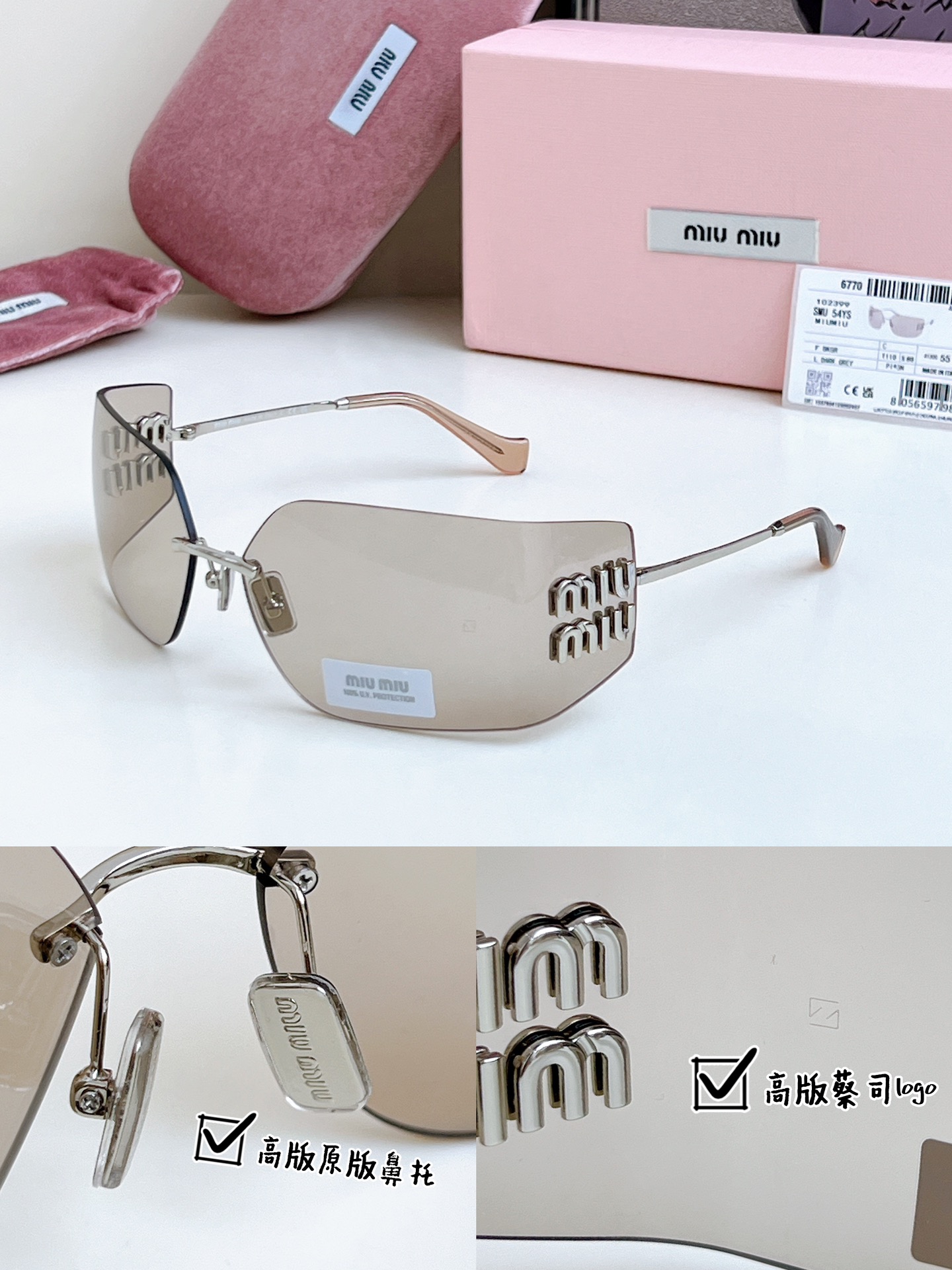 这款太阳眼镜是AAAAA 1:1 质量 (非常棒). 使用了和原版一模一样的材料. 商标部分也保持了和缪缪/Miu Miu一样. 图片拍摄是实物太阳眼镜拍摄, 您所收到的实物保证和我们图片一模一样.