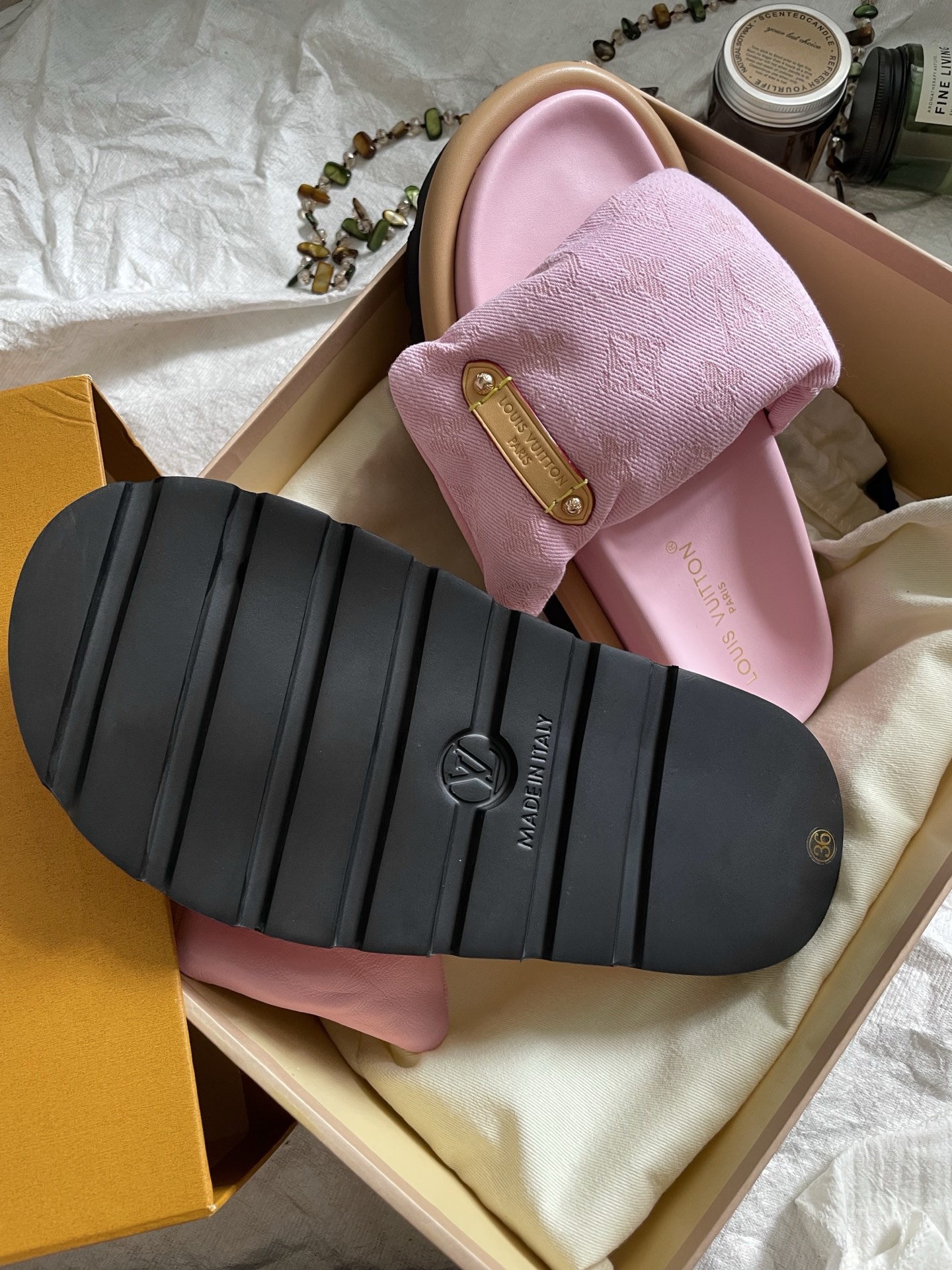 这款鞋子是AAAAA 1:1 质量 (非常棒). 使用了和原版一模一样的材料. 商标部分也保持了和路易威登/Louis Vuitton一样. 图片拍摄是实物鞋子拍摄, 您所收到的实物保证和我们图片一模一样.