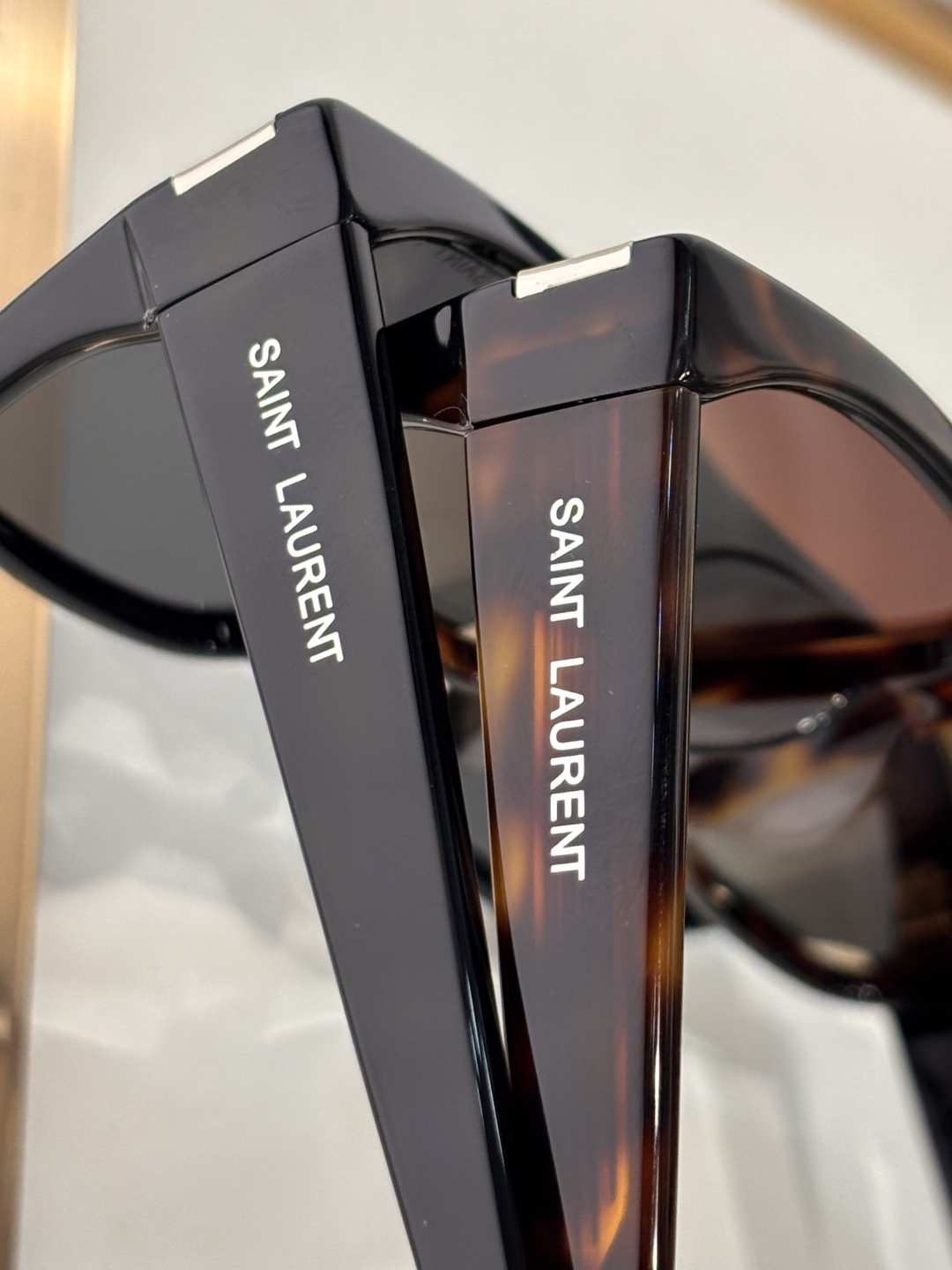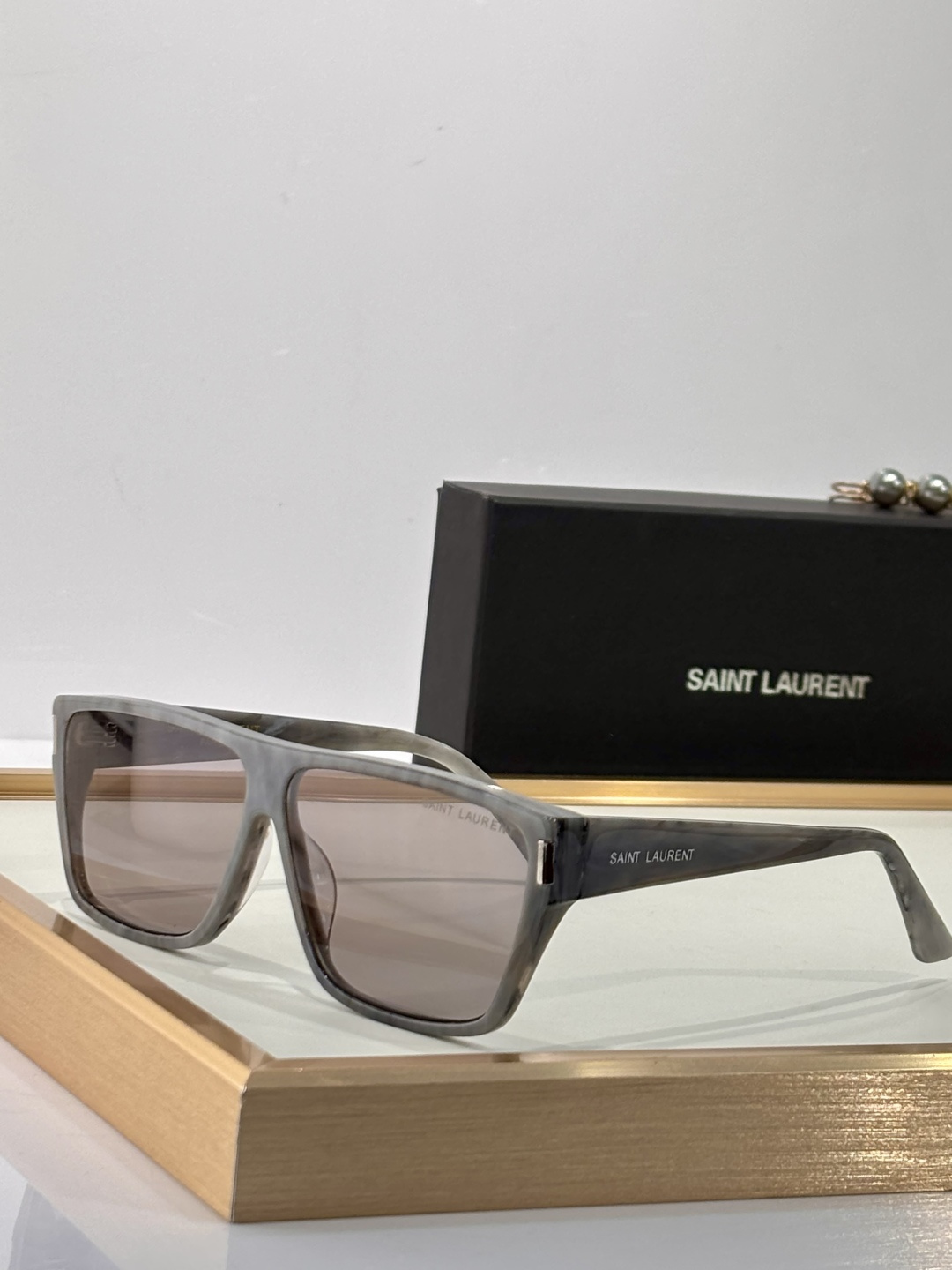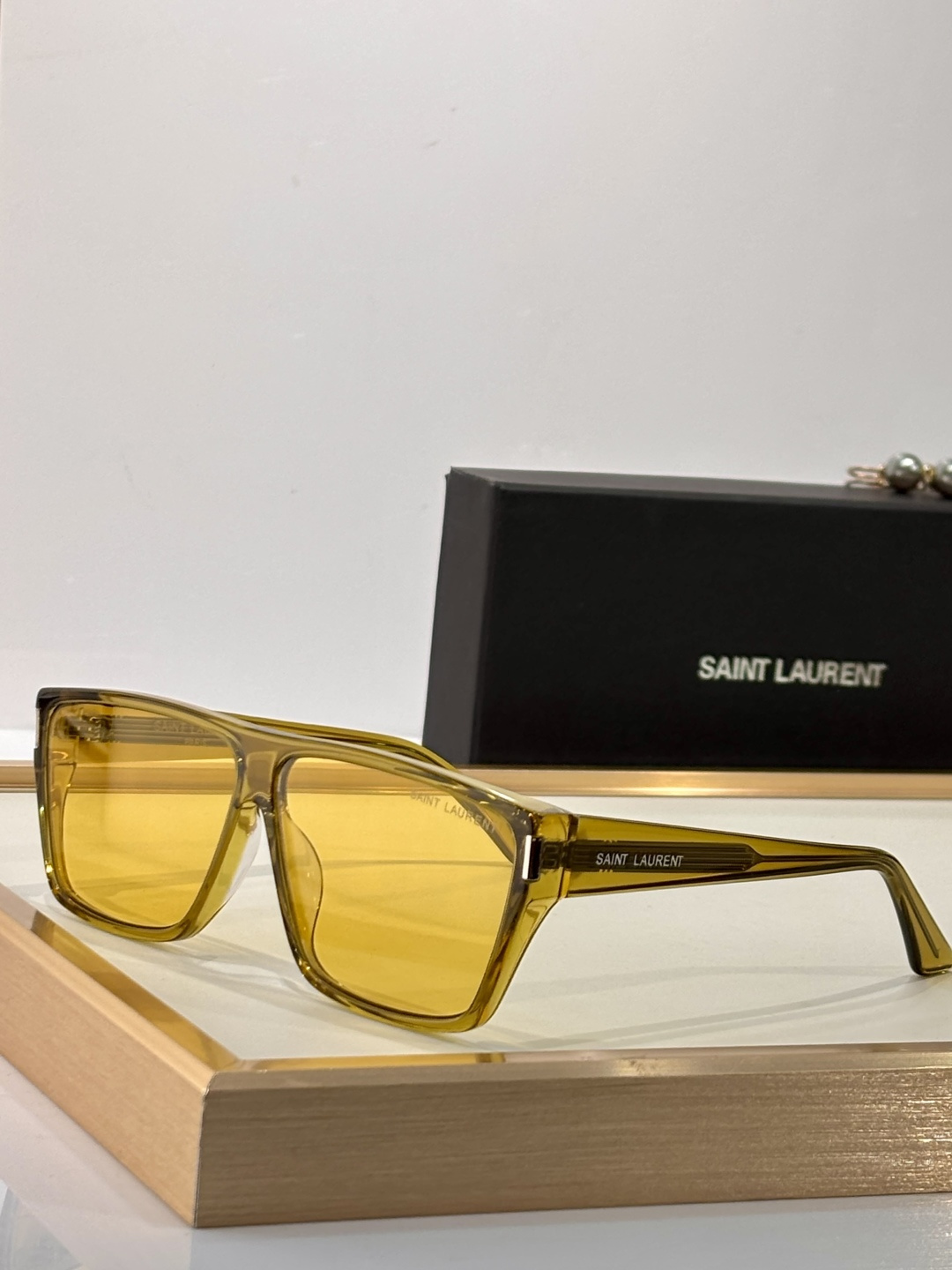 这款太阳眼镜是AAAAA 1:1 质量 (非常棒). 使用了和原版一模一样的材料. 商标部分也保持了和圣罗兰/Saint Laurent一样. 图片拍摄是实物太阳眼镜拍摄, 您所收到的实物保证和我们图片一模一样.