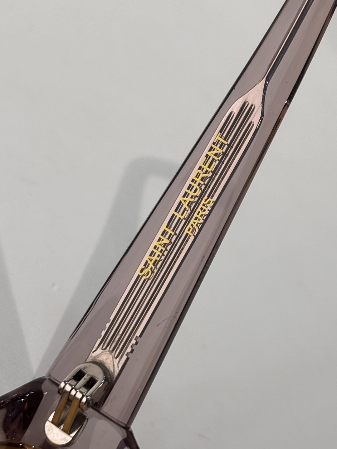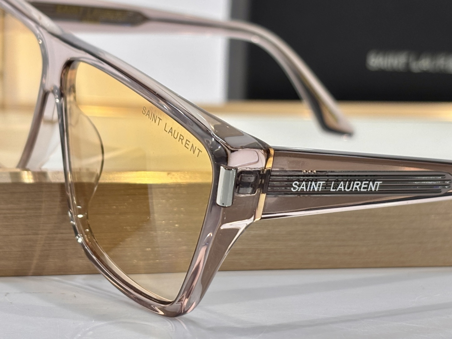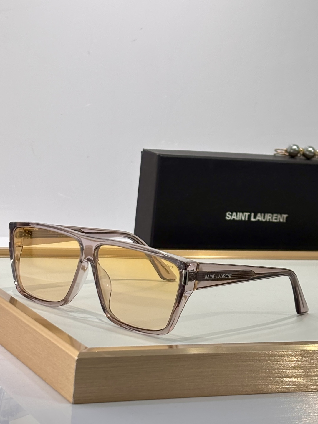 这款太阳眼镜是AAAAA 1:1 质量 (非常棒). 使用了和原版一模一样的材料. 商标部分也保持了和圣罗兰/Saint Laurent一样. 图片拍摄是实物太阳眼镜拍摄, 您所收到的实物保证和我们图片一模一样.