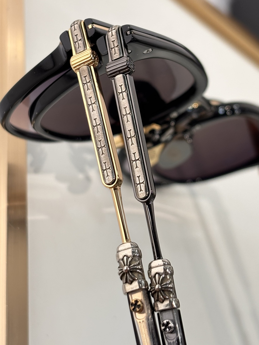 这款太阳眼镜是AAAAA 1:1 质量 (非常棒). 使用了和原版一模一样的材料. 商标部分也保持了和克罗心/Chrome Hearts一样. 图片拍摄是实物太阳眼镜拍摄, 您所收到的实物保证和我们图片一模一样.