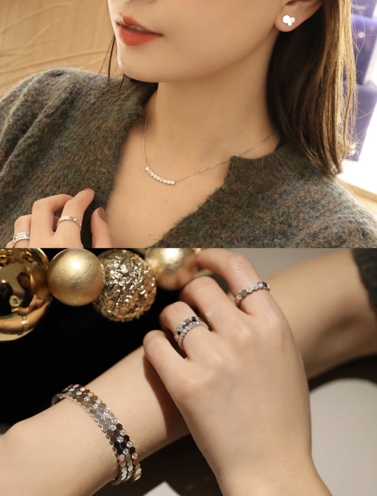 这款首饰是AAAAA 1:1 质量 (非常棒). 使用了和原版一模一样的材料. 商标部分也保持了和Chaumet一样. 图片拍摄是实物首饰拍摄, 您所收到的实物保证和我们图片一模一样.