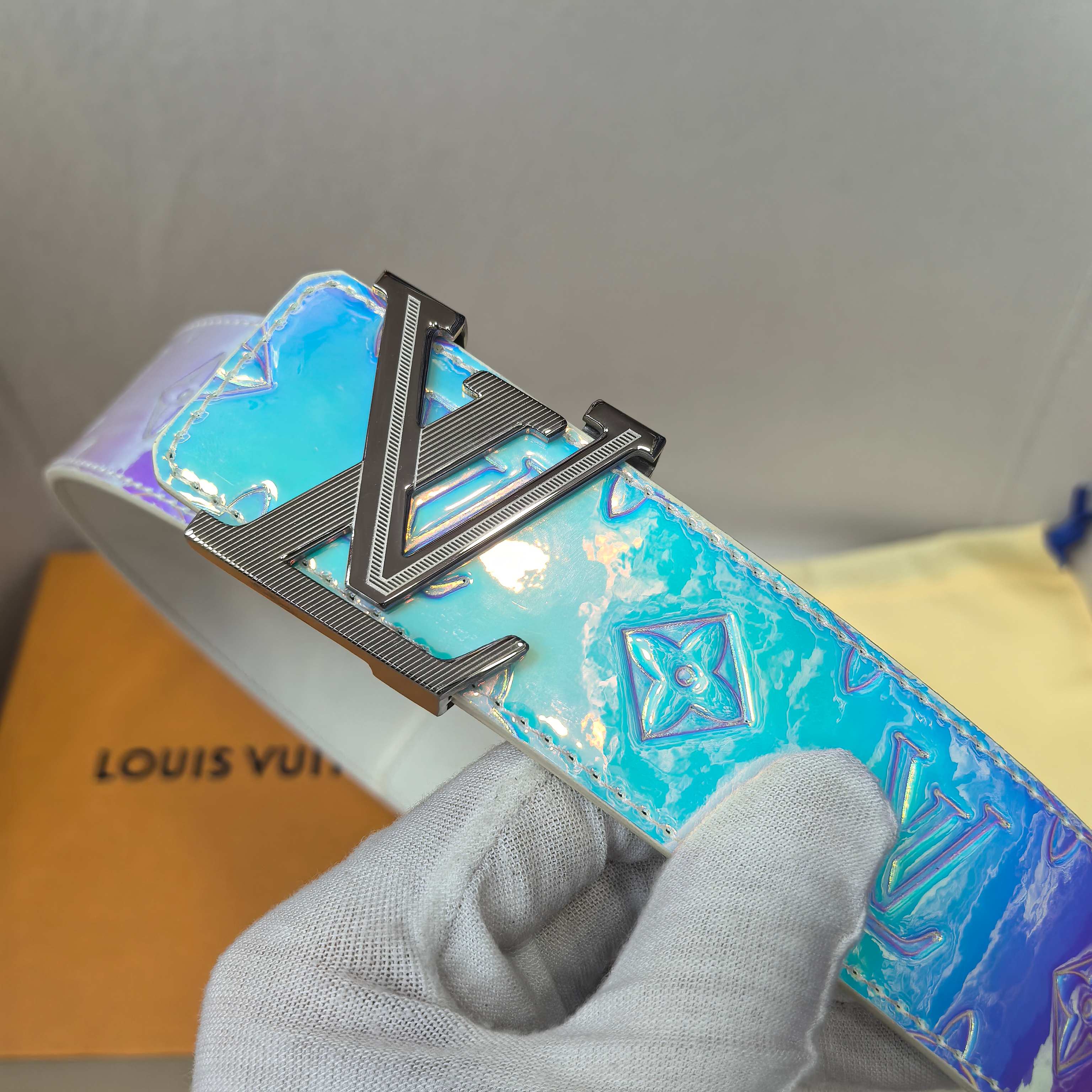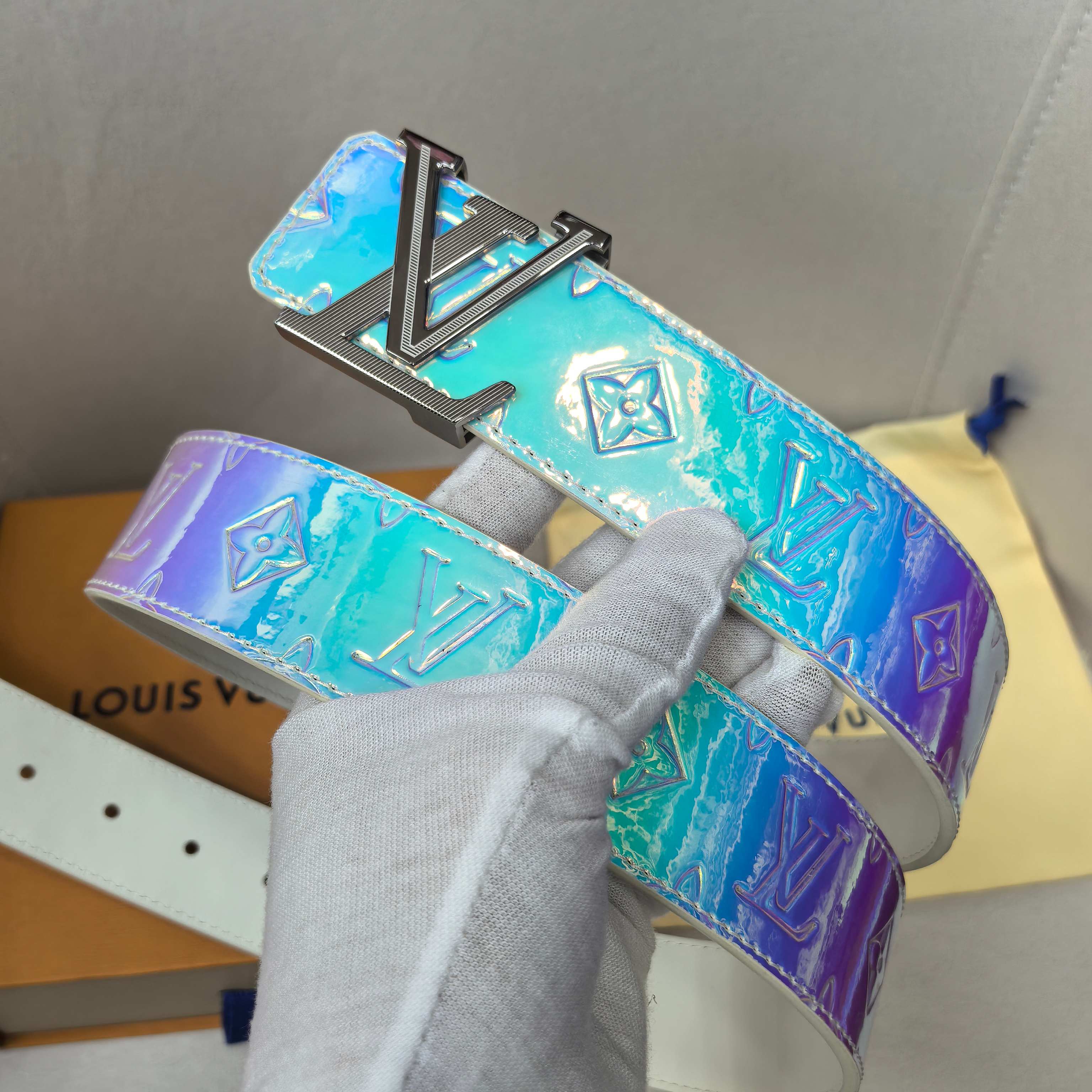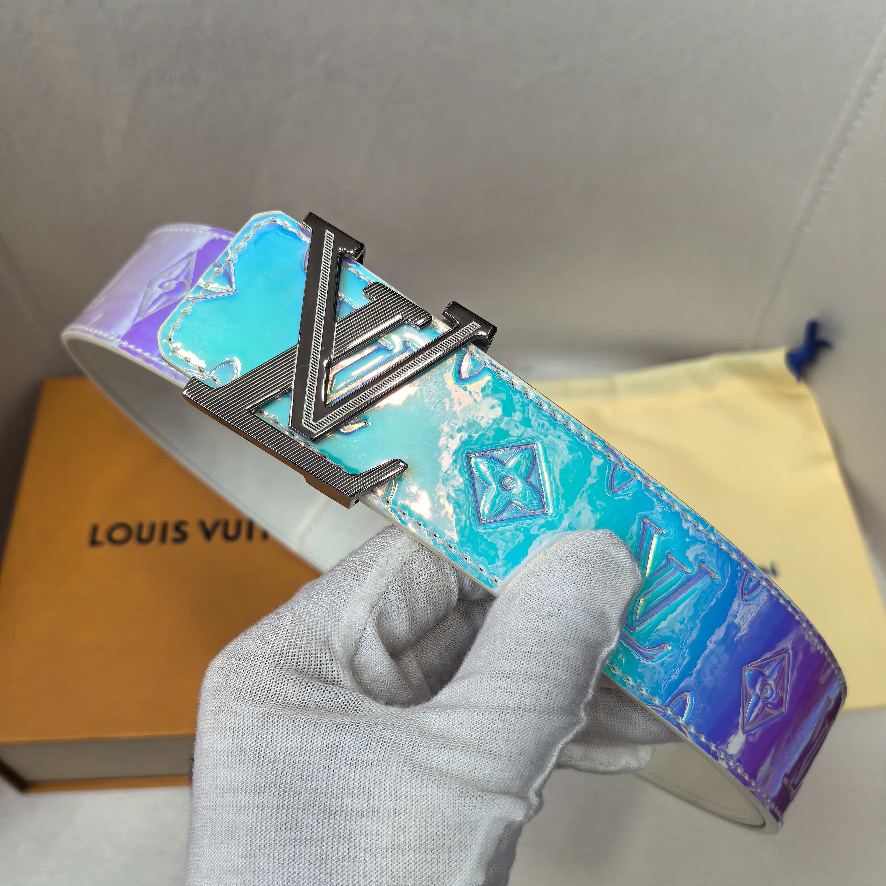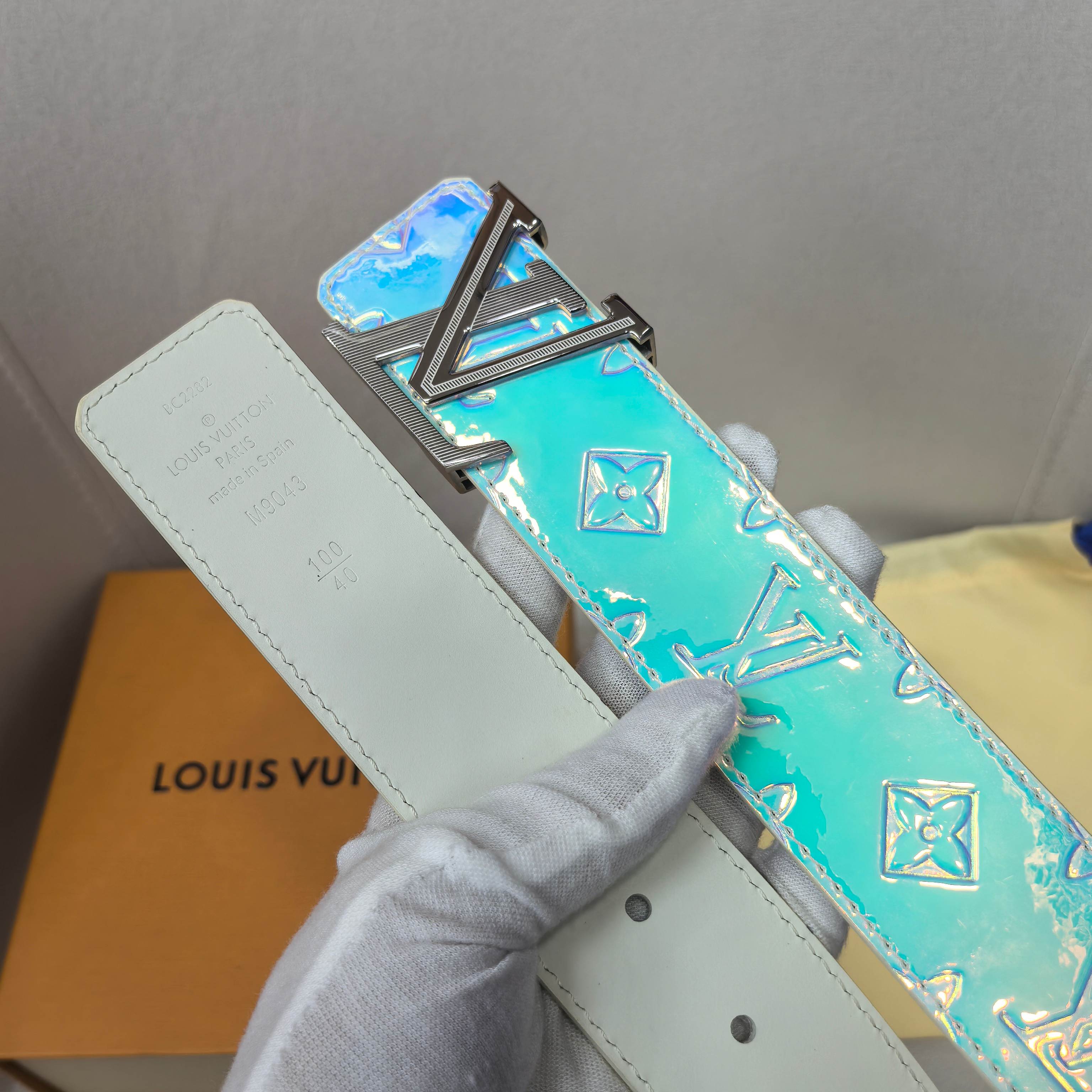 这款皮带是AAAAA 1:1 质量 (非常棒). 使用了和原版一模一样的材料. 商标部分也保持了和路易威登/Louis Vuitton一样. 图片拍摄是实物皮带拍摄, 您所收到的实物保证和我们图片一模一样.