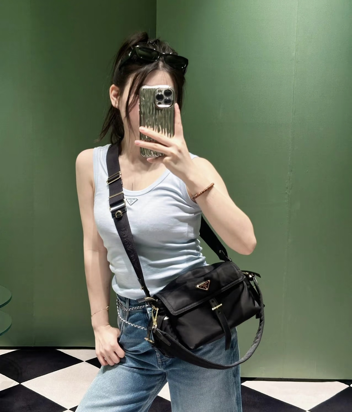 这款包包是AAAAA 1:1 质量 (非常棒). 使用了和原版一模一样的材料. 商标部分也保持了和普拉达/Prada一样. 图片拍摄是实物包包拍摄, 您所收到的实物保证和我们图片一模一样.