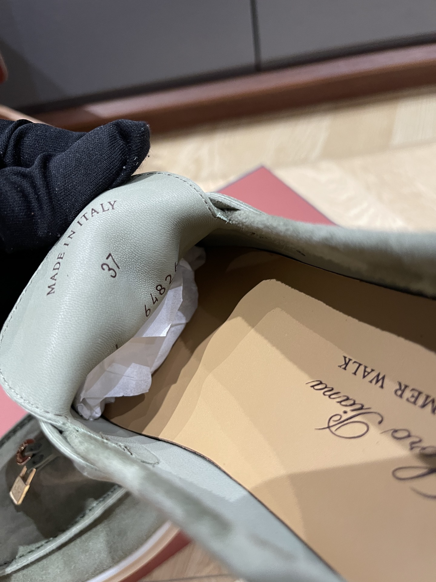 这款鞋子是AAAAA 1:1 质量 (非常棒). 使用了和原版一模一样的材料. 商标部分也保持了和洛罗皮亚纳/Loro Piana一样. 图片拍摄是实物鞋子拍摄, 您所收到的实物保证和我们图片一模一样.