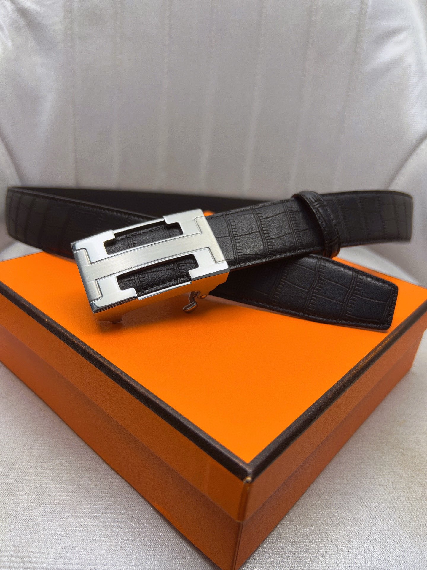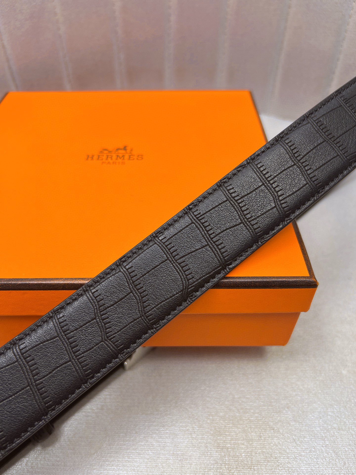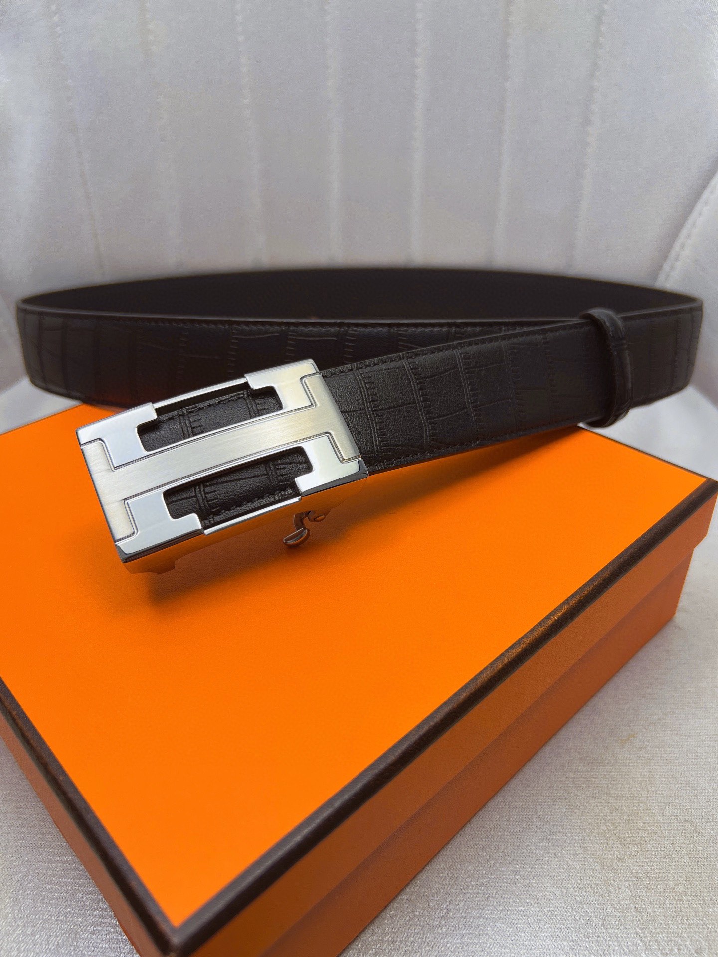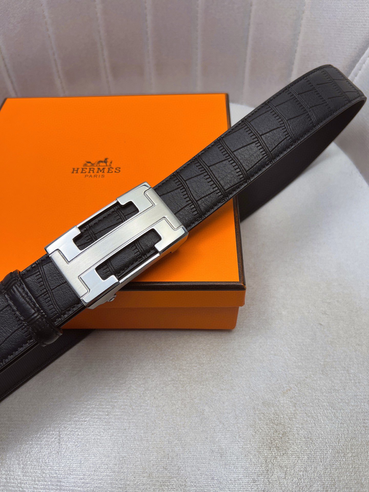这款皮带是AAAAA 1:1 质量 (非常棒). 使用了和原版一模一样的材料. 商标部分也保持了和爱马仕/Hermes一样. 图片拍摄是实物皮带拍摄, 您所收到的实物保证和我们图片一模一样.