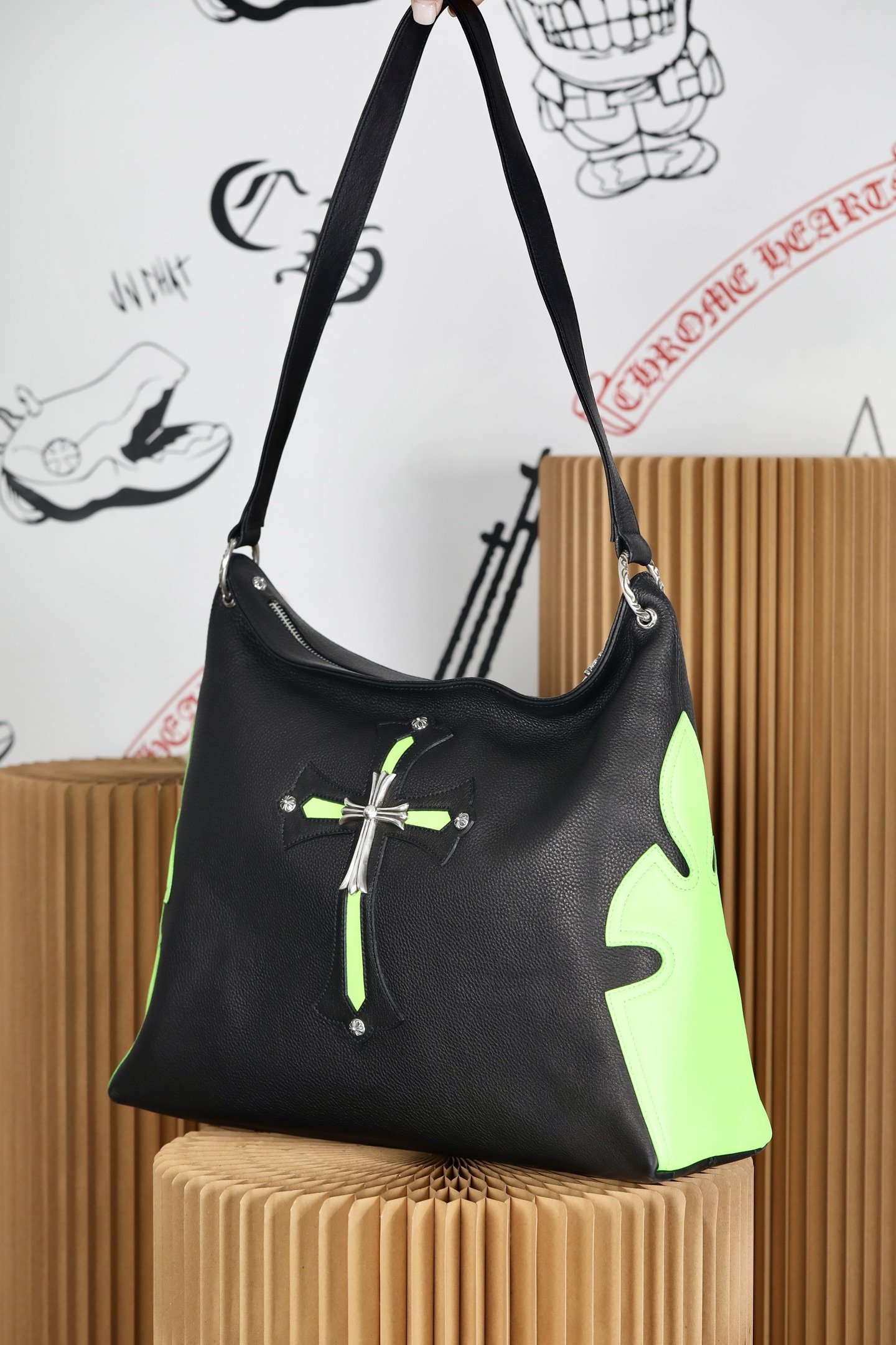 这款包包是AAAAA 1:1 质量 (非常棒). 使用了和原版一模一样的材料. 商标部分也保持了和克罗心/Chrome Hearts一样. 图片拍摄是实物包包拍摄, 您所收到的实物保证和我们图片一模一样.