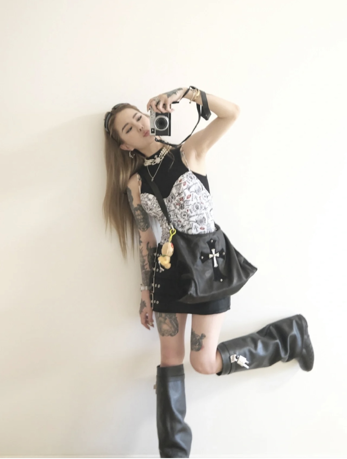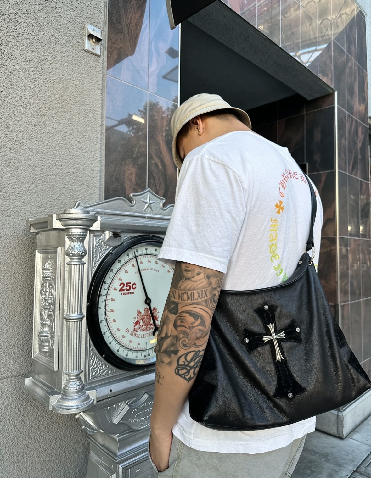 这款包包是AAAAA 1:1 质量 (非常棒). 使用了和原版一模一样的材料. 商标部分也保持了和克罗心/Chrome Hearts一样. 图片拍摄是实物包包拍摄, 您所收到的实物保证和我们图片一模一样.