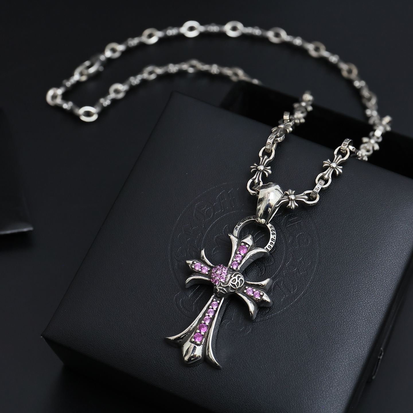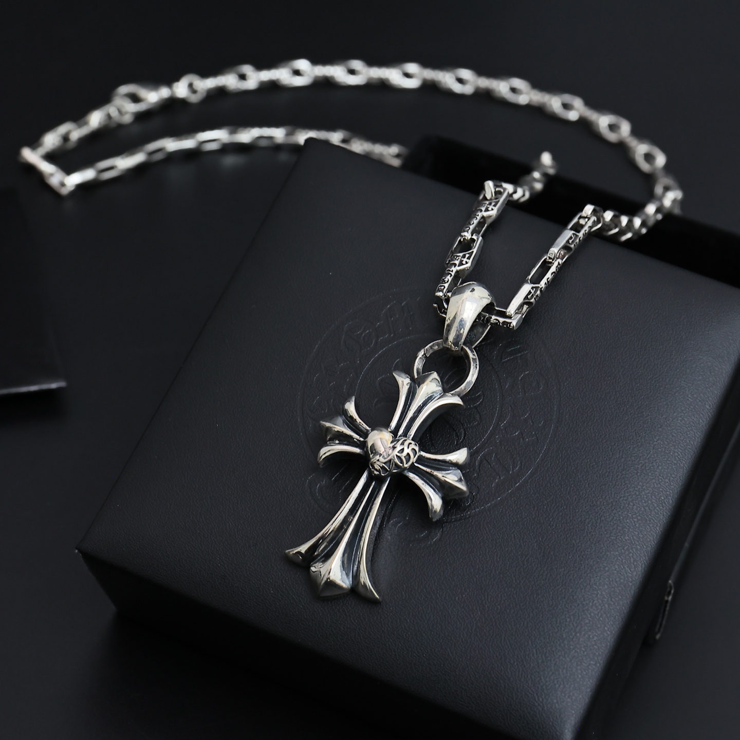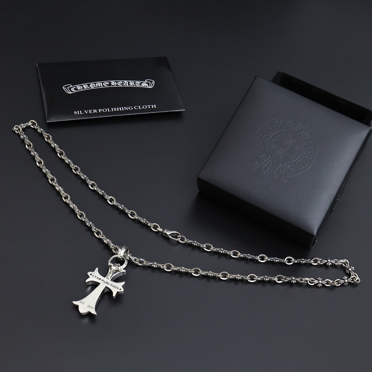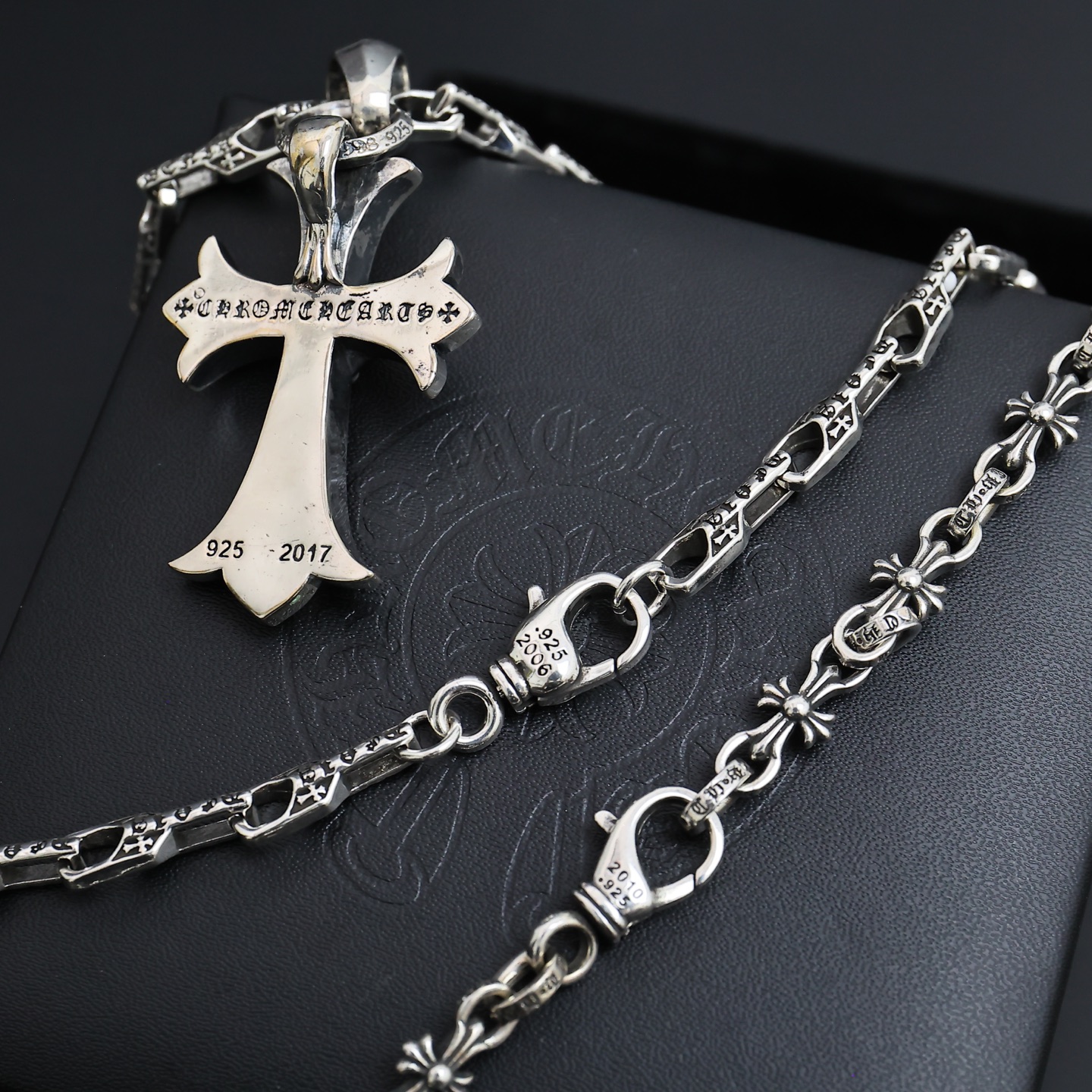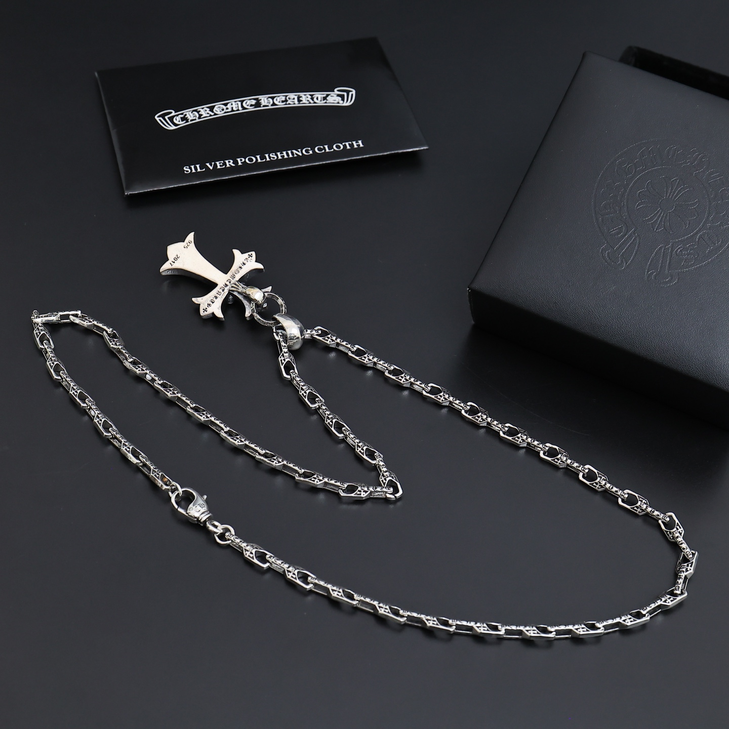 这款首饰是AAAAA 1:1 质量 (非常棒). 使用了和原版一模一样的材料. 商标部分也保持了和克罗心/Chrome Hearts一样. 图片拍摄是实物首饰拍摄, 您所收到的实物保证和我们图片一模一样.