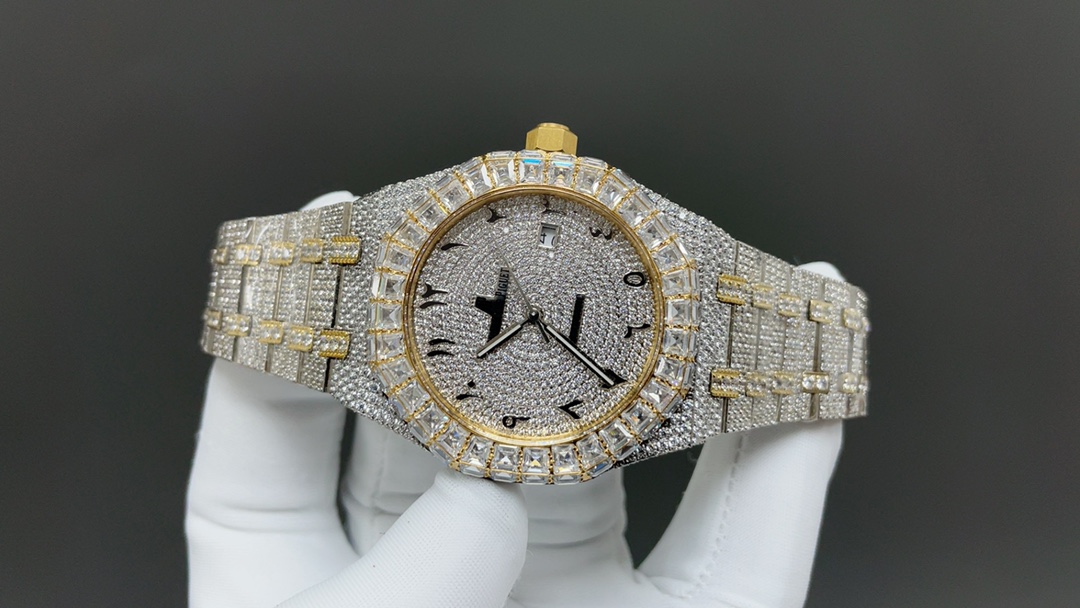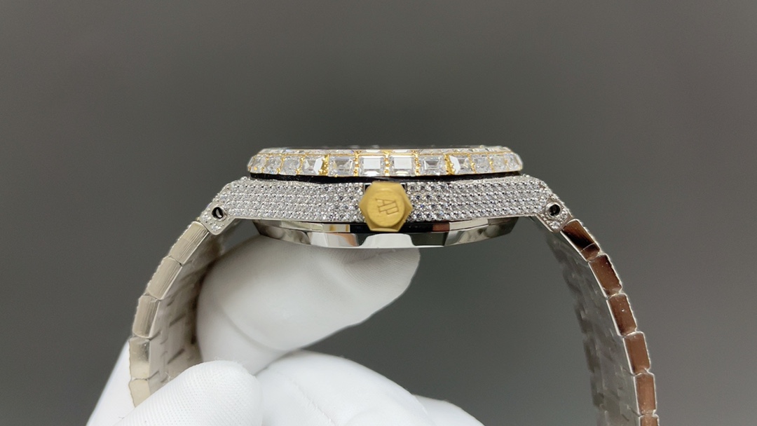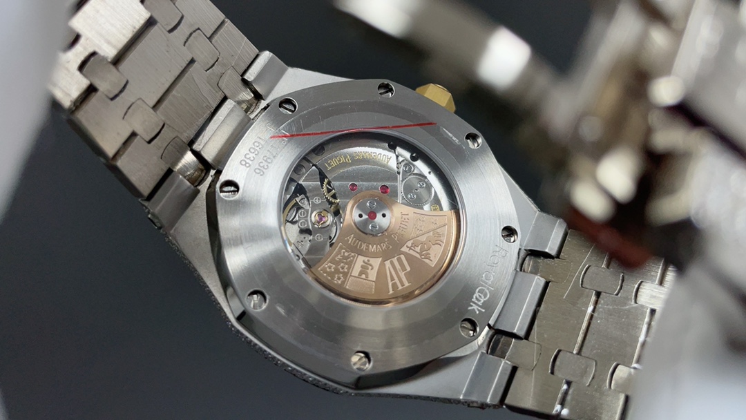 这款手表是AAAAA 1:1 质量 (非常棒). 使用了和原版一模一样的材料. 商标部分也保持了和爱彼/Audemars Piguet一样. 图片拍摄是实物手表拍摄, 您所收到的实物保证和我们图片一模一样.