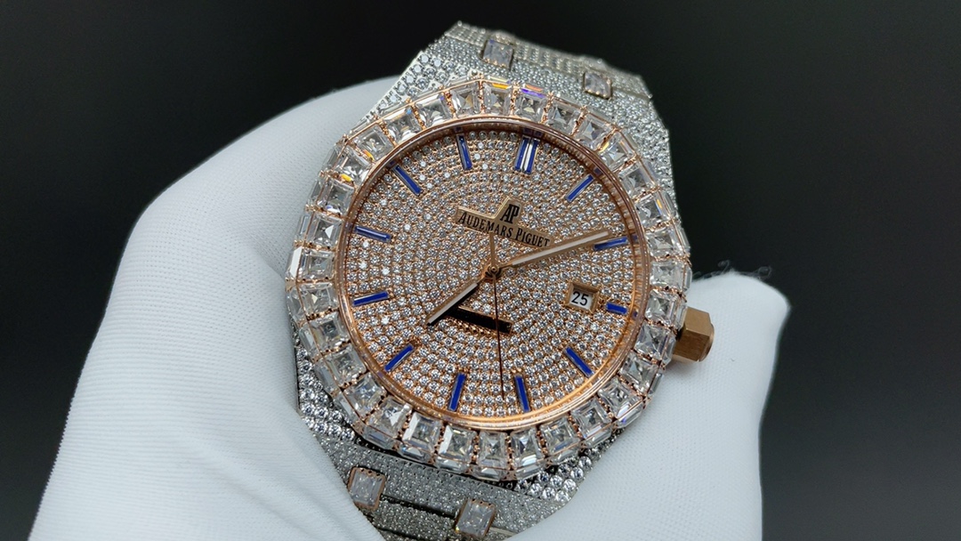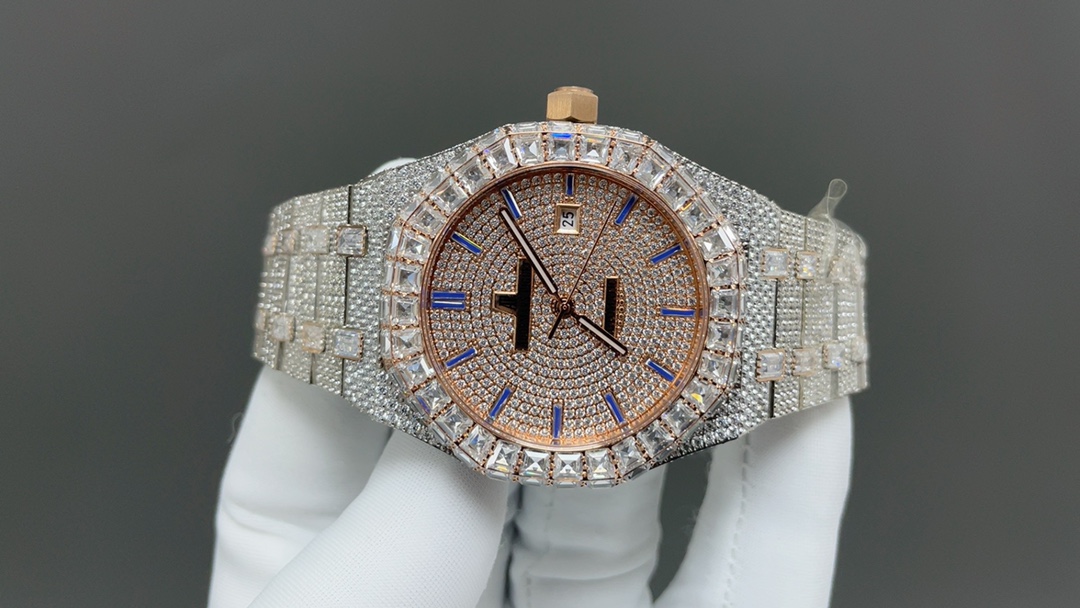 这款手表是AAAAA 1:1 质量 (非常棒). 使用了和原版一模一样的材料. 商标部分也保持了和爱彼/Audemars Piguet一样. 图片拍摄是实物手表拍摄, 您所收到的实物保证和我们图片一模一样.
