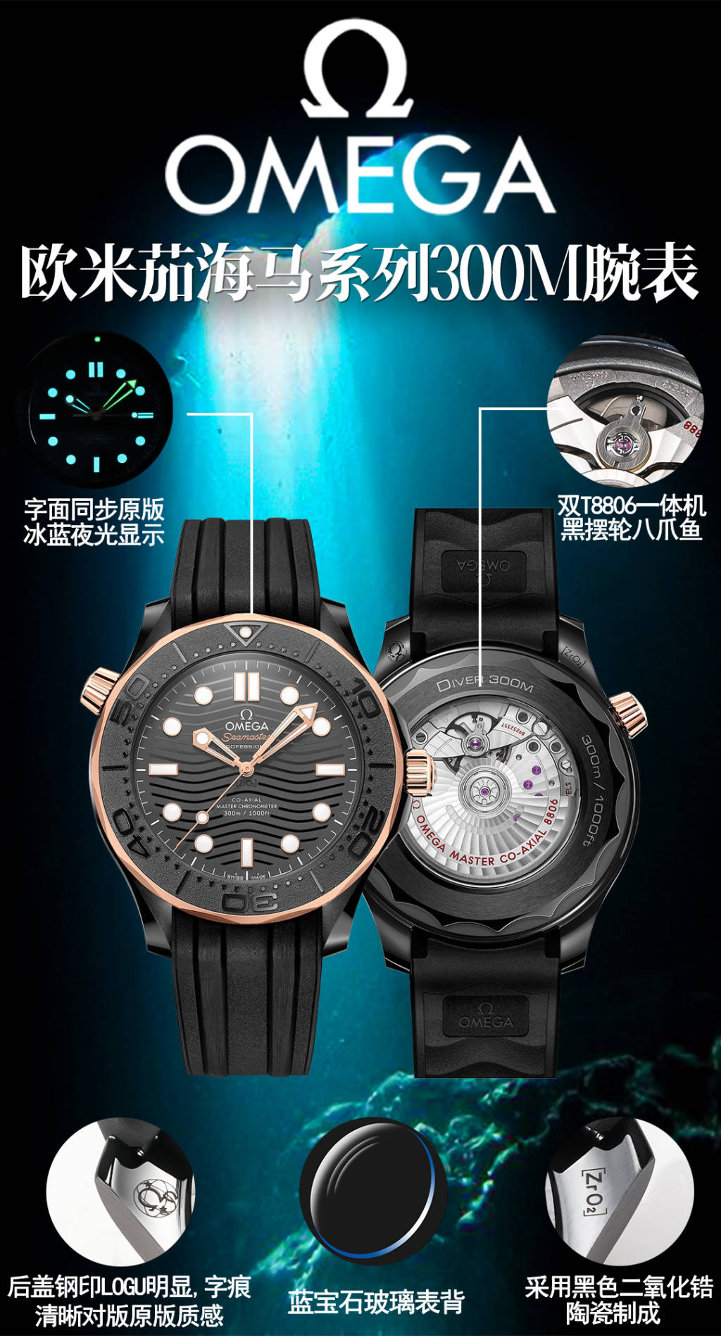 这款手表是AAAAA 1:1 质量 (非常棒). 使用了和原版一模一样的材料. 商标部分也保持了和欧米茄/Omega一样. 图片拍摄是实物手表拍摄, 您所收到的实物保证和我们图片一模一样.